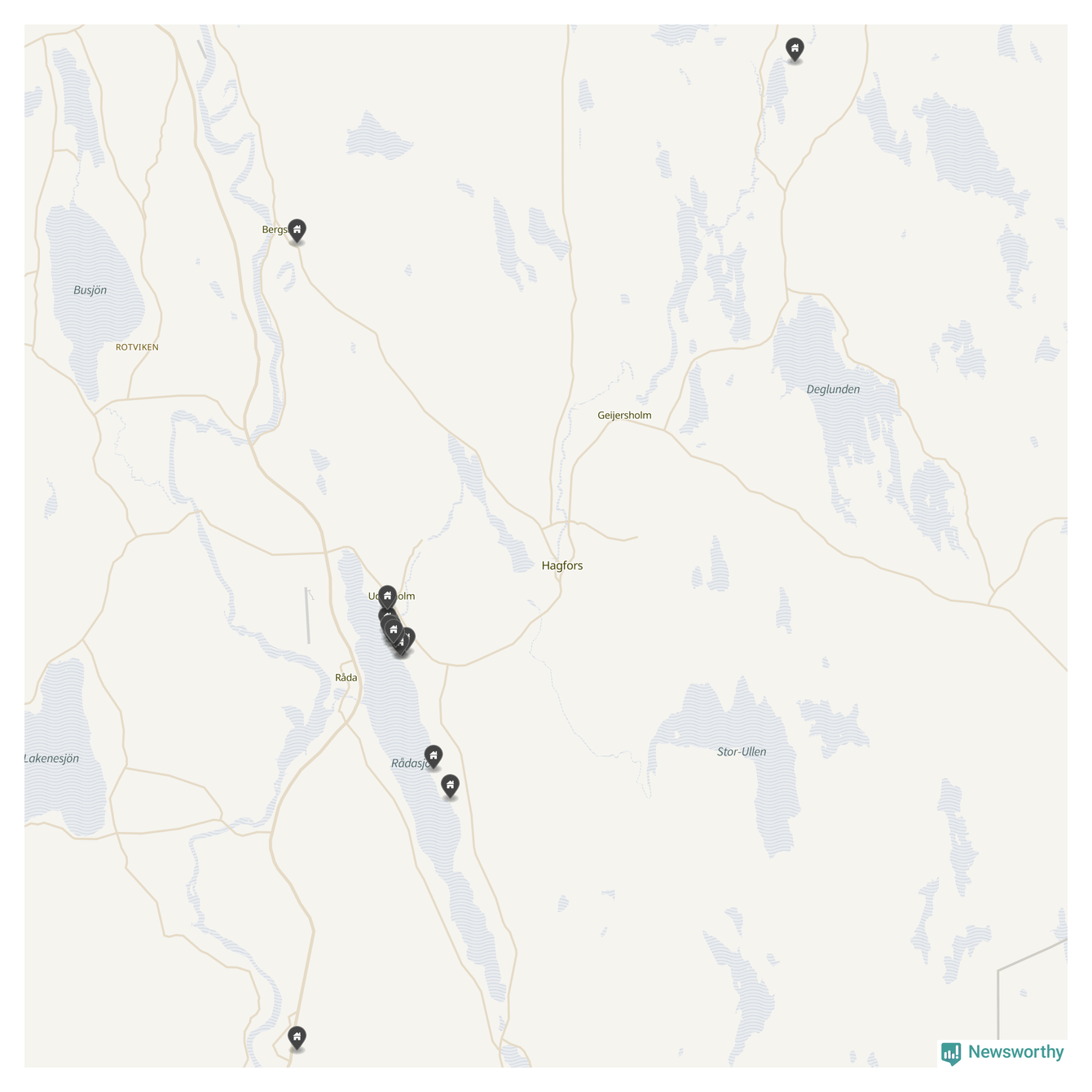 De 100 högst taxerade småhusfastigheterna i Hagfors har ett snittvärde på 1,8 miljoner kronor, vilket är omkring fyra miljoner lägre än snittet för alla kommuners 100 högst taxerade småhus. Det visar Newsworthys genomgång av kommunernas högst taxerade småhusfastigheter, som sammanställts med hjälp av data från The intelligence company.