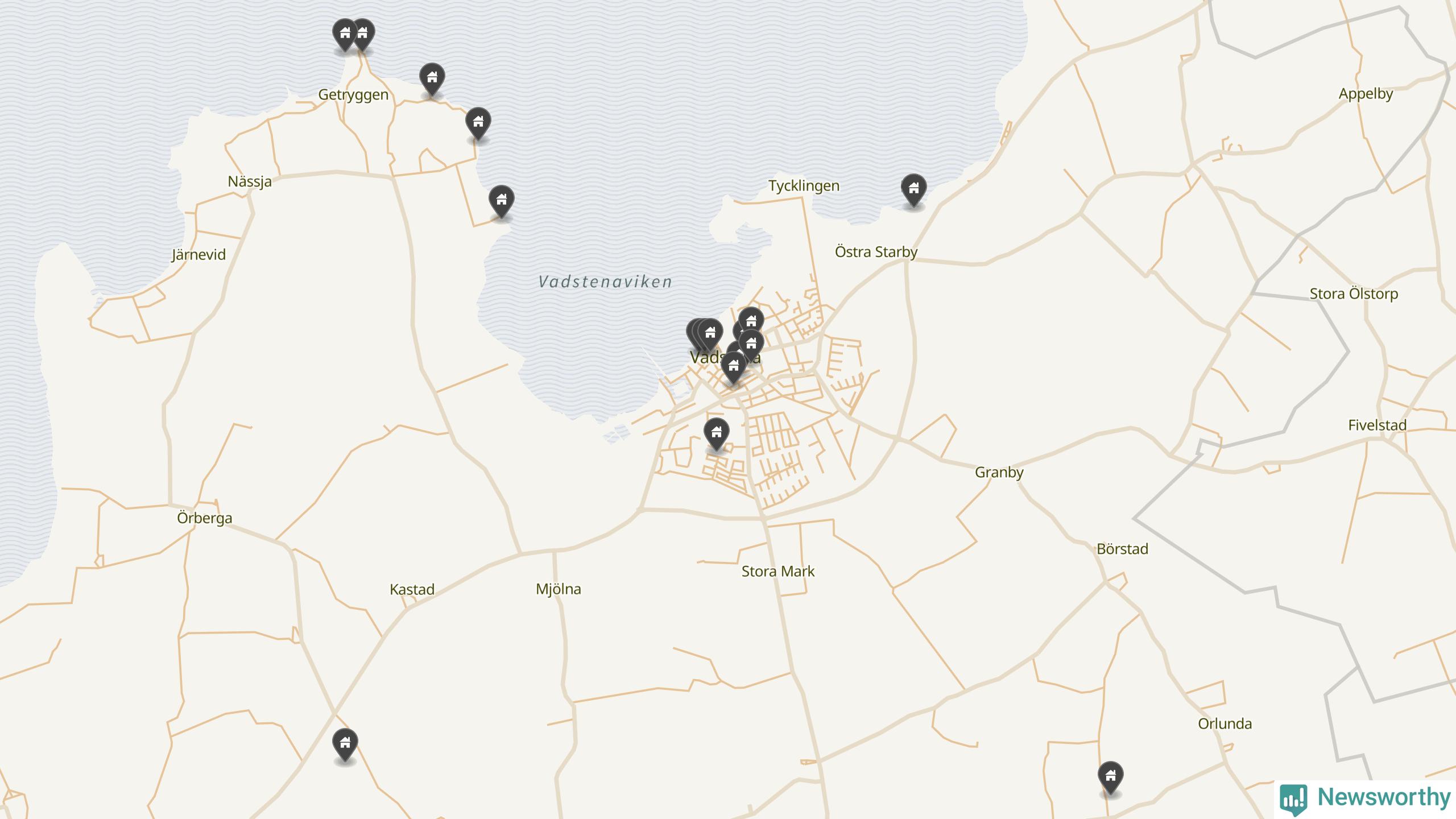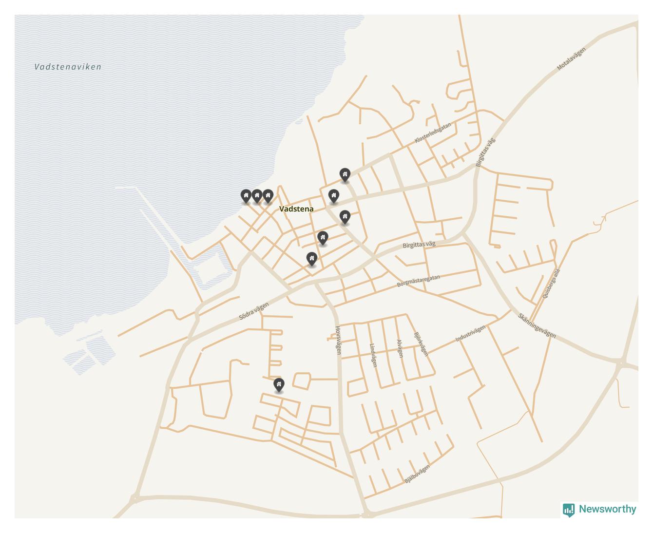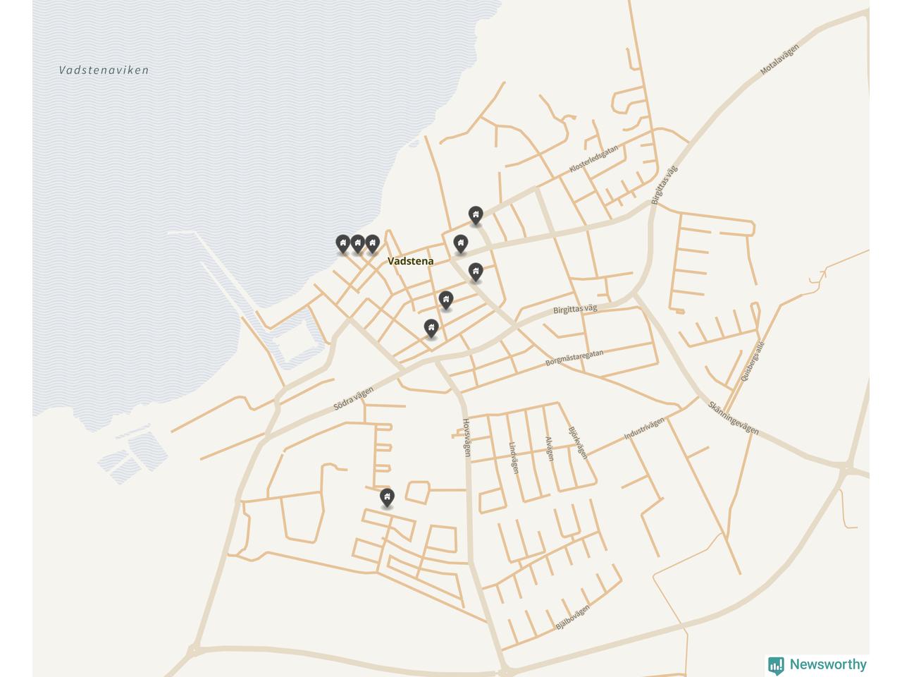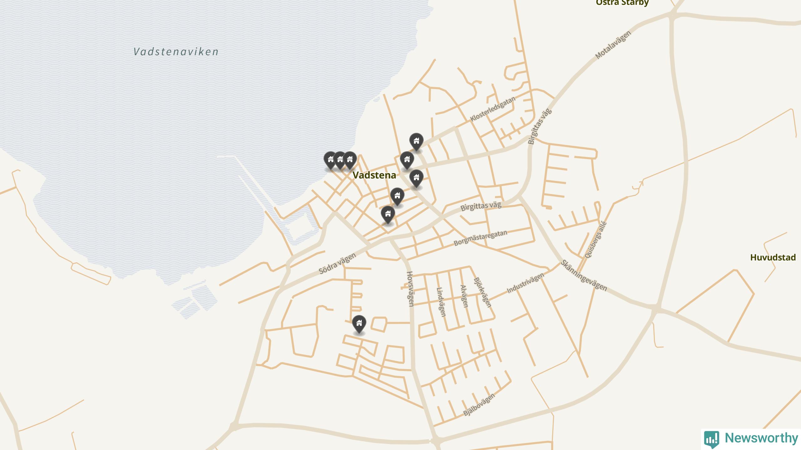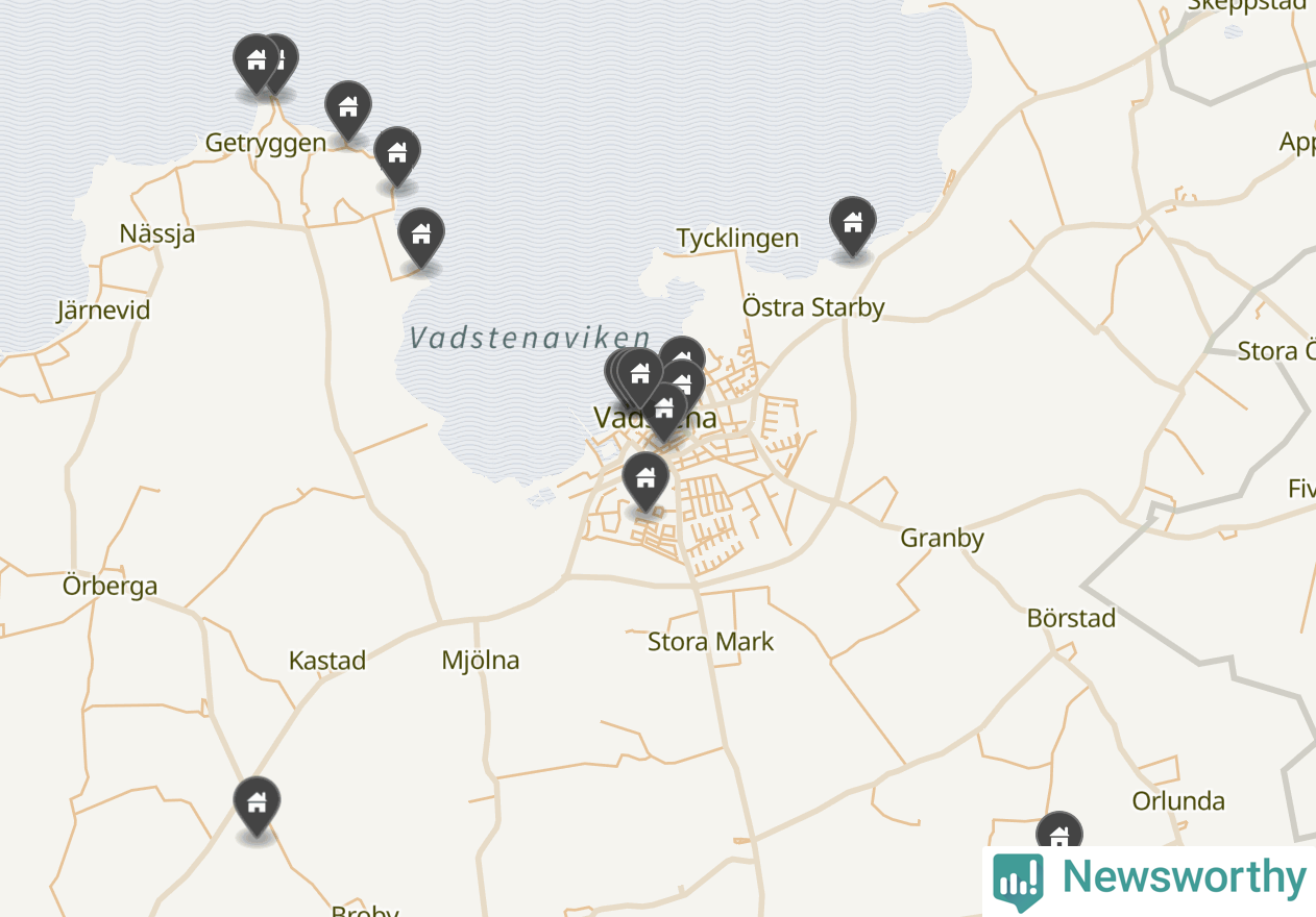 De 100 högst taxerade småhusfastigheterna i Vadstena har ett snittvärde på 4,6 miljoner kronor, vilket är omkring en miljon lägre än snittet för alla kommuners 100 högst taxerade småhus. Det visar Newsworthys genomgång av kommunernas högst taxerade småhusfastigheter, som sammanställts med hjälp av data från The intelligence company.