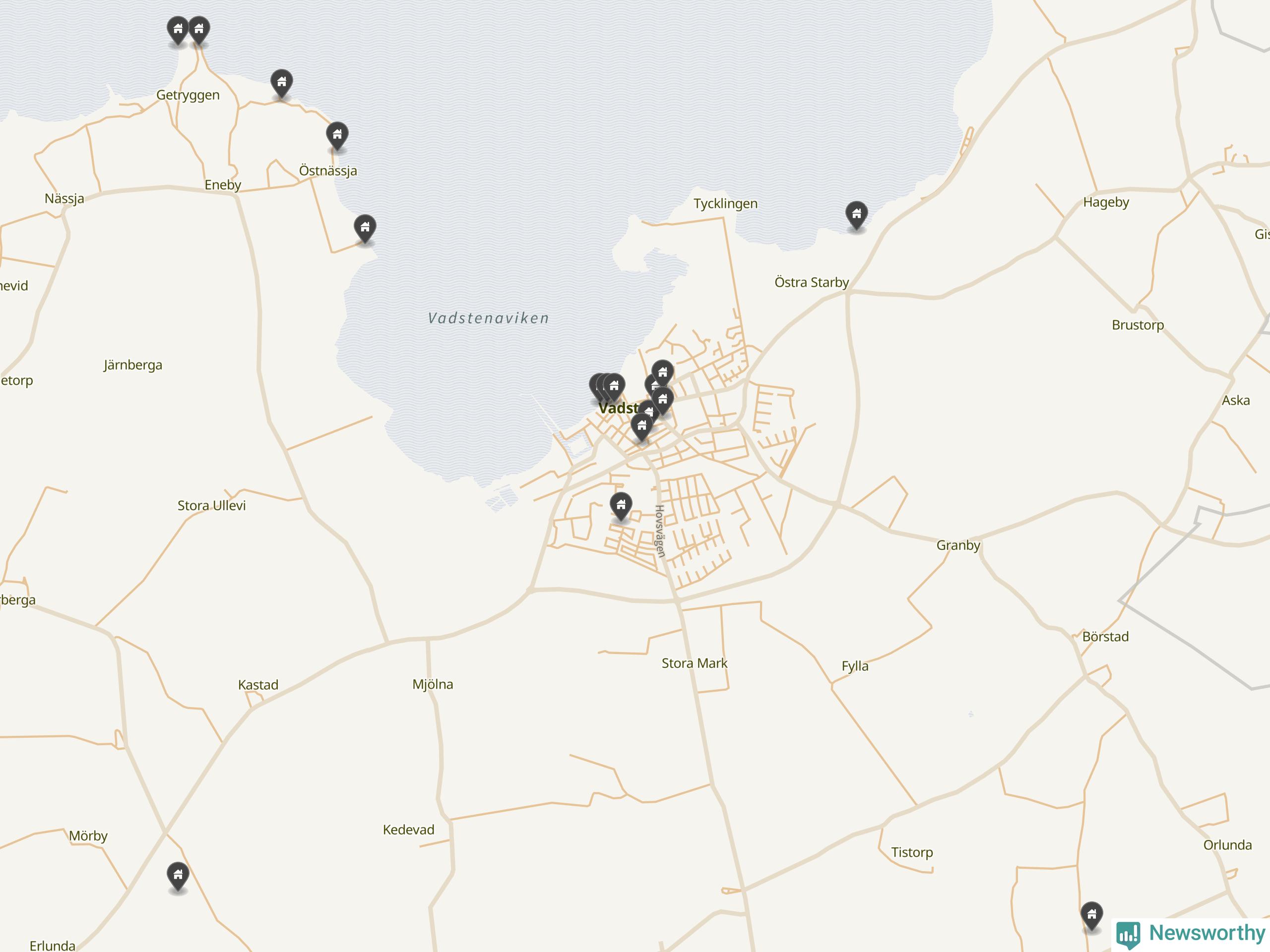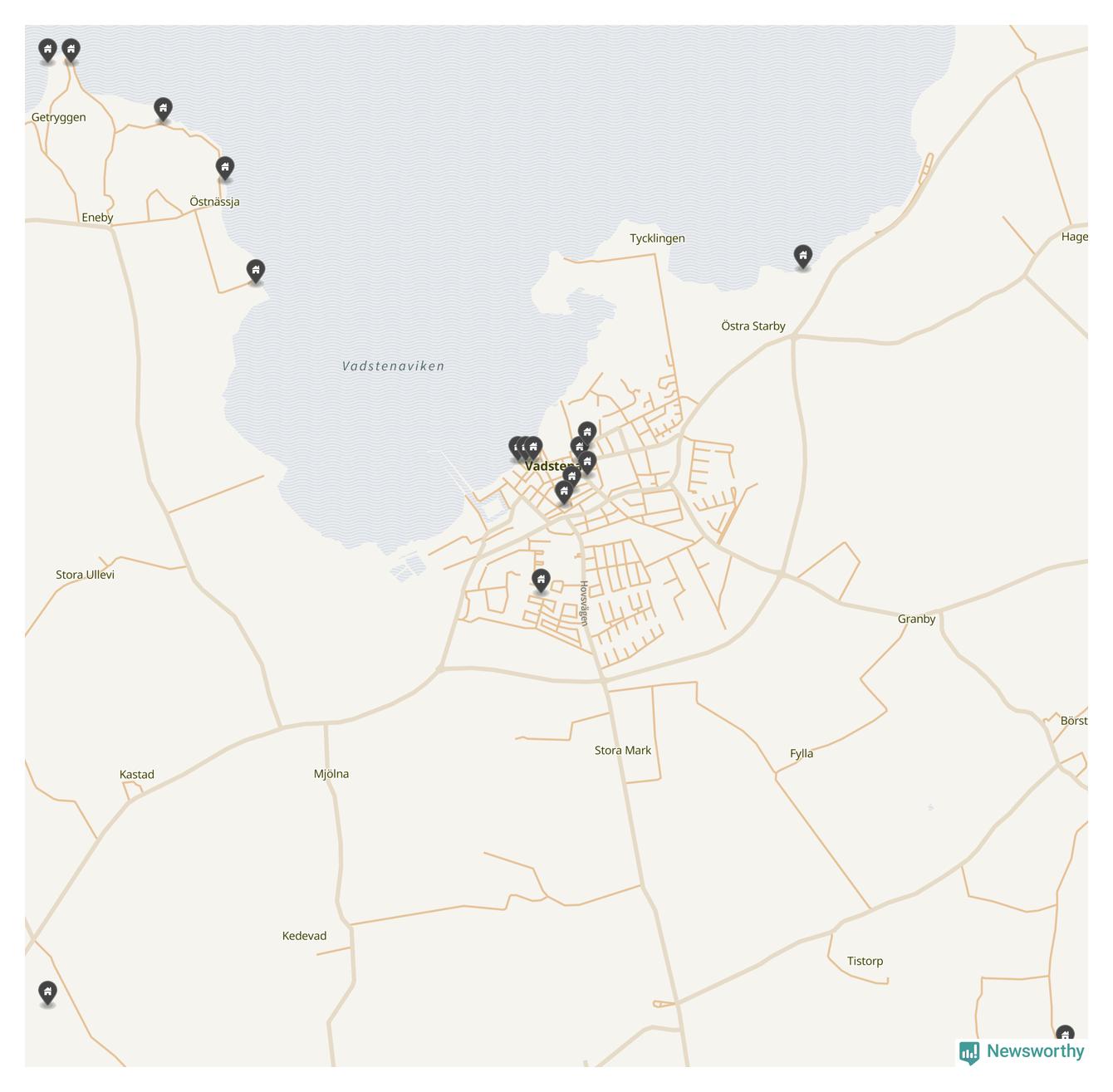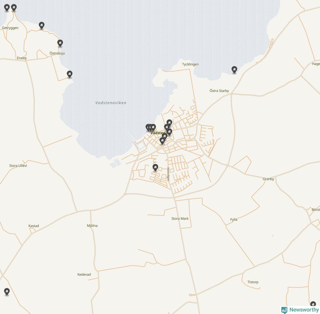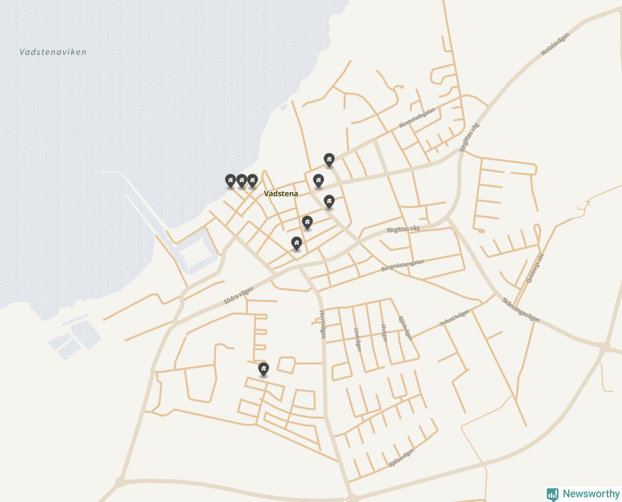 De 100 högst taxerade småhusfastigheterna i Vadstena har ett snittvärde på 4,6 miljoner kronor, vilket är omkring en miljon lägre än snittet för alla kommuners 100 högst taxerade småhus. Det visar Newsworthys genomgång av kommunernas högst taxerade småhusfastigheter, som sammanställts med hjälp av data från The intelligence company.