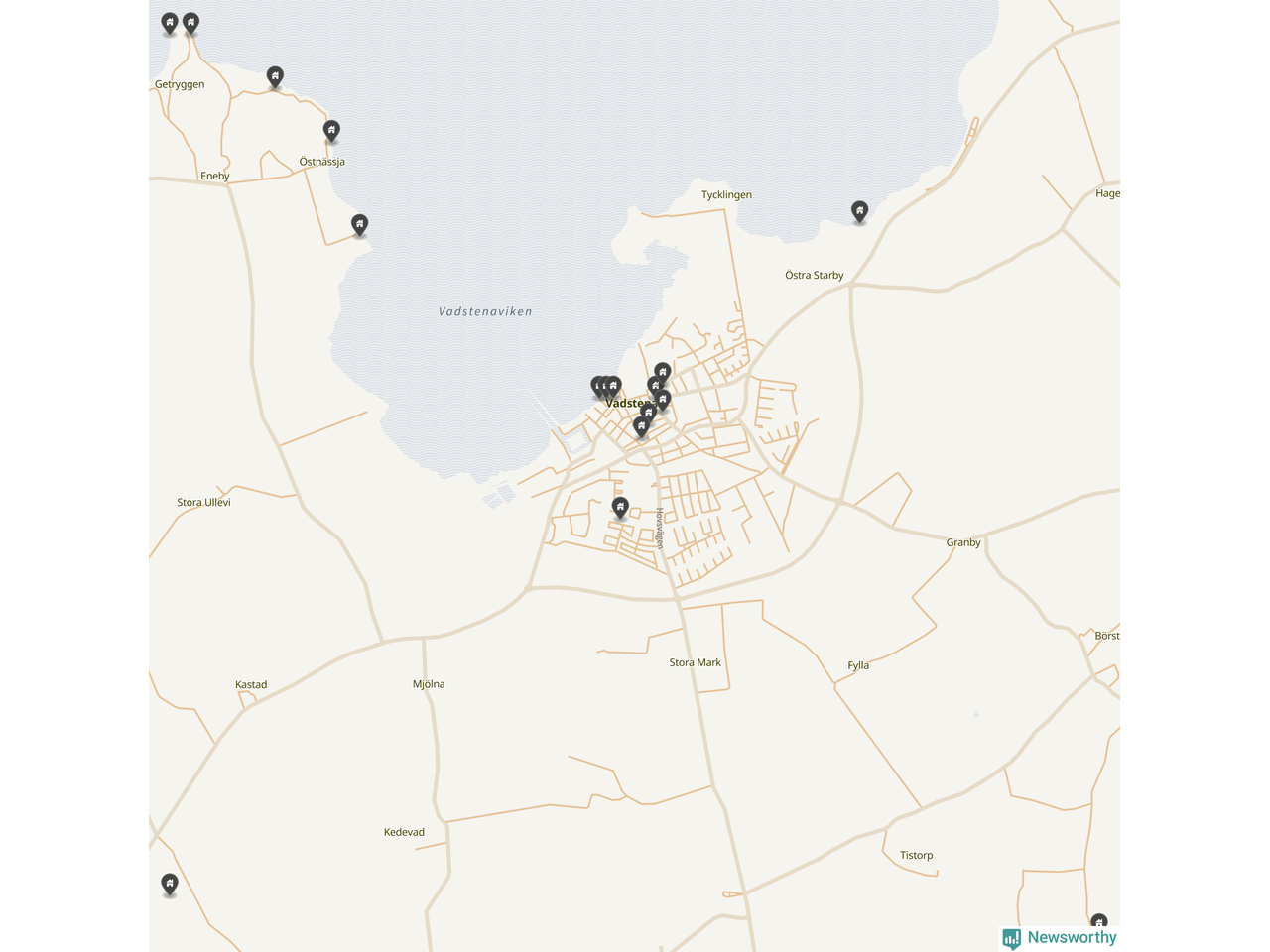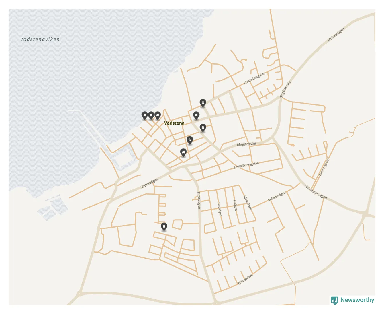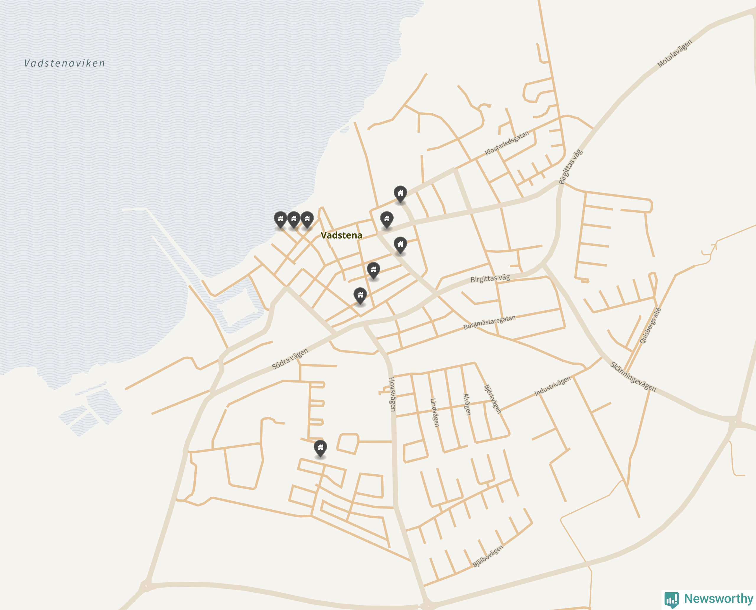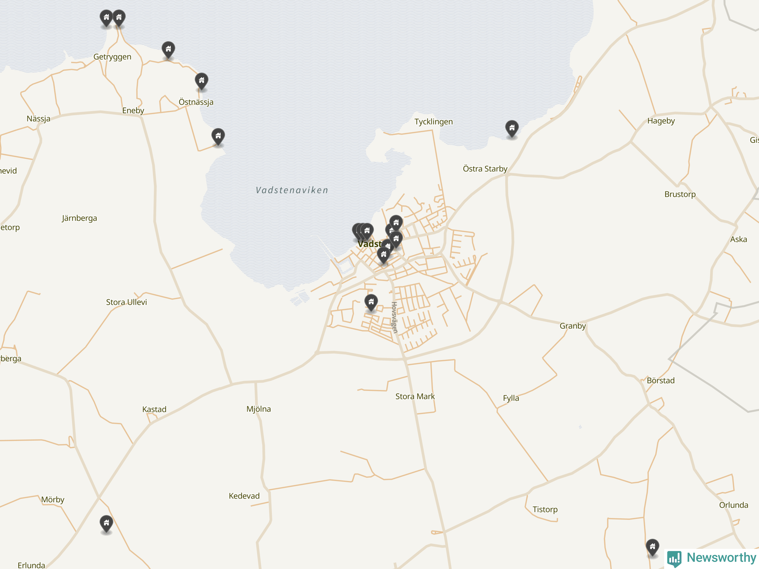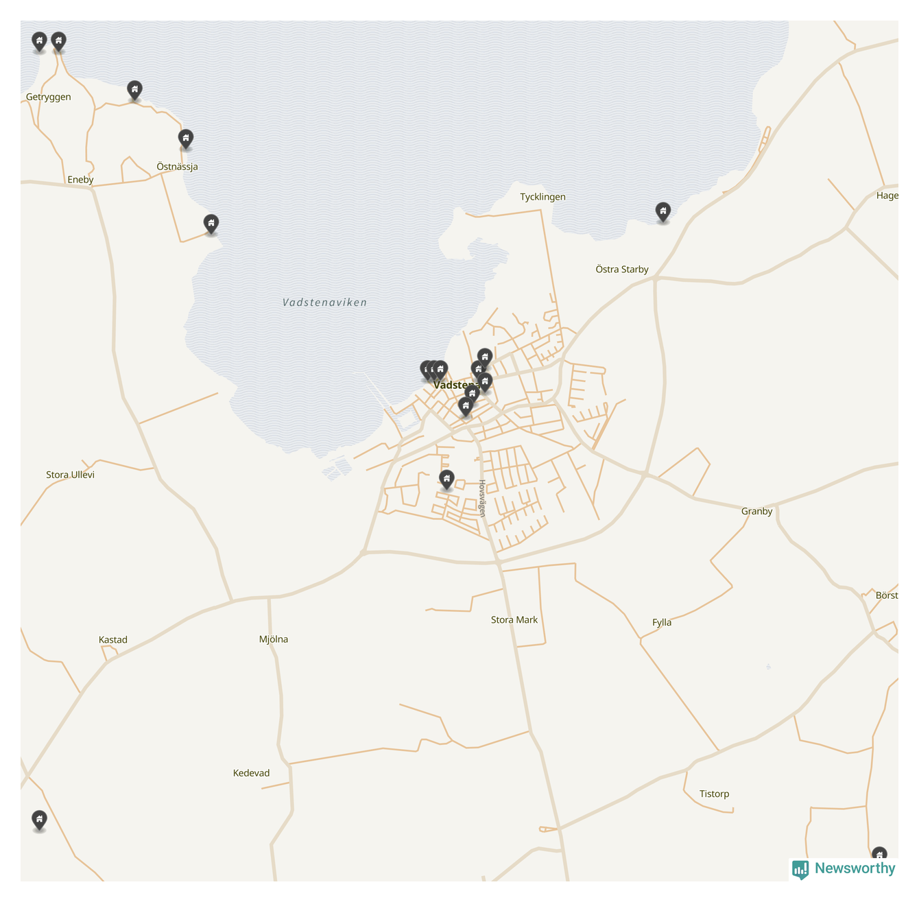 De 100 högst taxerade småhusfastigheterna i Vadstena har ett snittvärde på 4,6 miljoner kronor, vilket är omkring en miljon lägre än snittet för alla kommuners 100 högst taxerade småhus. Det visar Newsworthys genomgång av kommunernas högst taxerade småhusfastigheter, som sammanställts med hjälp av data från The intelligence company.