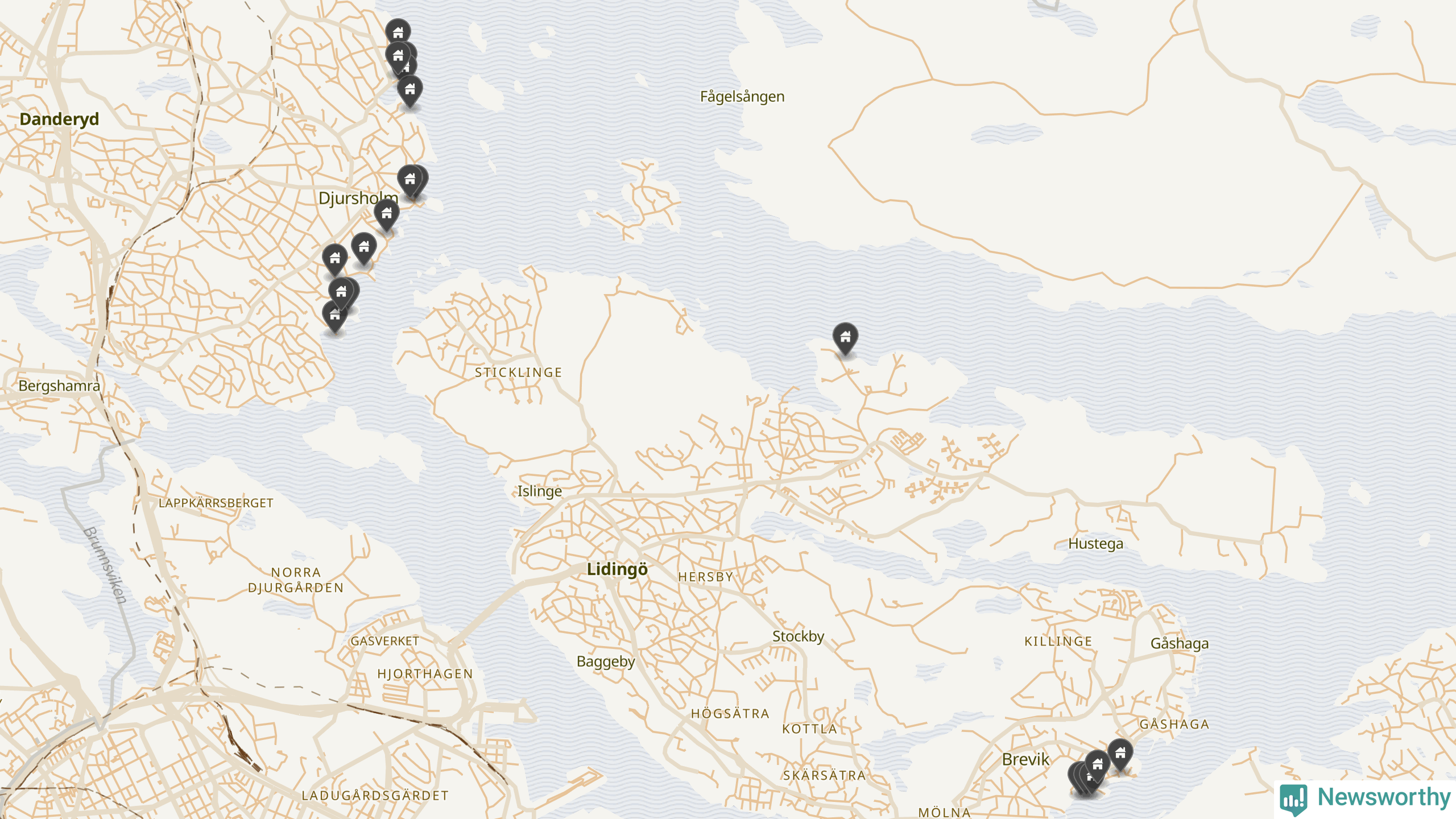 53DanderydDanderyd Ägir 8Väringavägen 8b 44,6 miljoner2 677 m²Visa