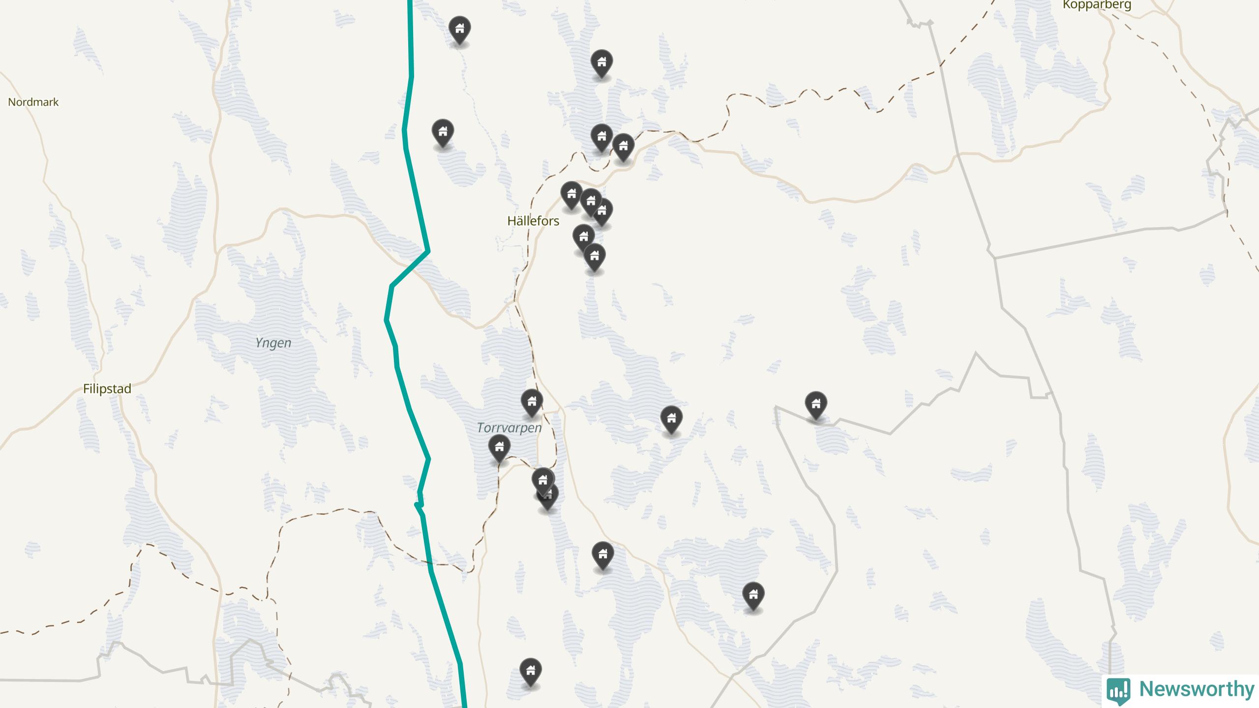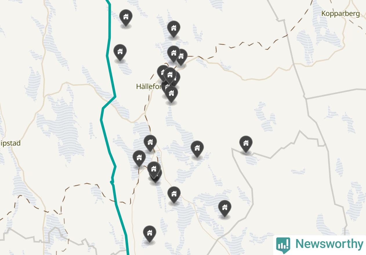 De 100 högst taxerade småhusfastigheterna i Hällefors har ett snittvärde på 1,6 miljoner kronor, vilket är omkring fyra miljoner lägre än snittet för alla kommuners 100 högst taxerade småhus. Det visar Newsworthys genomgång av kommunernas högst taxerade småhusfastigheter, som sammanställts med hjälp av data från The intelligence company.