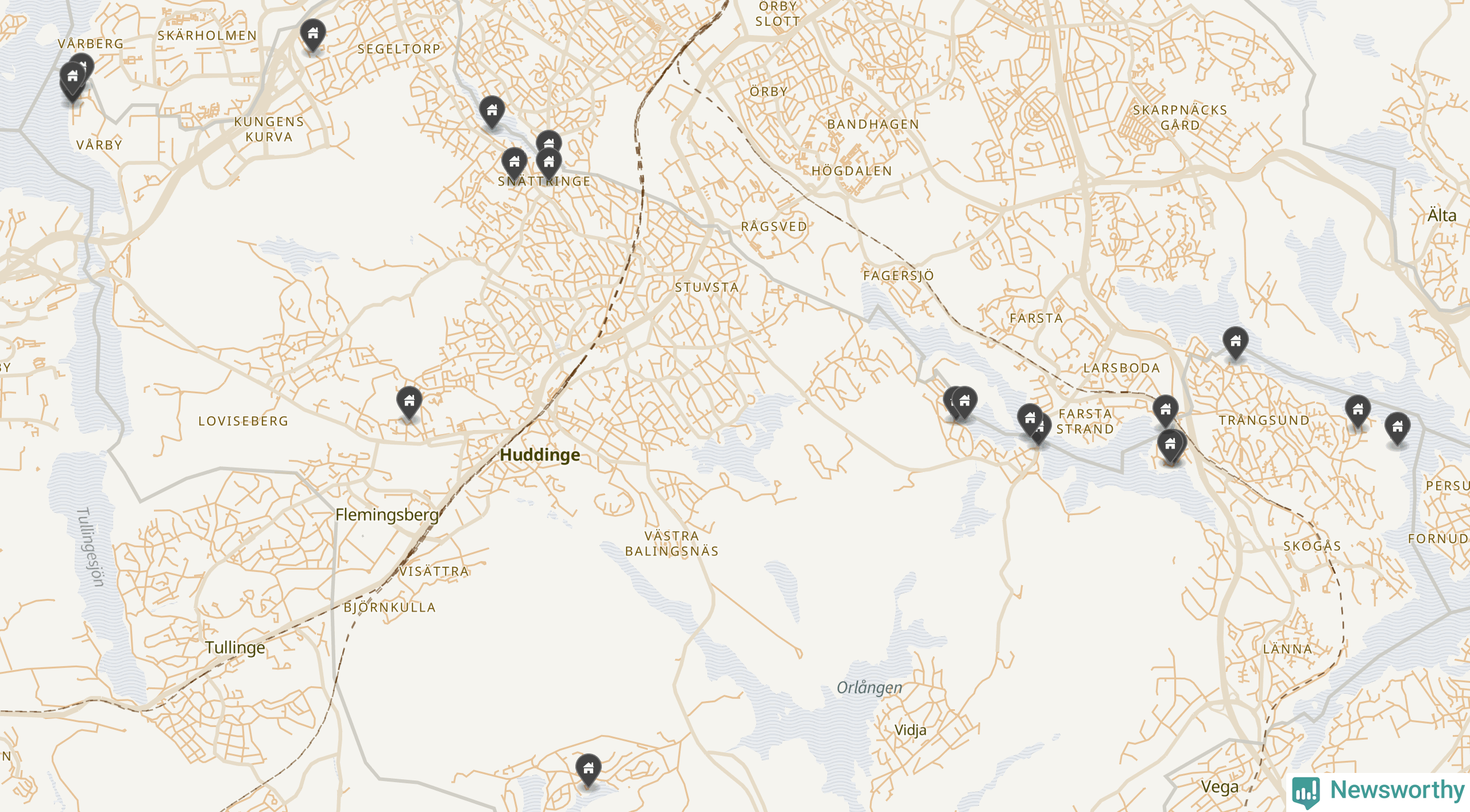 76 | Huddinge Fogden 15 | Ingen uppgift | 10,2 miljoner | 1 011 m² | Visa |