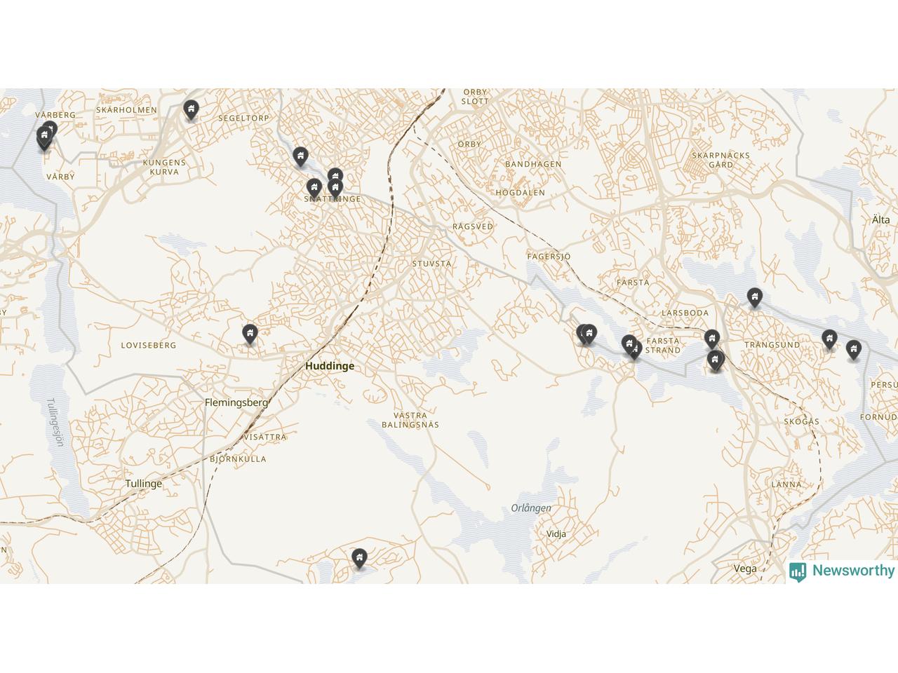 21 | Huddinge Fresken 16 | Svartviksvägen 14 | 11,5 miljoner | 2 125 m² | Visa |