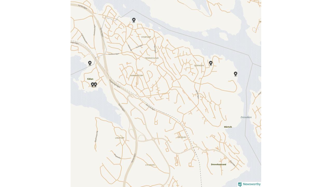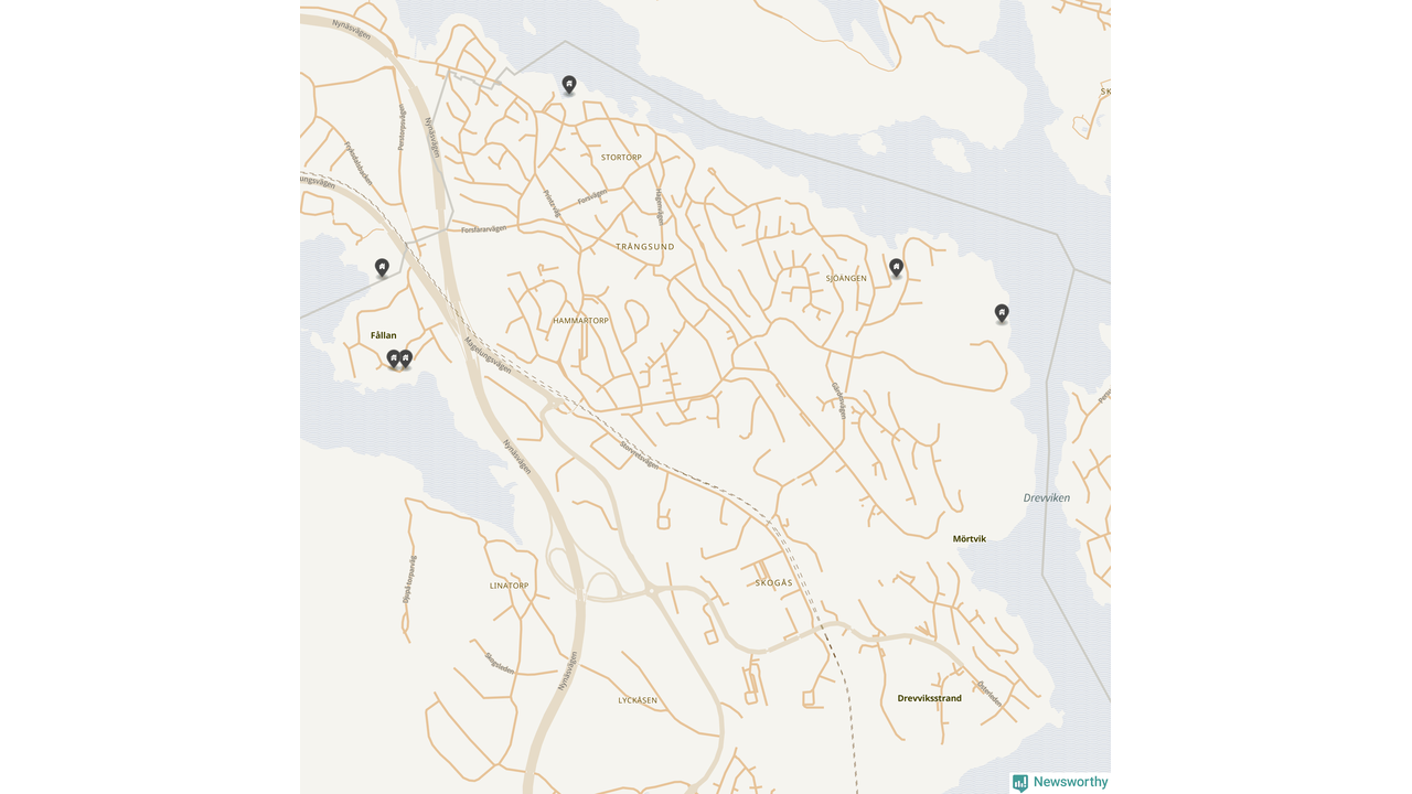 De 20 högst taxerade fastigheterna visas. En markör per fastighet. Samtaxerade fastigheter visas bara en gång. Notera att det är centrumpunkten för fastigheten som visas, vilket kan vara missvisande för stora fastigheter.