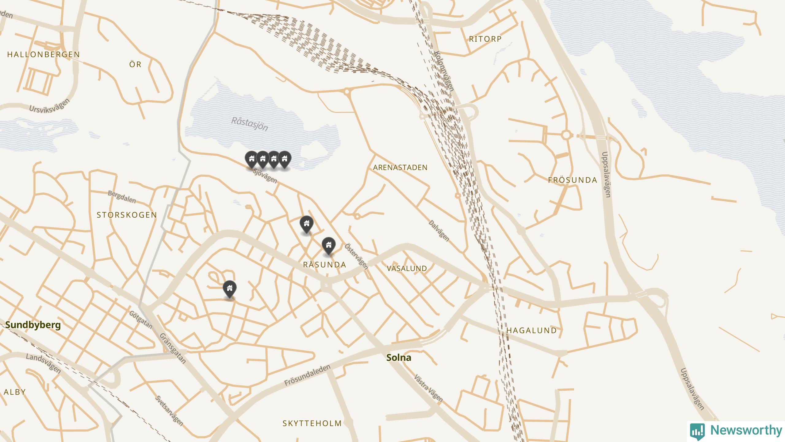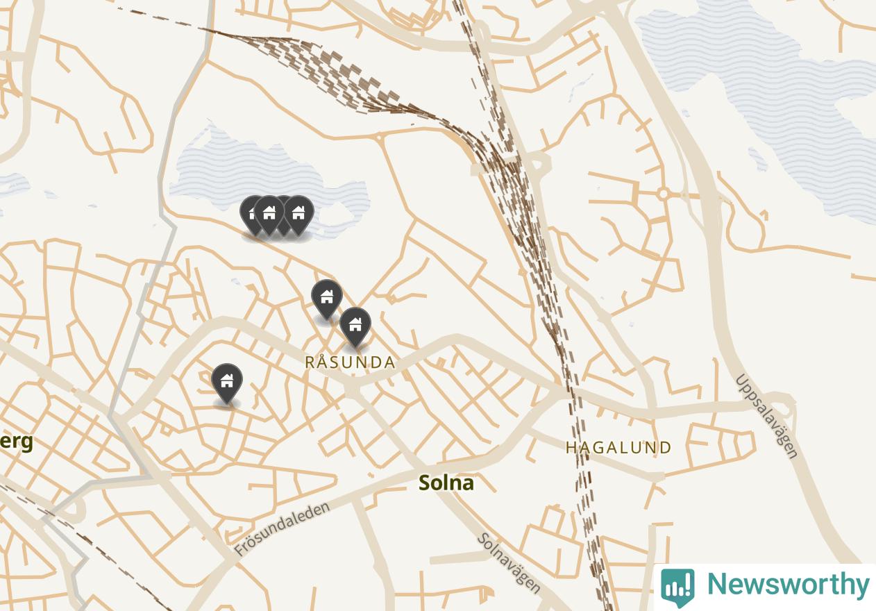 22 | Solna Matrosen 7 | Krokusvägen 6 m.fl. | 14,2 miljoner | 1 193 m² | Visa |