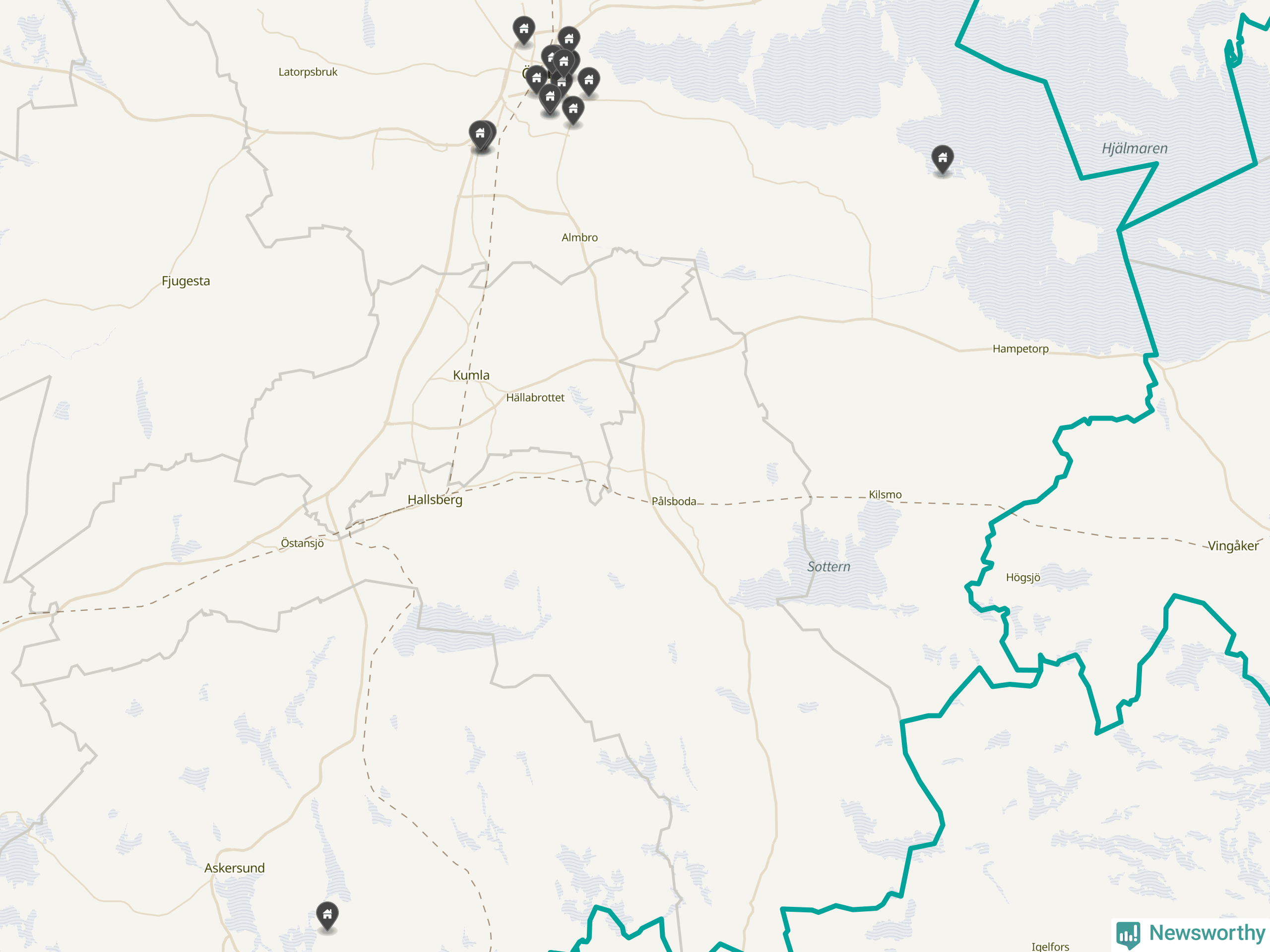34 | Askersund | Askersund Hammar 4:5 | Solvik 45 | 8,4 miljoner | 2 522 m² | Visa |