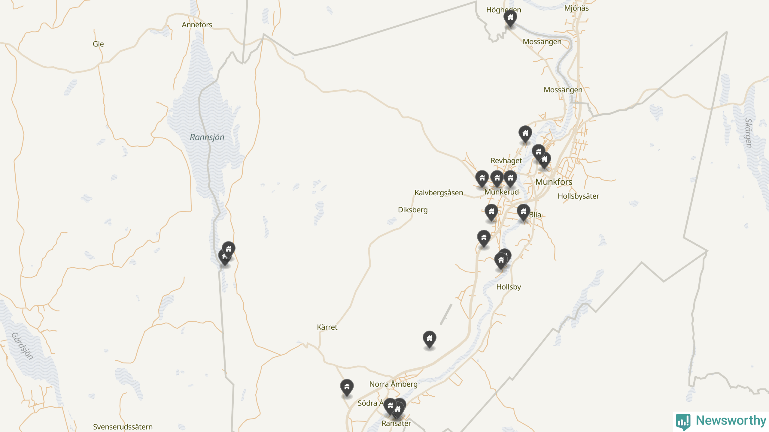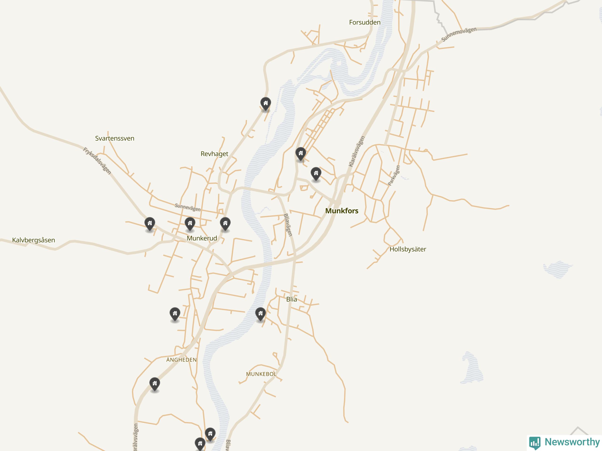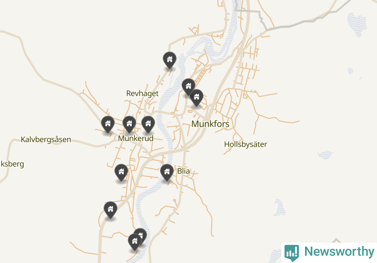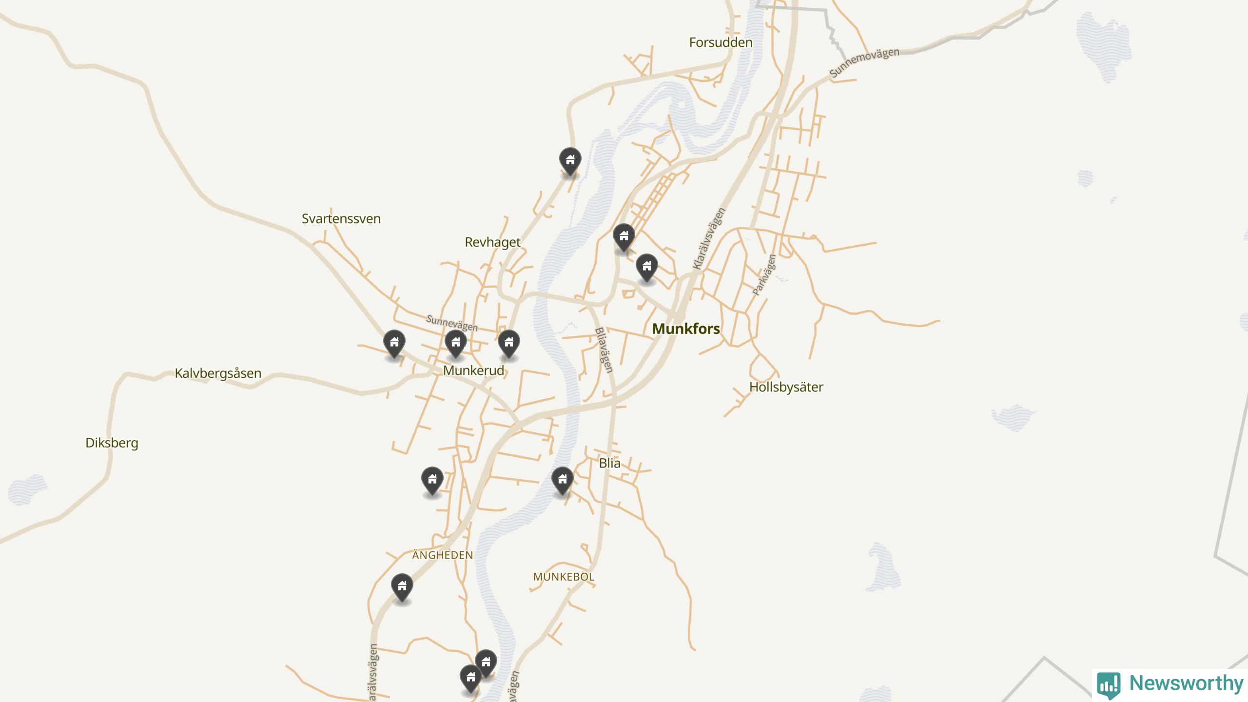 De 100 högst taxerade småhusfastigheterna i Munkfors har ett snittvärde på 860 460 kronor, vilket är omkring fem miljoner lägre än snittet för alla kommuners 100 högst taxerade småhus. Det visar Newsworthys genomgång av kommunernas högst taxerade småhusfastigheter, som sammanställts med hjälp av data från The intelligence company.