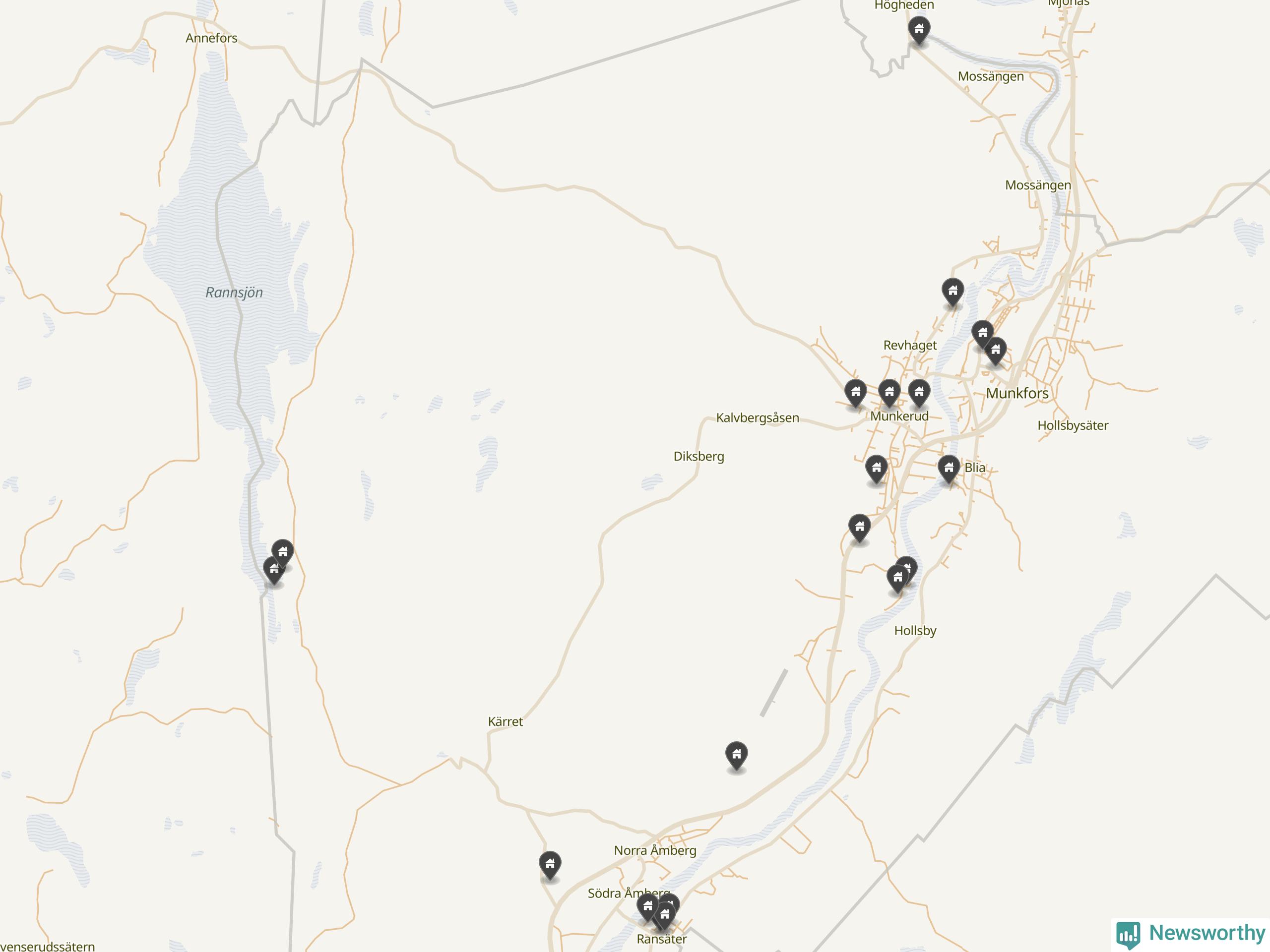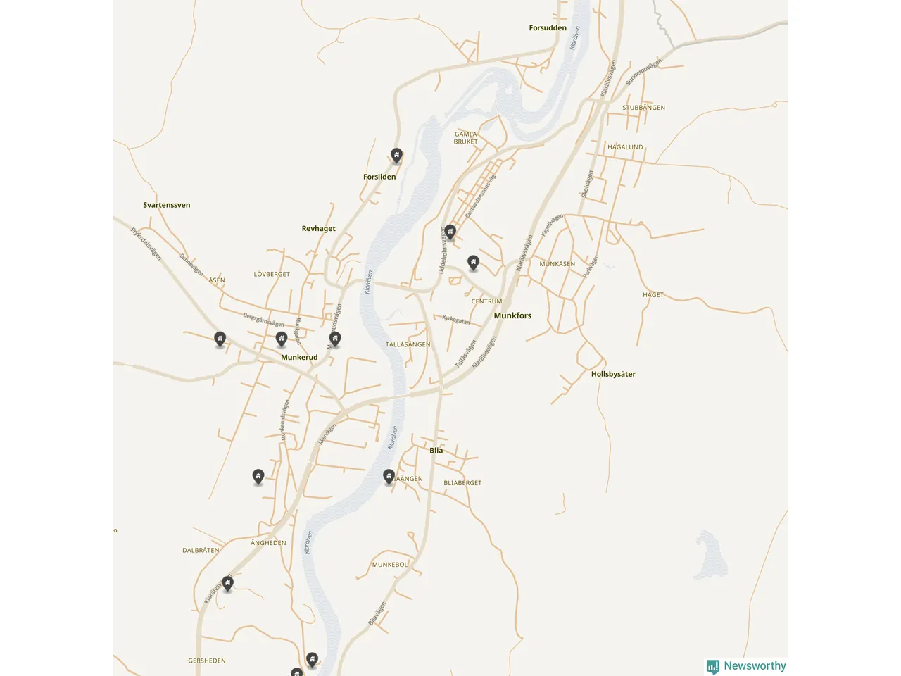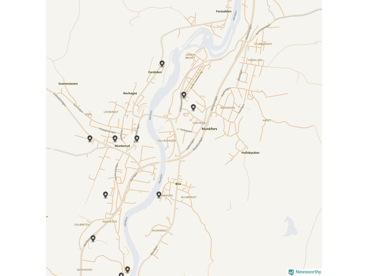 De 100 högst taxerade småhusfastigheterna i Munkfors har ett snittvärde på 860 460 kronor, vilket är omkring fem miljoner lägre än snittet för alla kommuners 100 högst taxerade småhus. Det visar Newsworthys genomgång av kommunernas högst taxerade småhusfastigheter, som sammanställts med hjälp av data från The intelligence company.