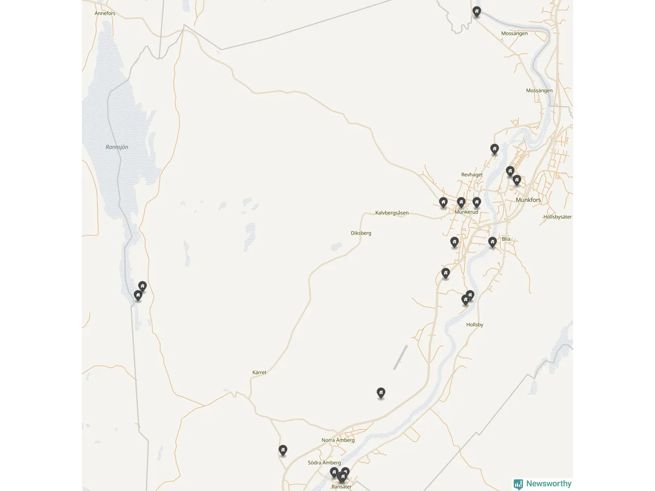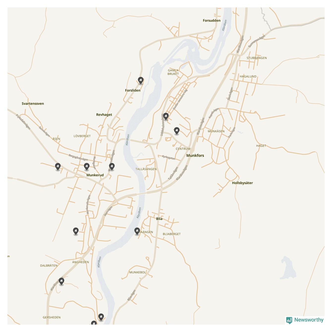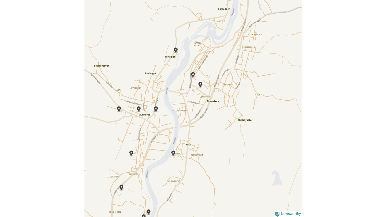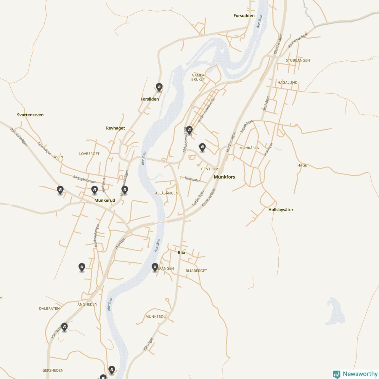 De 100 högst taxerade småhusfastigheterna i Munkfors har ett snittvärde på 860 460 kronor, vilket är omkring fem miljoner lägre än snittet för alla kommuners 100 högst taxerade småhus. Det visar Newsworthys genomgång av kommunernas högst taxerade småhusfastigheter, som sammanställts med hjälp av data från The intelligence company.