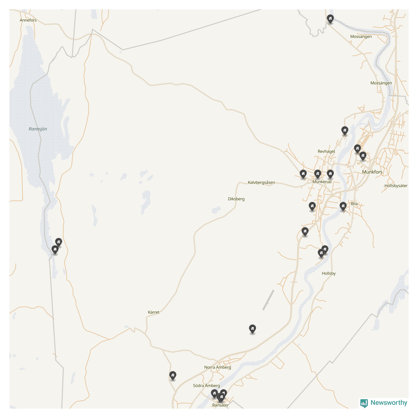 15 | Munkfors Munkerud 2:5 | Mossängsvägen 62 | 1 miljon | 1 950 m² | Visa |