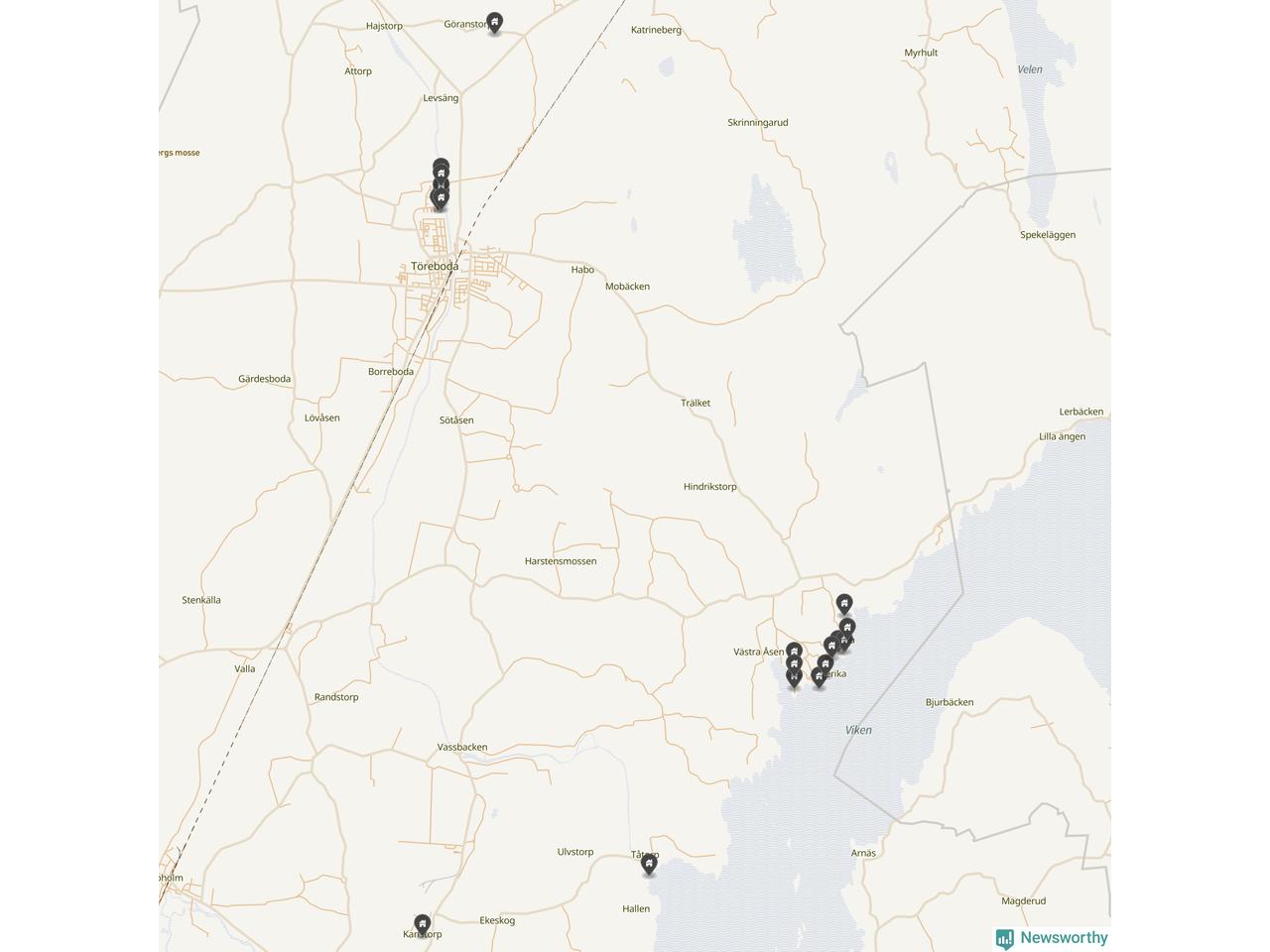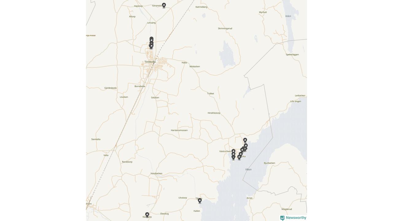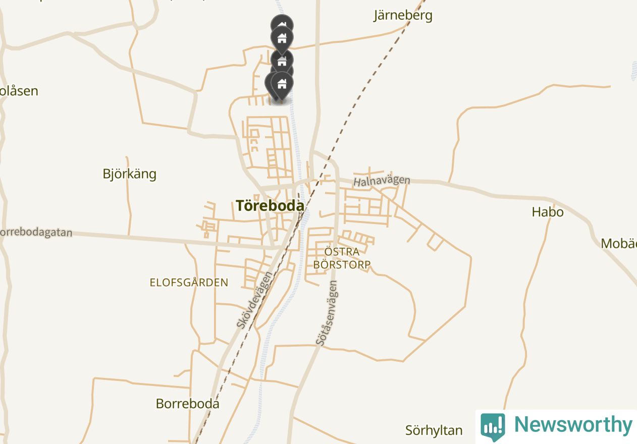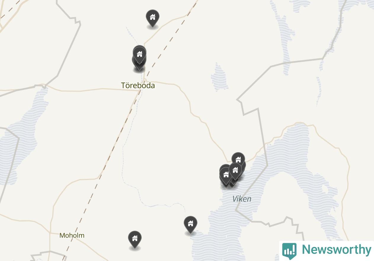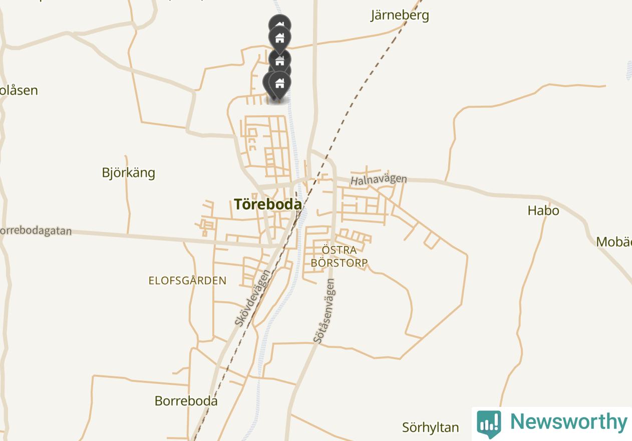 De 100 högst taxerade småhusfastigheterna i Töreboda har ett snittvärde på 2,3 miljoner kronor, vilket är omkring fyra miljoner lägre än snittet för alla kommuners 100 högst taxerade småhus. Det visar Newsworthys genomgång av kommunernas högst taxerade småhusfastigheter, som sammanställts med hjälp av data från The intelligence company.