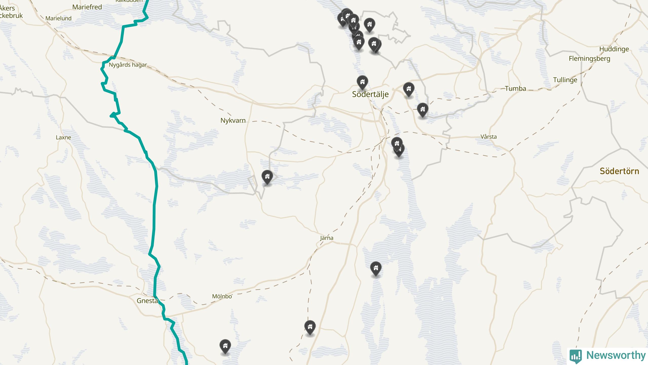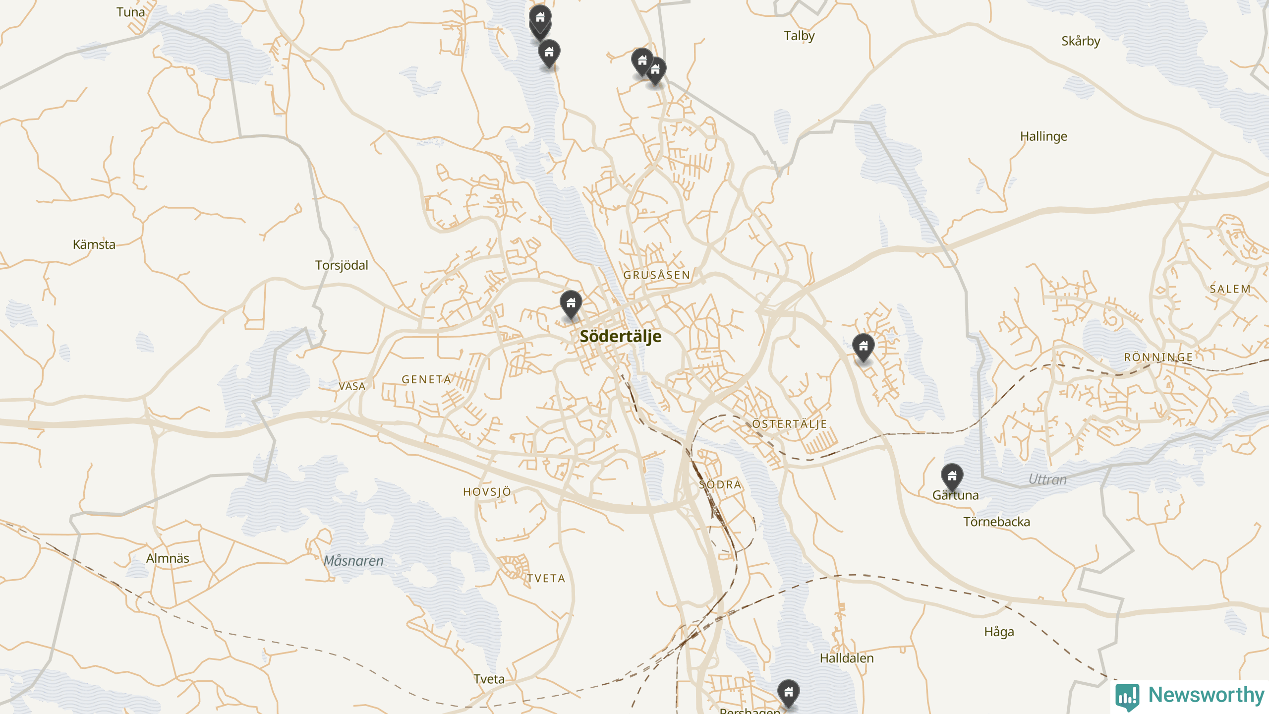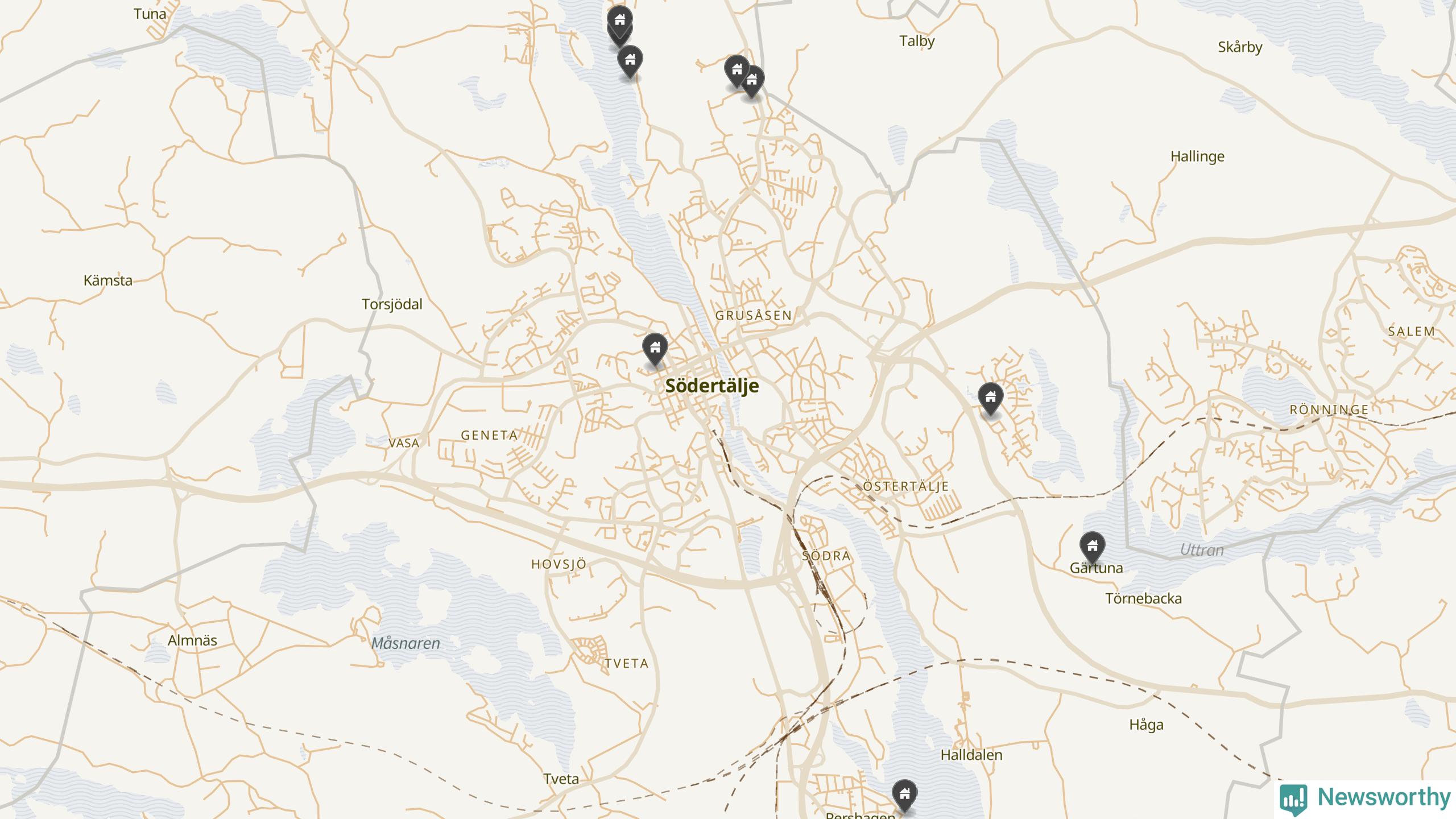 De 100 högst taxerade småhusfastigheterna i Södertälje har ett snittvärde på 8,5 miljoner kronor, vilket är omkring två miljoner högre än snittet för alla kommuners 100 högst taxerade småhus. Det visar Newsworthys genomgång av kommunernas högst taxerade småhusfastigheter, som sammanställts med hjälp av data från The intelligence company.