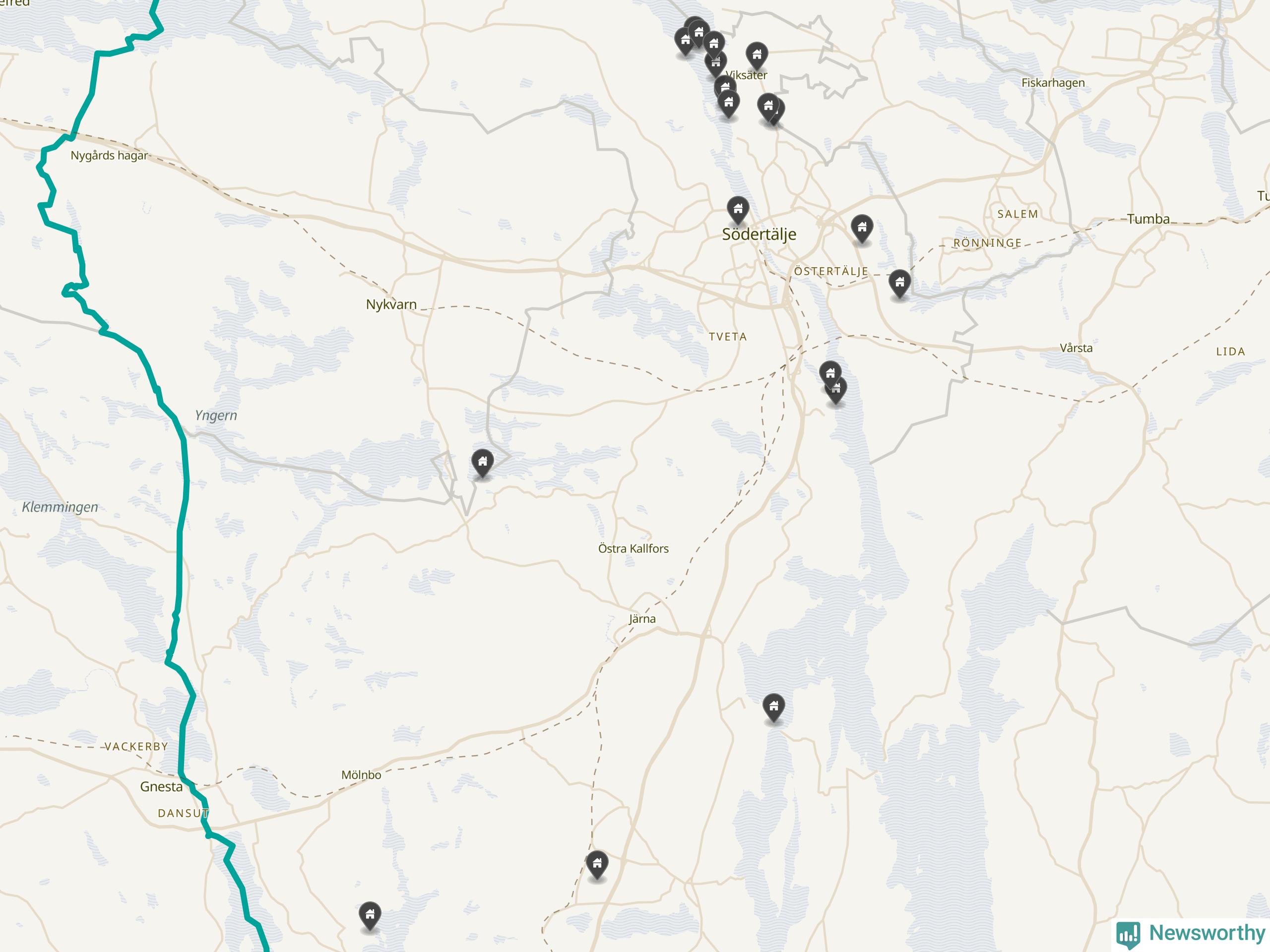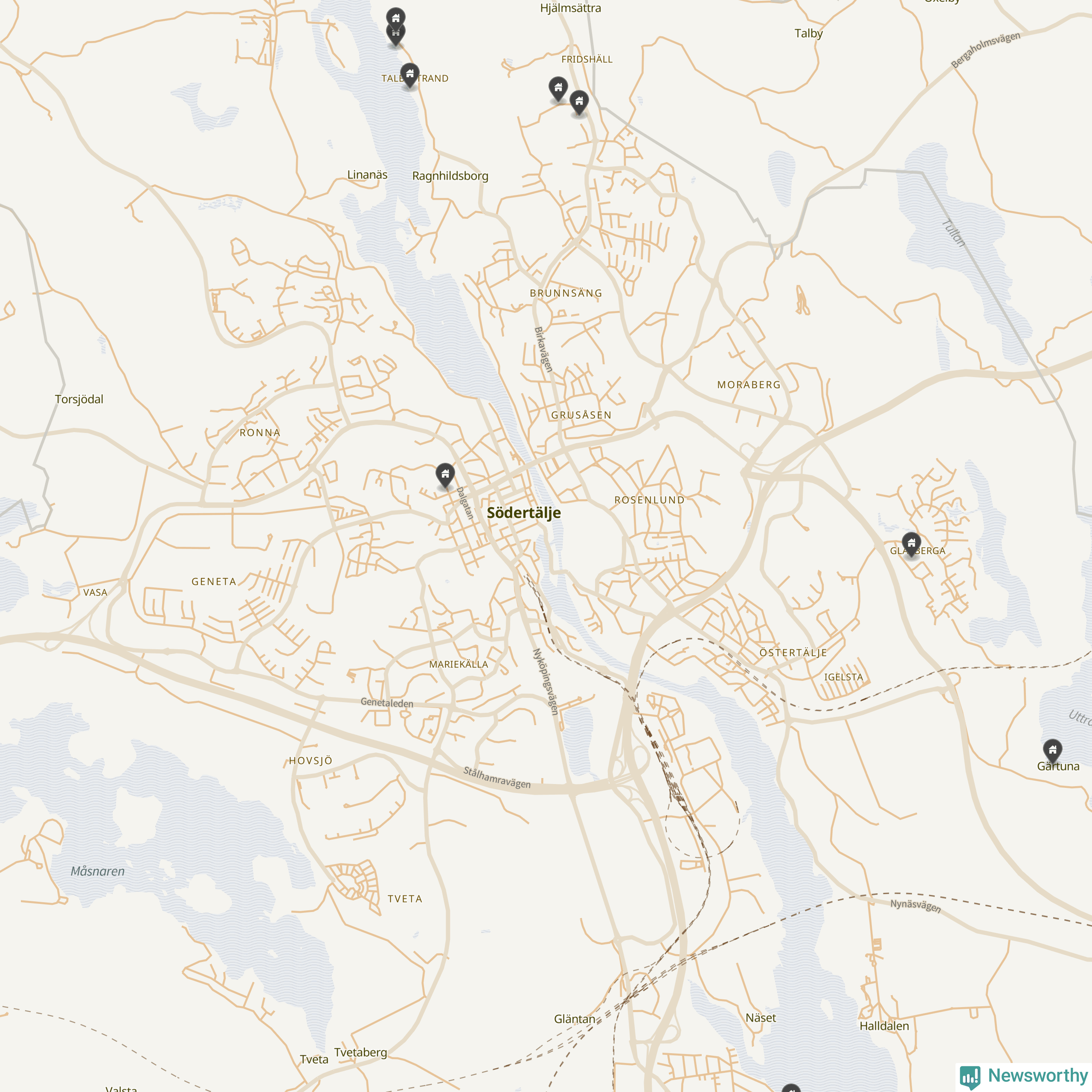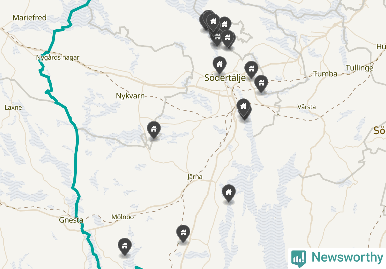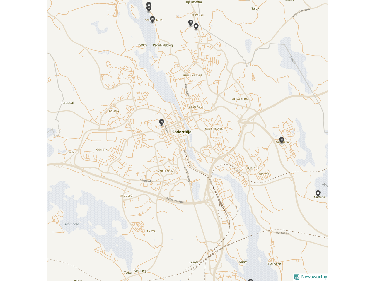 De 100 högst taxerade småhusfastigheterna i Södertälje har ett snittvärde på 8,5 miljoner kronor, vilket är omkring två miljoner högre än snittet för alla kommuners 100 högst taxerade småhus. Det visar Newsworthys genomgång av kommunernas högst taxerade småhusfastigheter, som sammanställts med hjälp av data från The intelligence company.