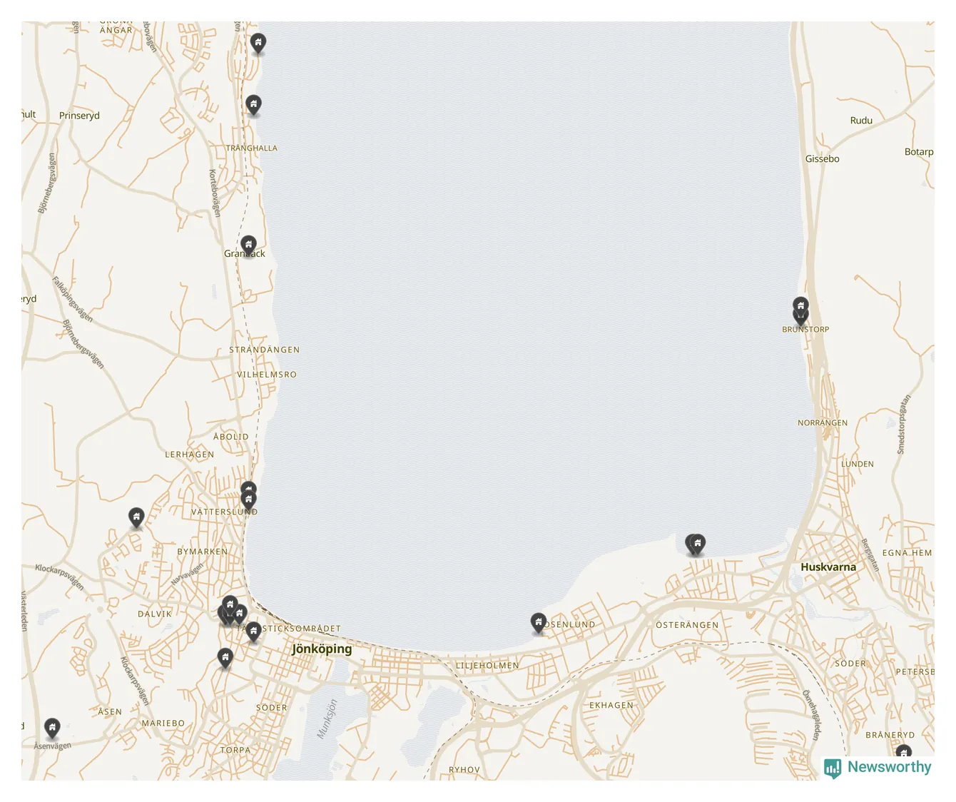 De 100 högst taxerade småhusfastigheterna i Jönköpings kommun har ett snittvärde på 8,7 miljoner kronor, vilket är omkring tre miljoner högre än snittet för alla kommuners 100 högst taxerade småhus. Det visar Newsworthys genomgång av kommunernas högst taxerade småhusfastigheter, som sammanställts med hjälp av data från The intelligence company.