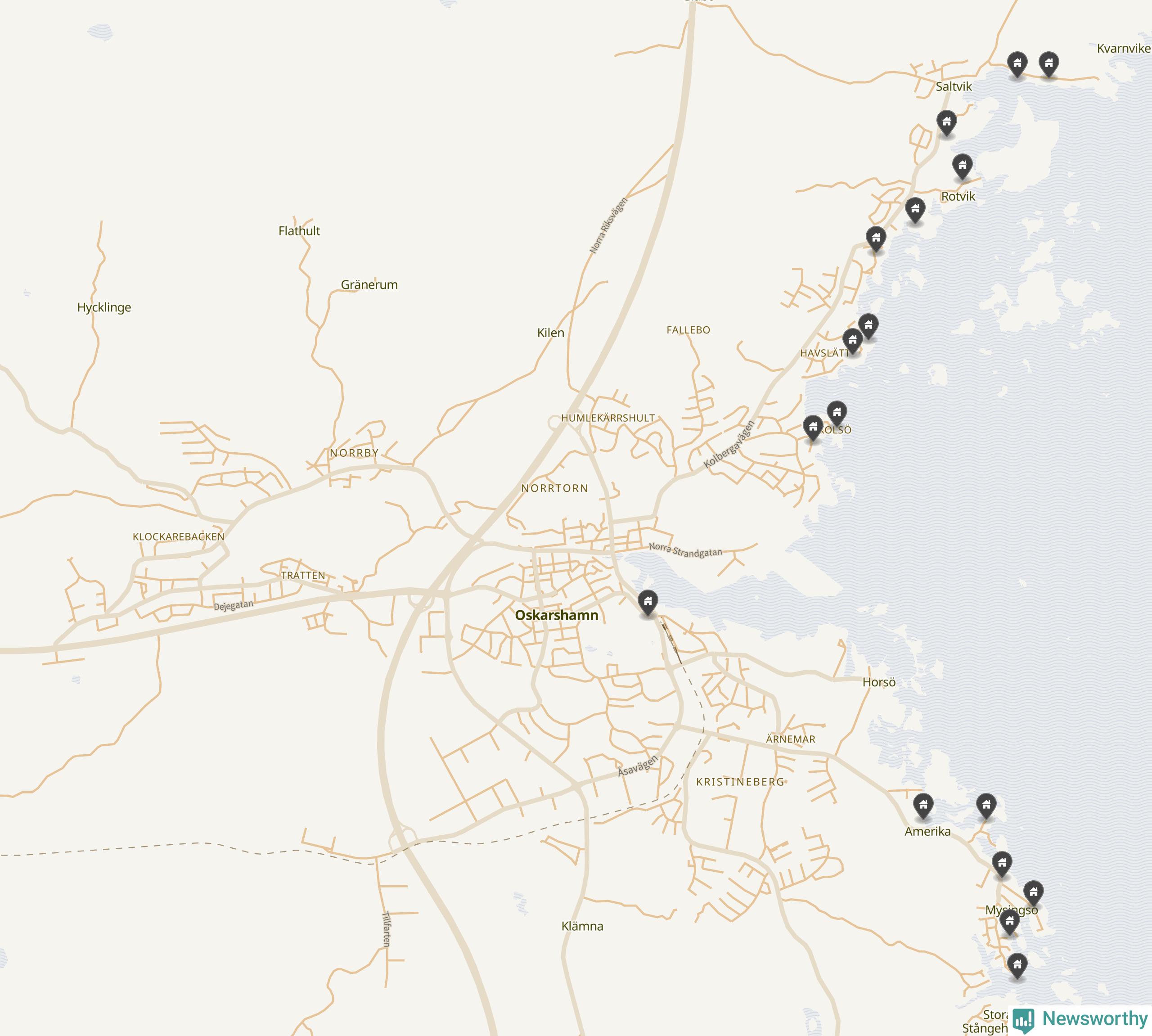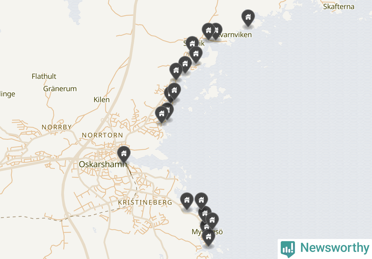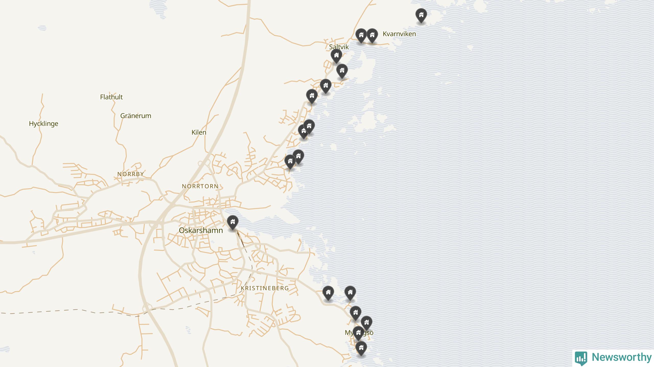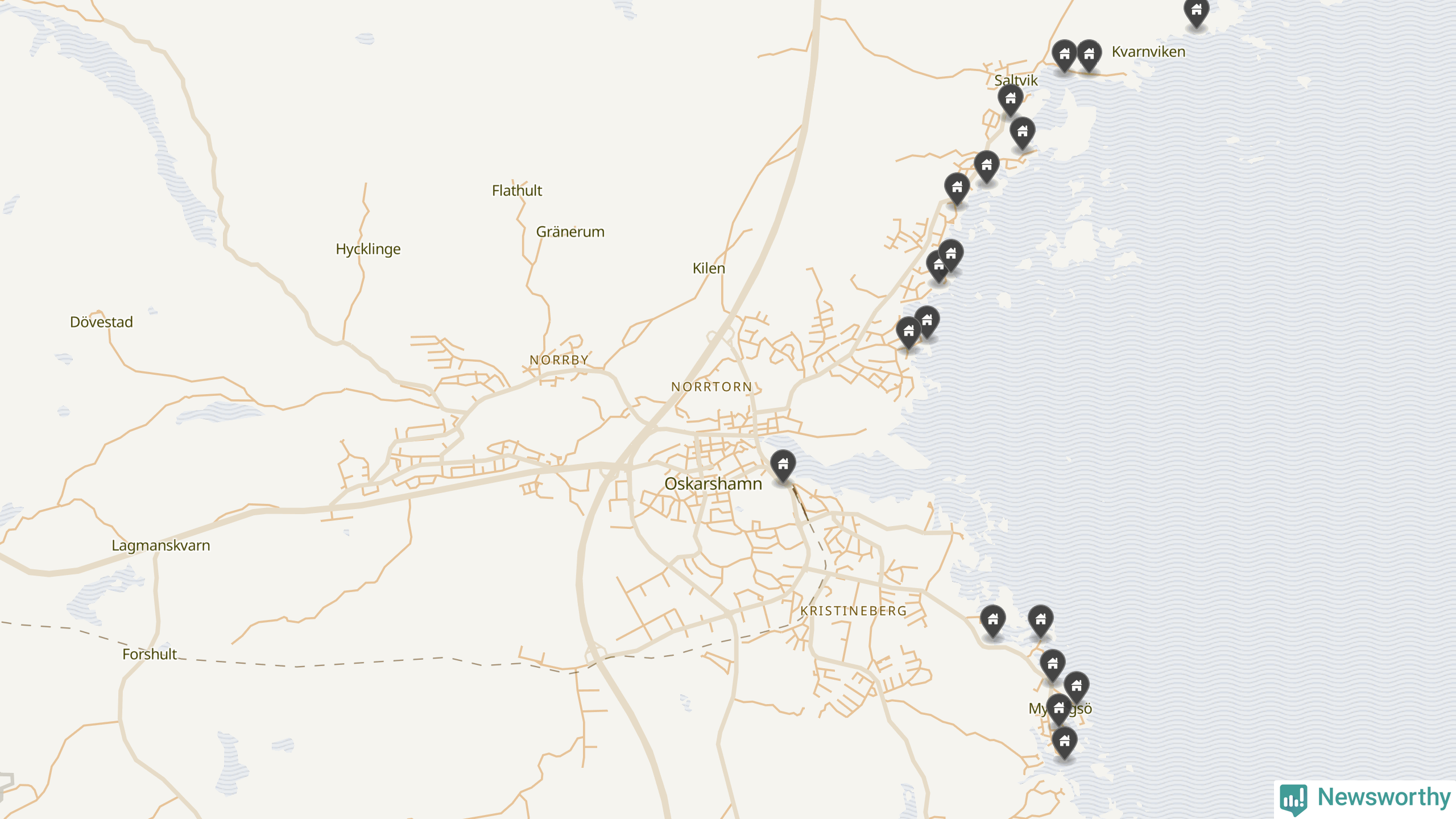 De 100 högst taxerade småhusfastigheterna i Oskarshamn har ett snittvärde på 5,4 miljoner kronor, vilket är något lägre än snittet för alla kommuners 100 högst taxerade småhus. Det visar Newsworthys genomgång av kommunernas högst taxerade småhusfastigheter, som sammanställts med hjälp av data från The intelligence company.