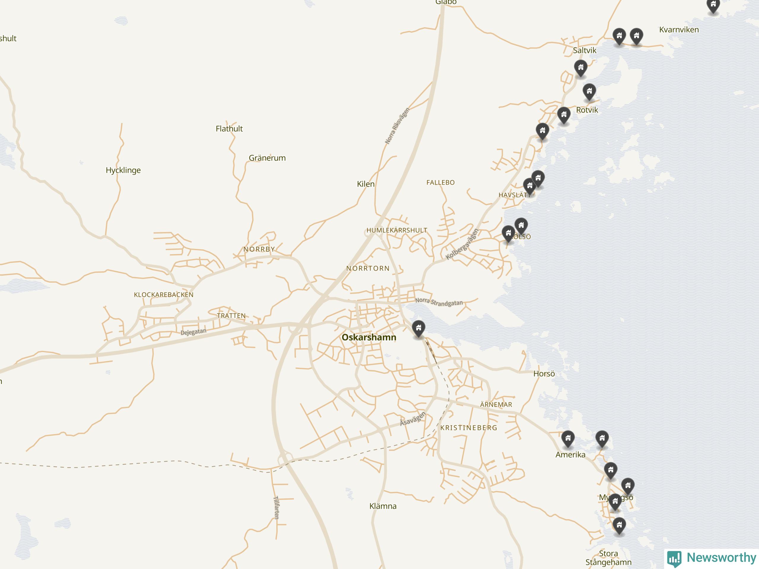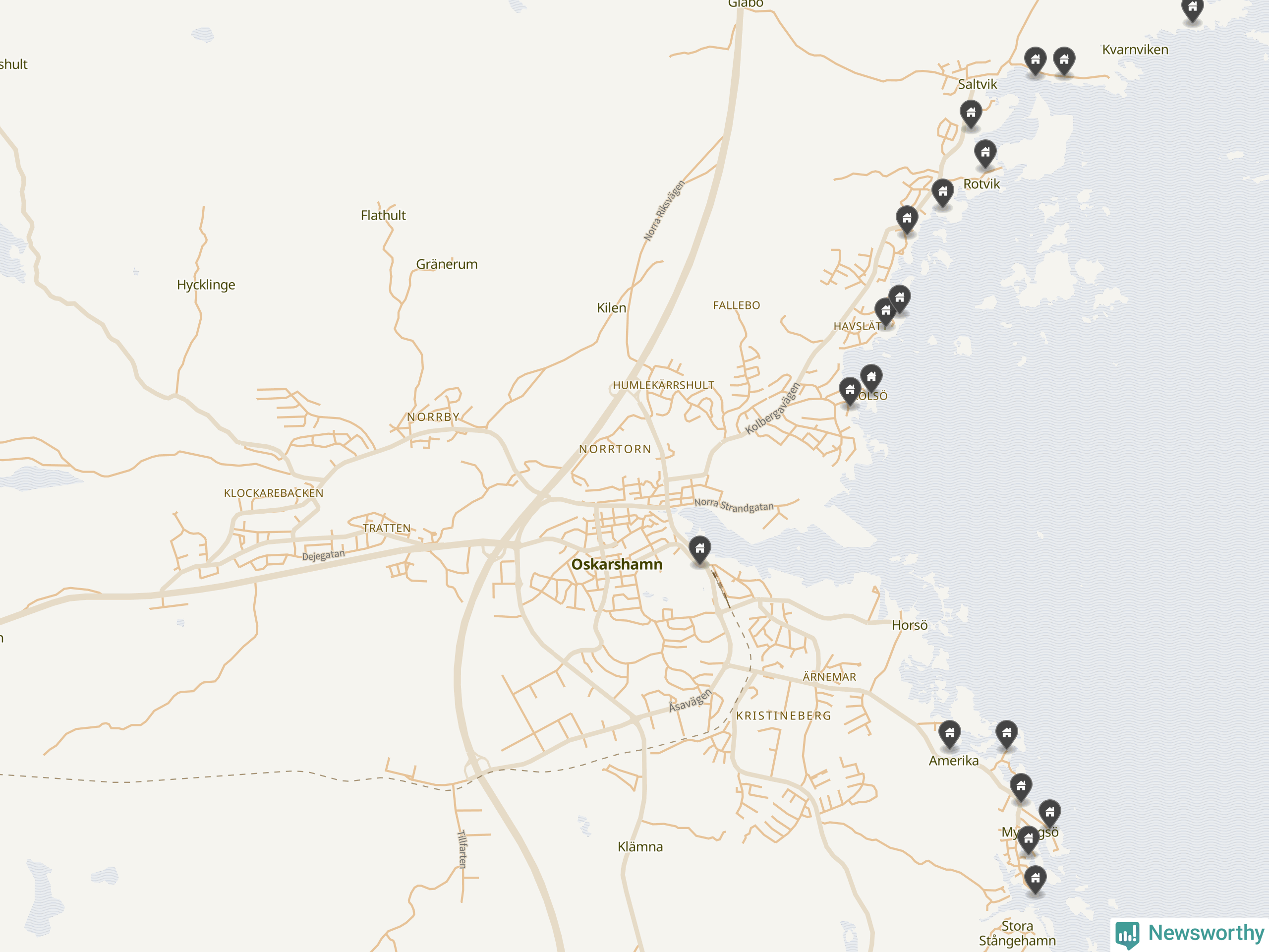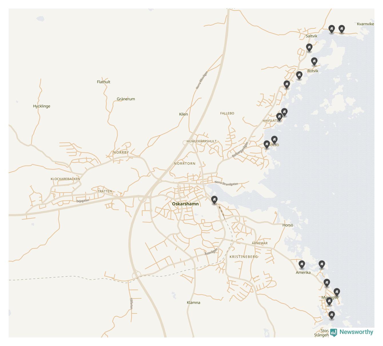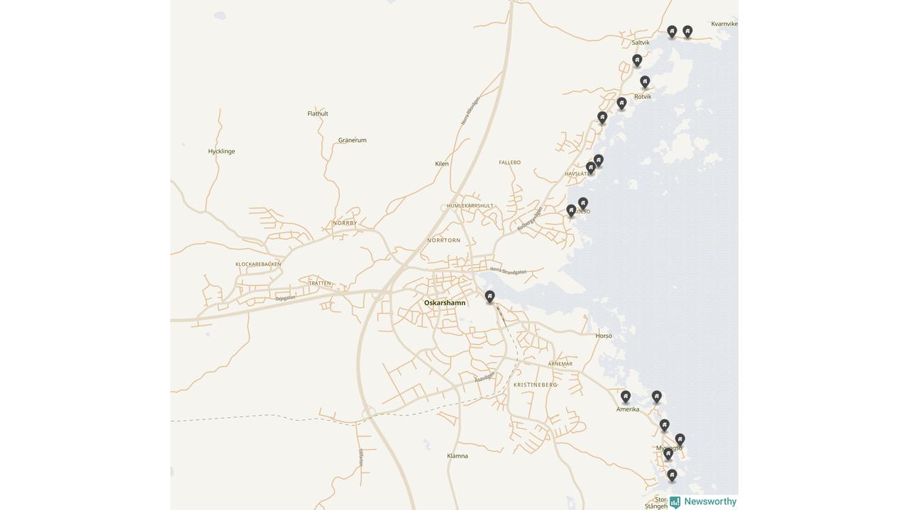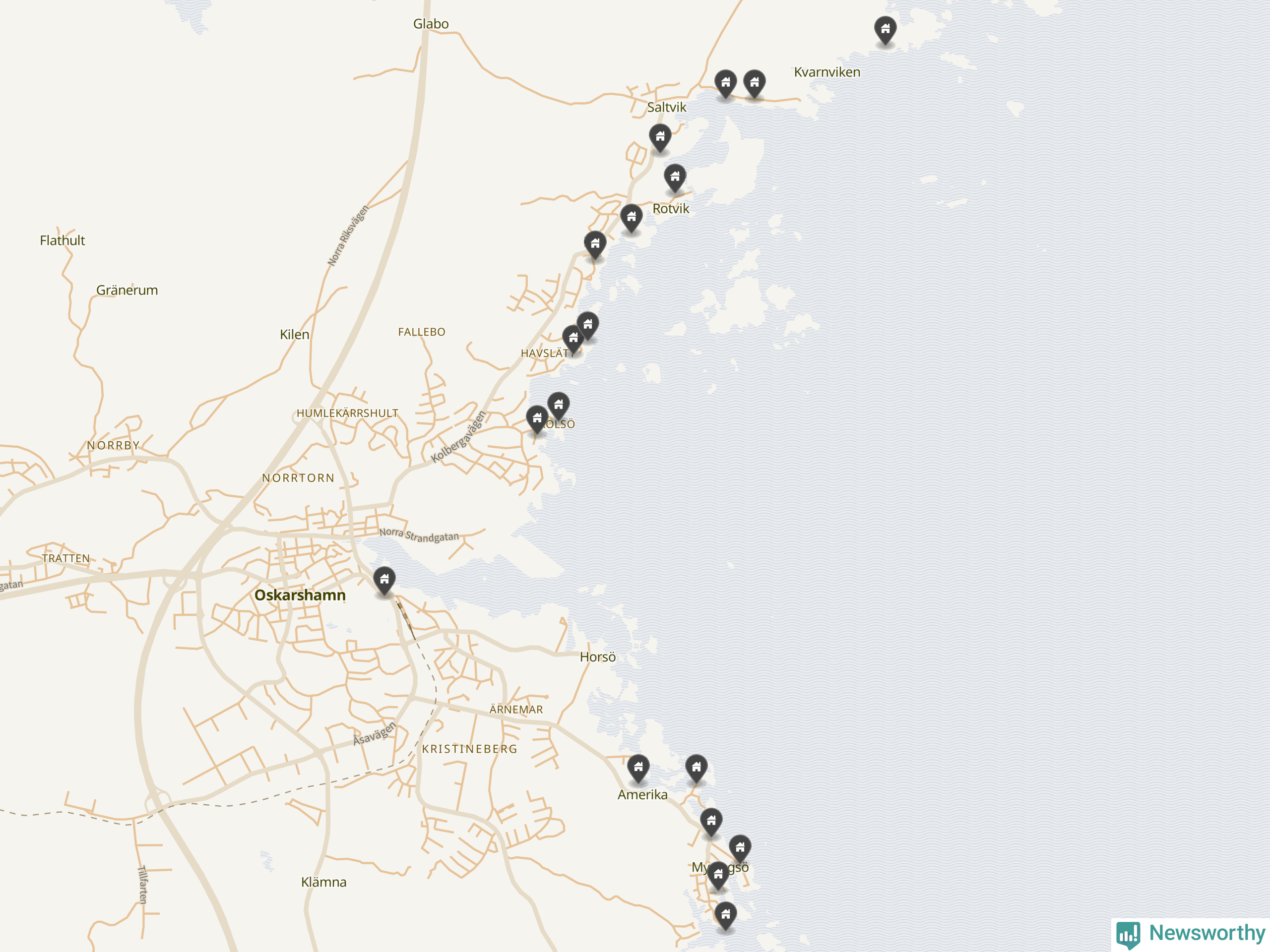 De 100 högst taxerade småhusfastigheterna i Oskarshamn har ett snittvärde på 5,4 miljoner kronor, vilket är något lägre än snittet för alla kommuners 100 högst taxerade småhus. Det visar Newsworthys genomgång av kommunernas högst taxerade småhusfastigheter, som sammanställts med hjälp av data från The intelligence company.