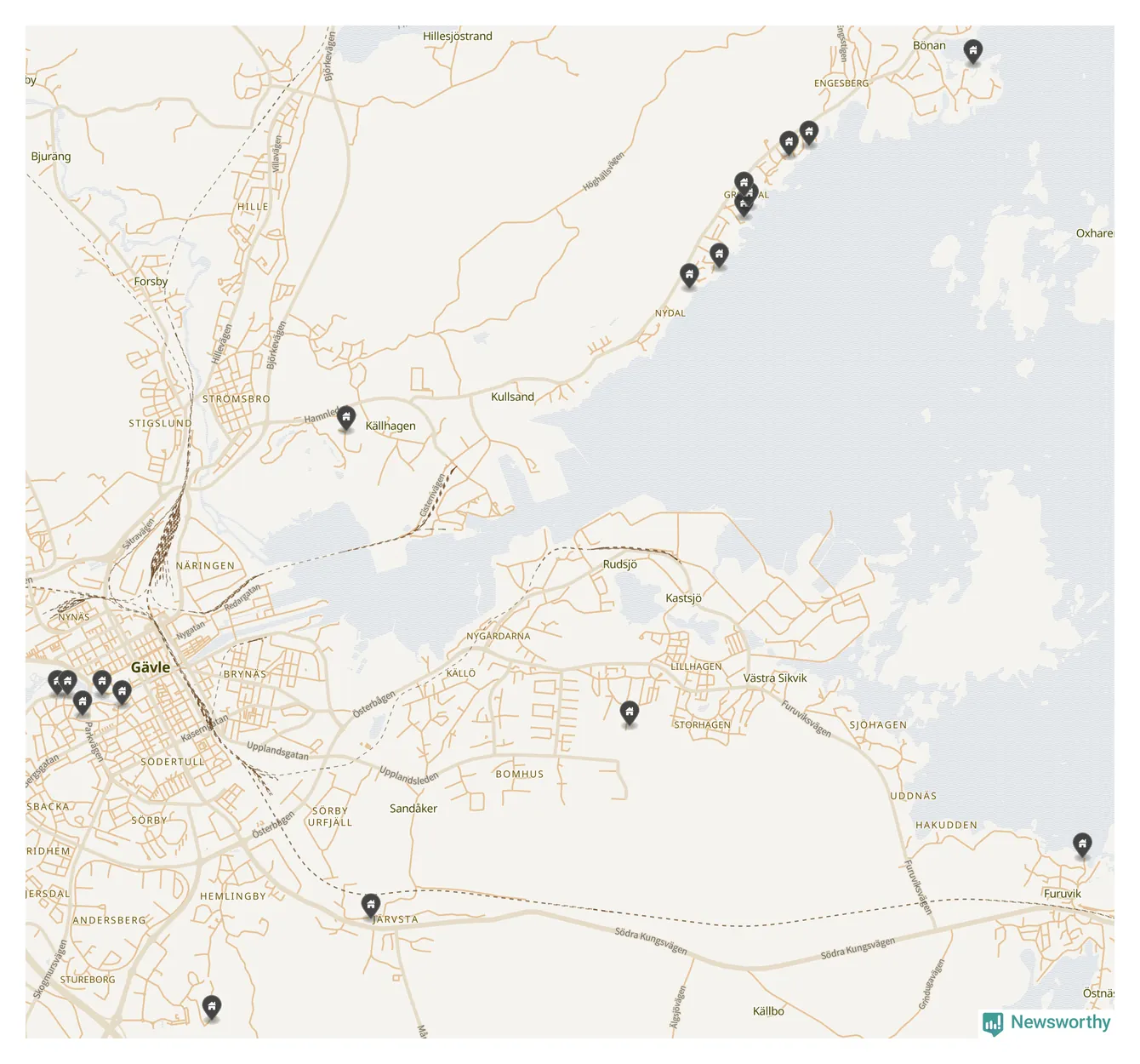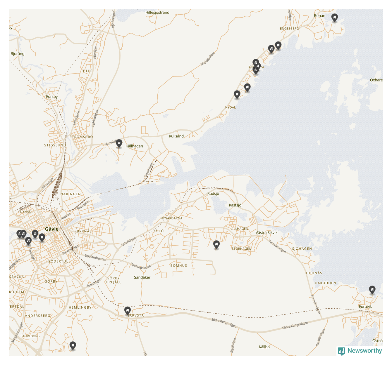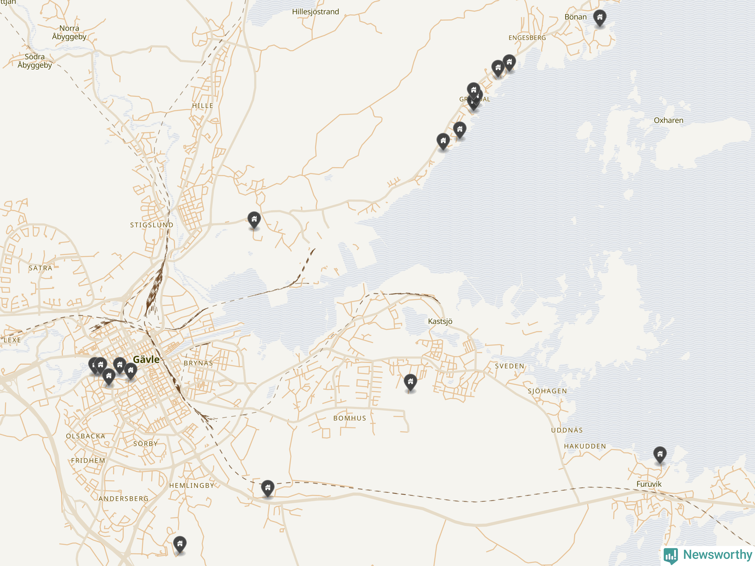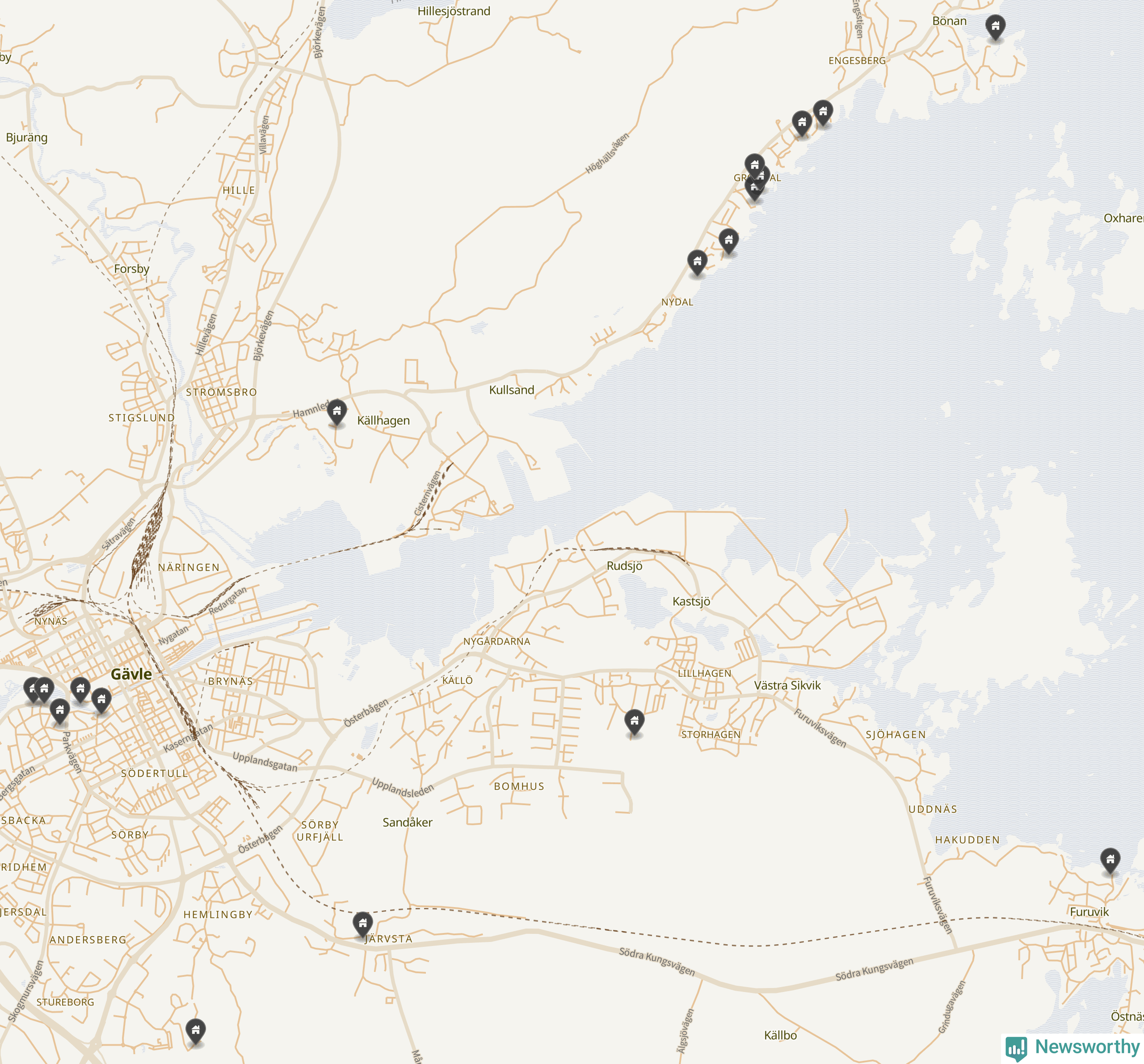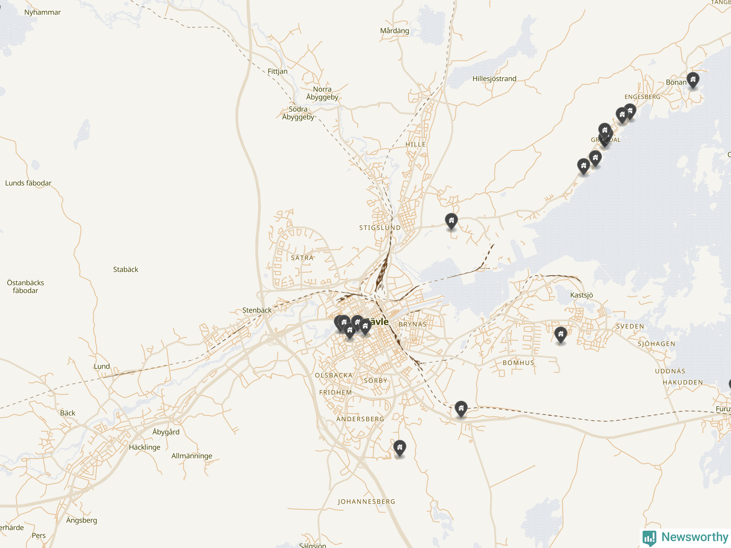 De 100 högst taxerade småhusfastigheterna i Gävle har ett snittvärde på 8,1 miljoner kronor, vilket är omkring två miljoner högre än snittet för alla kommuners 100 högst taxerade småhus. Det visar Newsworthys genomgång av kommunernas högst taxerade småhusfastigheter, som sammanställts med hjälp av data från The intelligence company.
