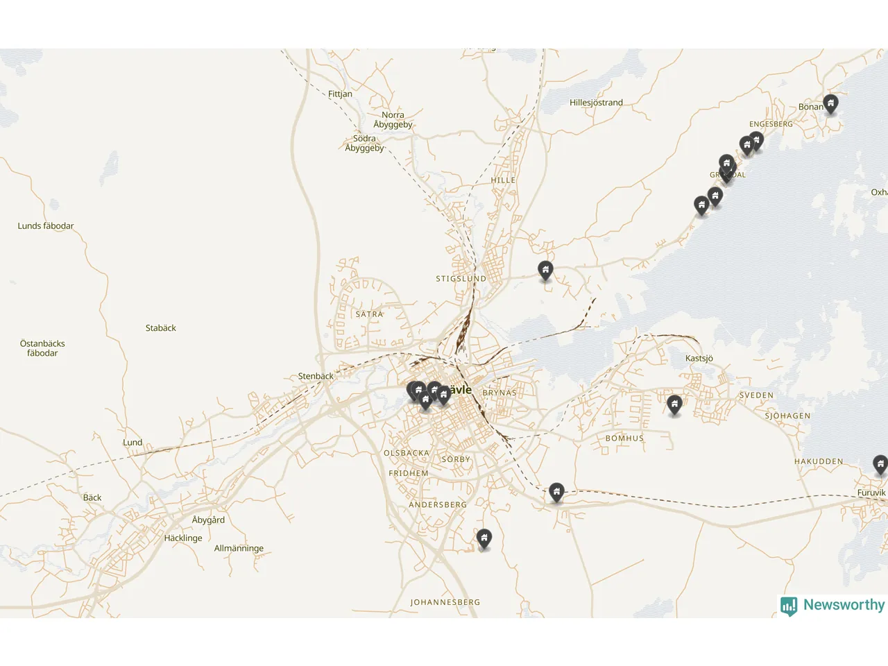 Newsworthy är en nyhetssajt som gör lokal journalistik baserat på data. Vi är datajournalister som analyserar och tolkar världen på siffror, snarare än tyckande.