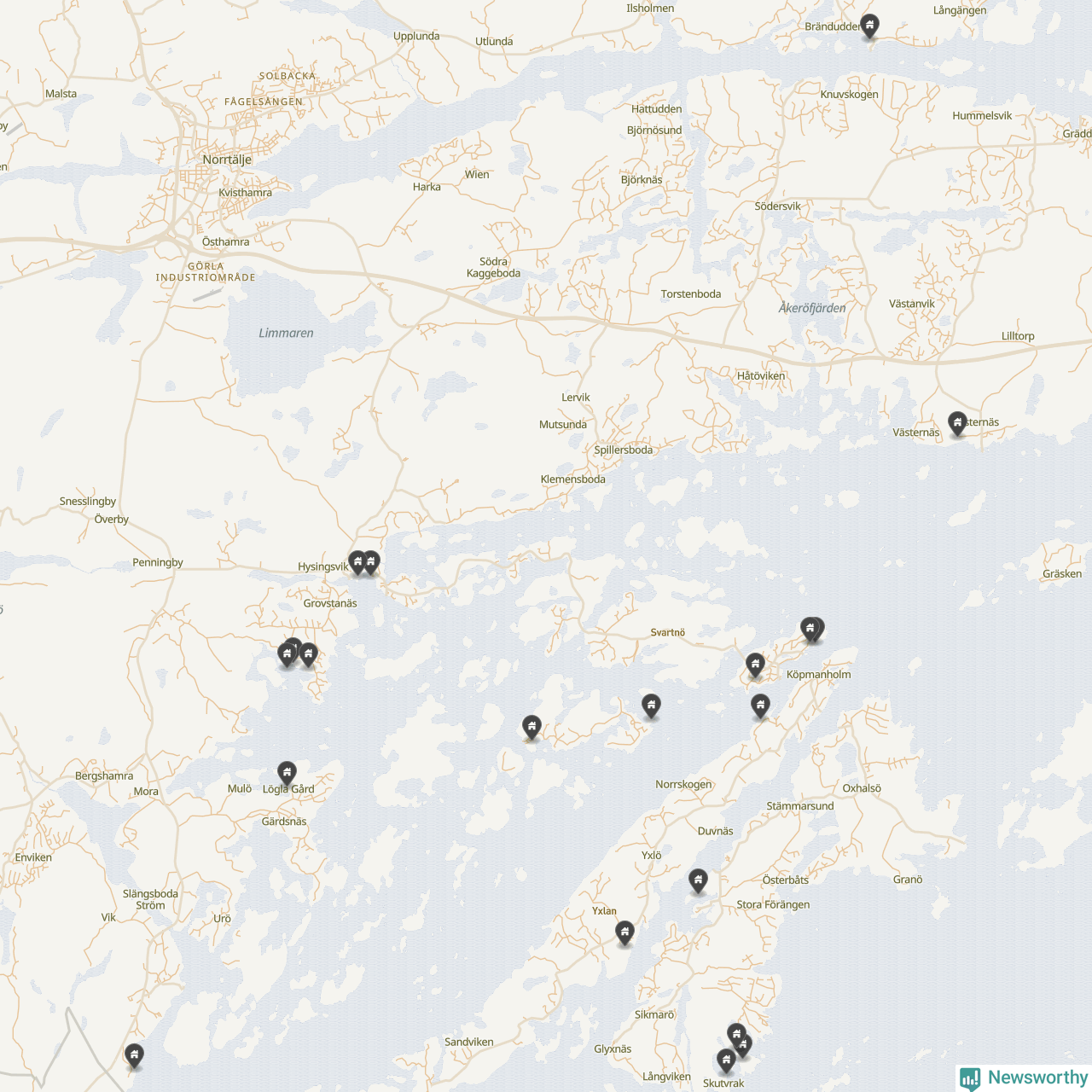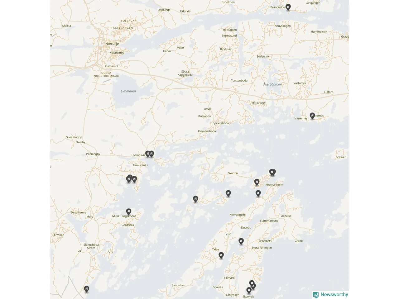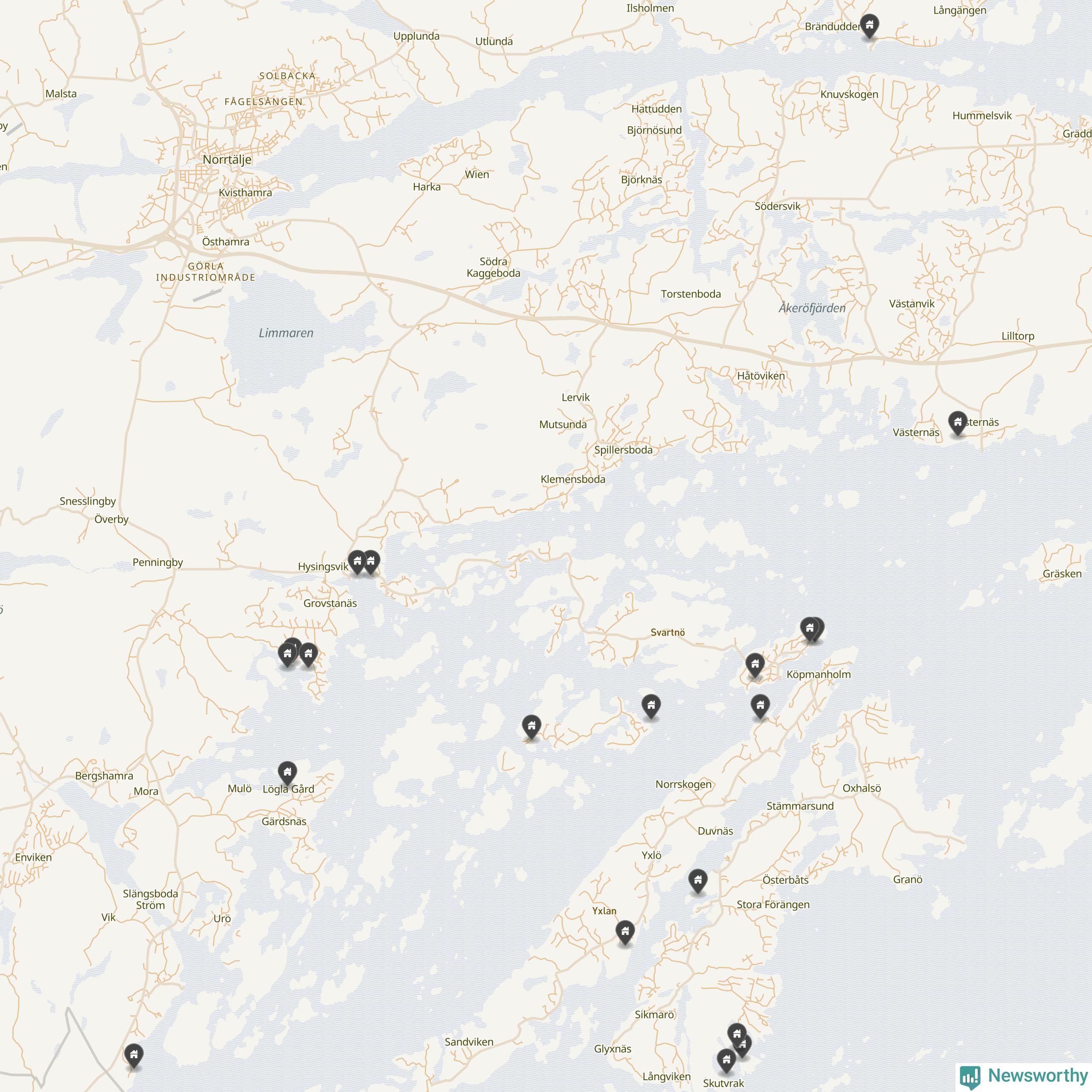 2 | Norrtälje Blidö 1:385 | Borgövägen 27 m.fl. | 19,1 miljoner | 13 468 m² | Visa |