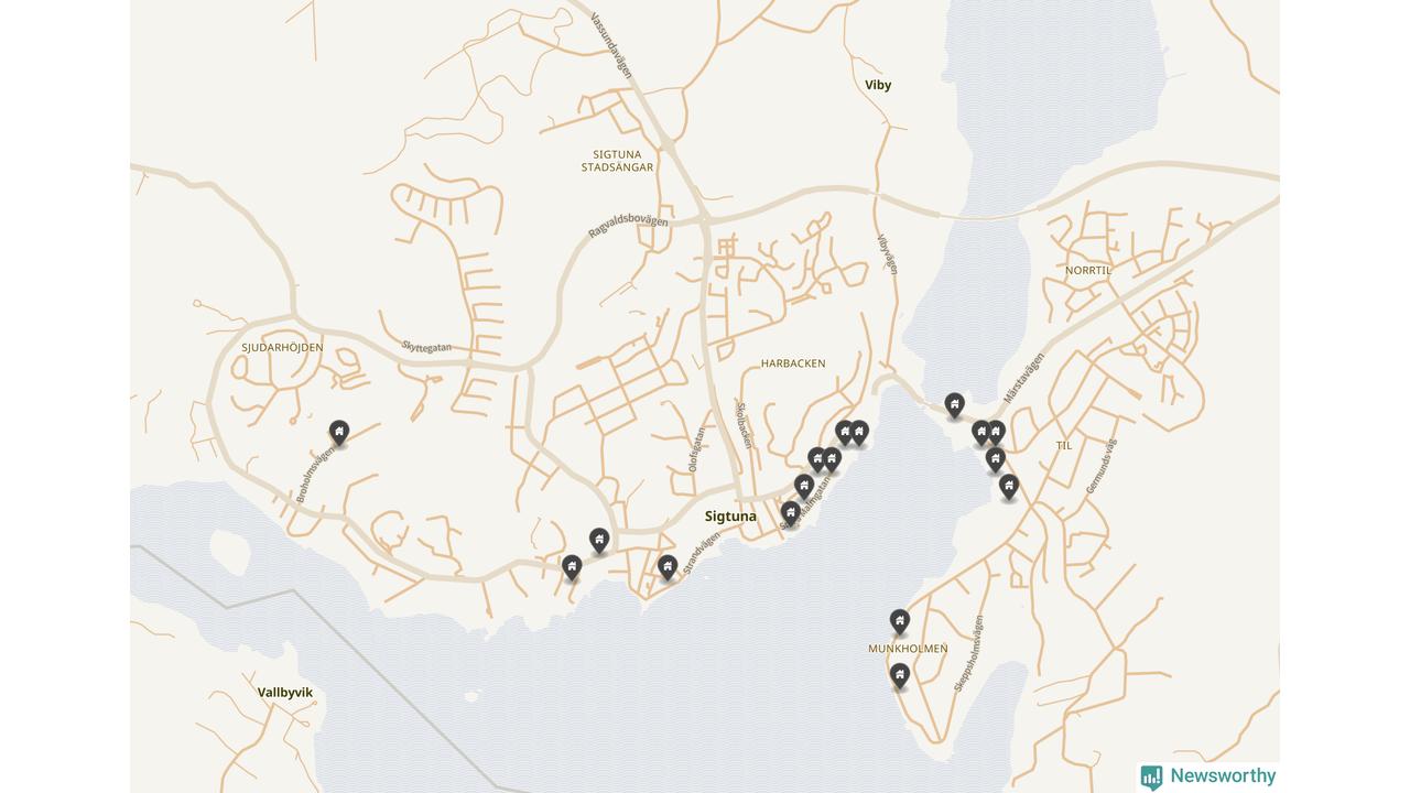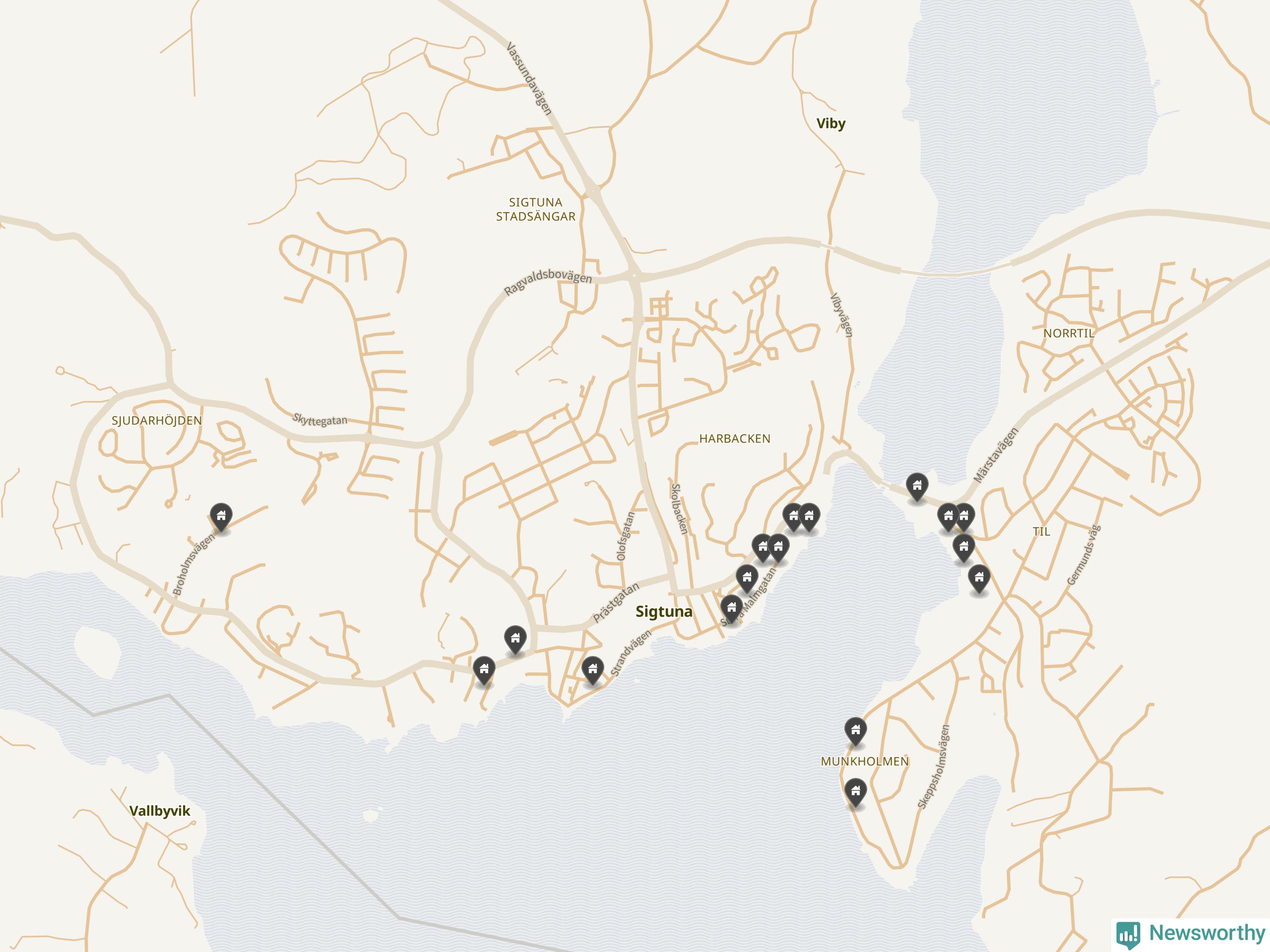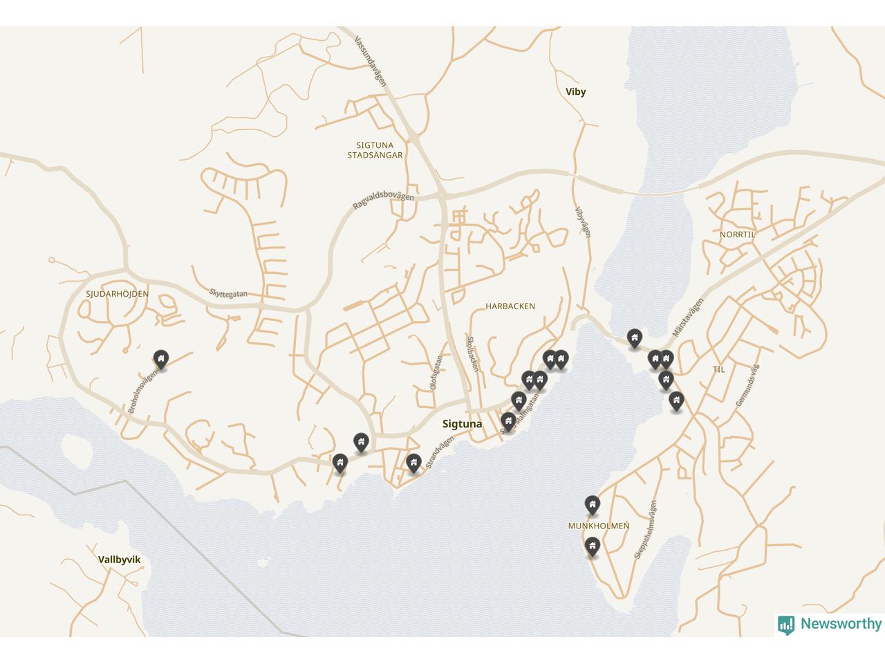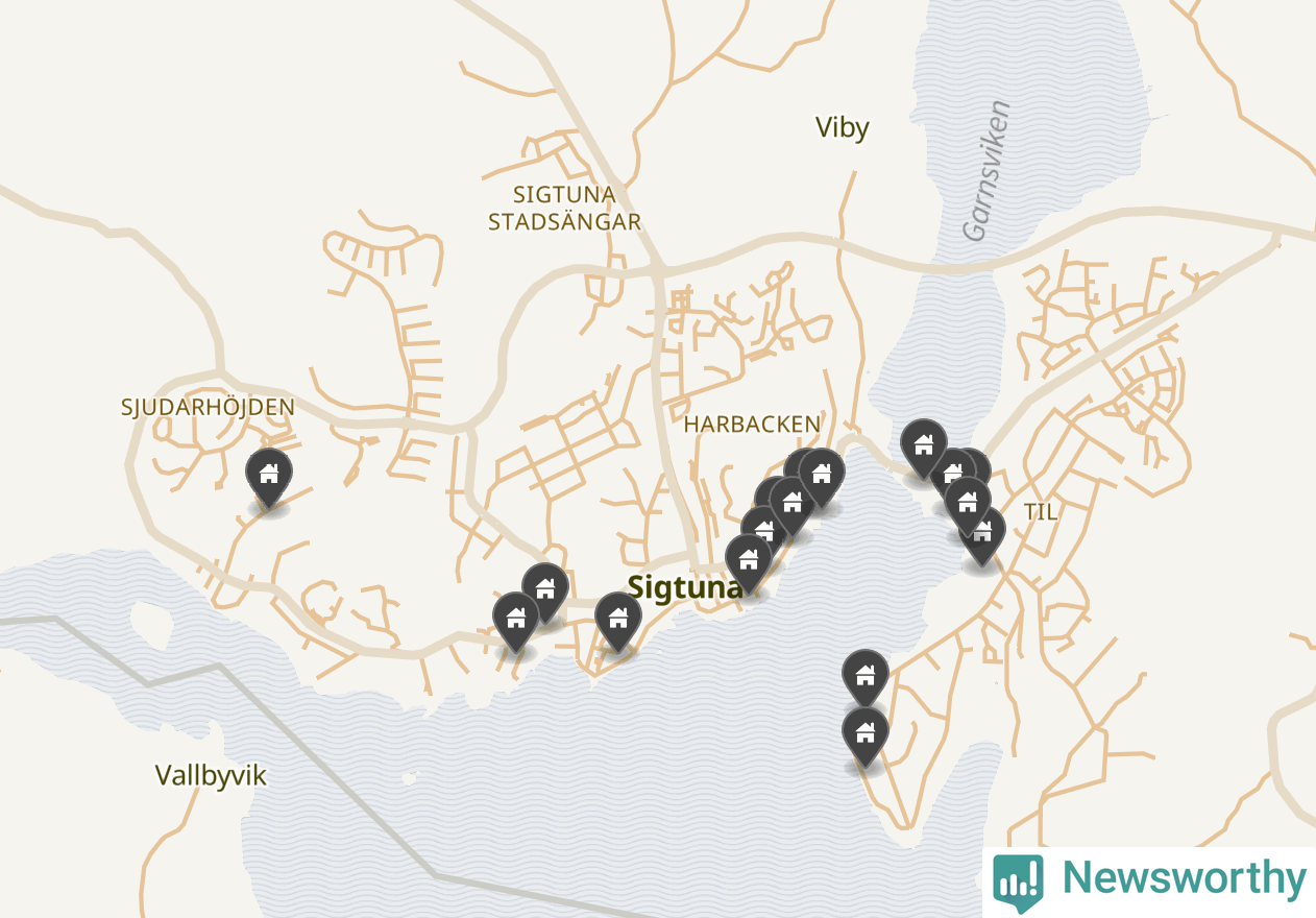 De 100 högst taxerade småhusfastigheterna i Sigtuna har ett snittvärde på 11,6 miljoner kronor, vilket är omkring sex miljoner högre än snittet för alla kommuners 100 högst taxerade småhus. Det visar Newsworthys genomgång av kommunernas högst taxerade småhusfastigheter, som sammanställts med hjälp av data från The intelligence company.
