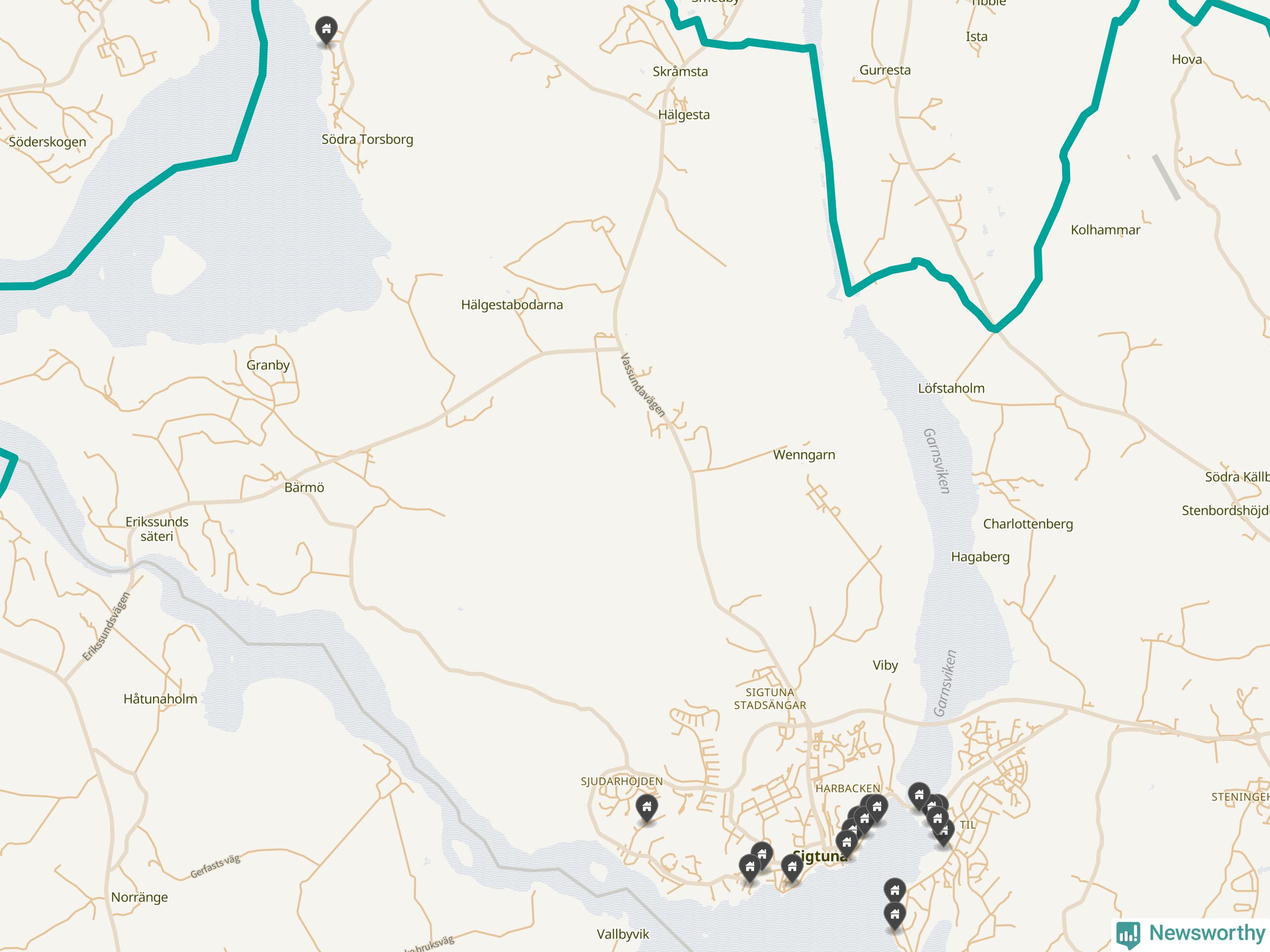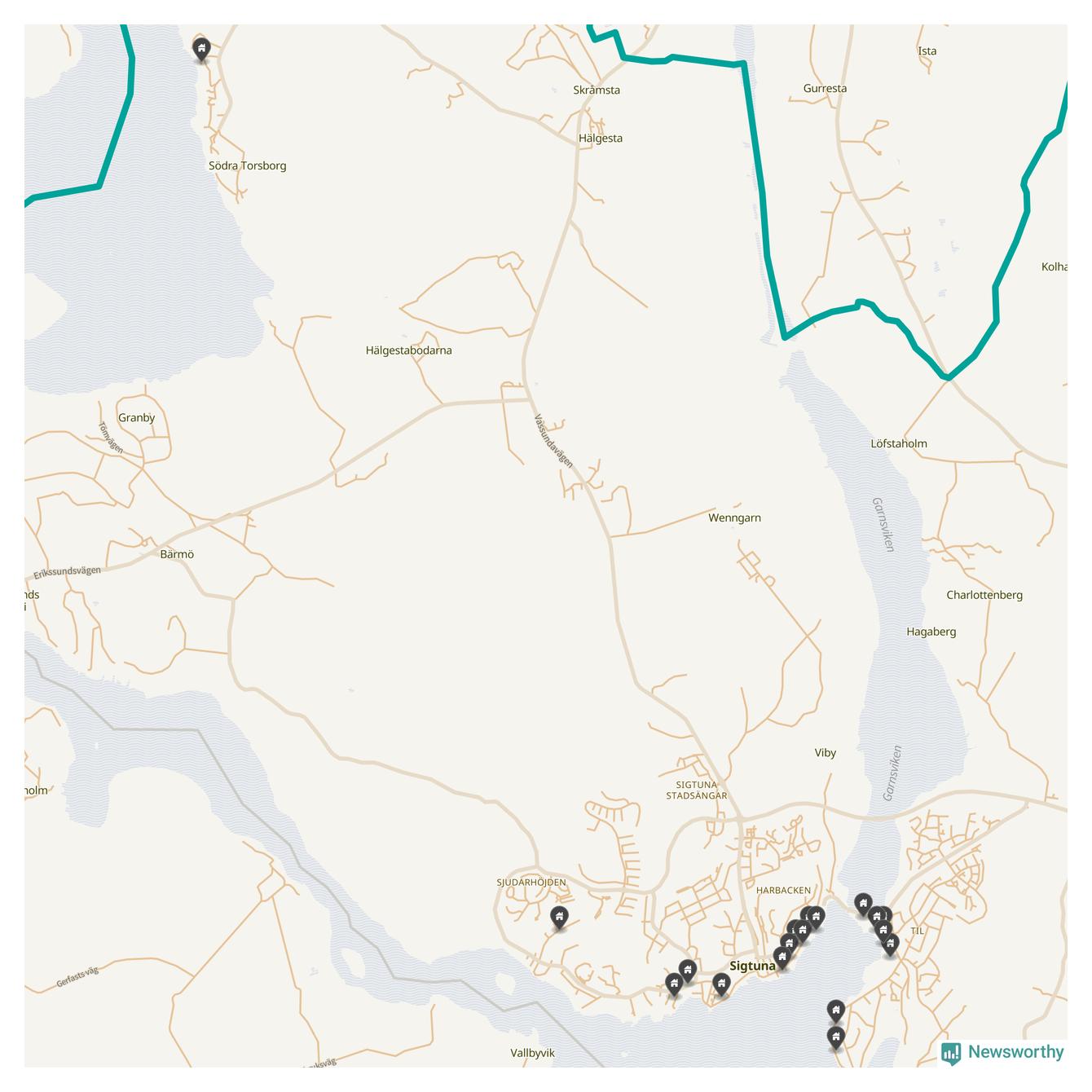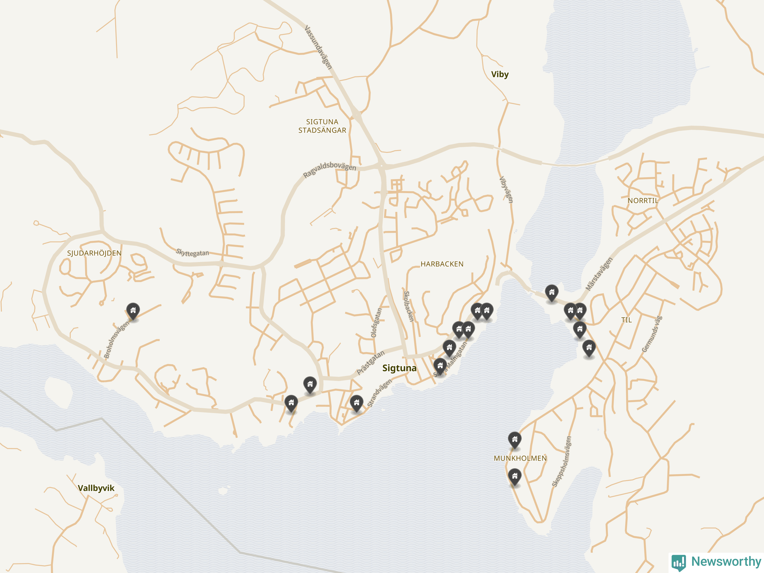 De 100 högst taxerade småhusfastigheterna i Sigtuna har ett snittvärde på 11,6 miljoner kronor, vilket är omkring sex miljoner högre än snittet för alla kommuners 100 högst taxerade småhus. Det visar Newsworthys genomgång av kommunernas högst taxerade småhusfastigheter, som sammanställts med hjälp av data från The intelligence company.
