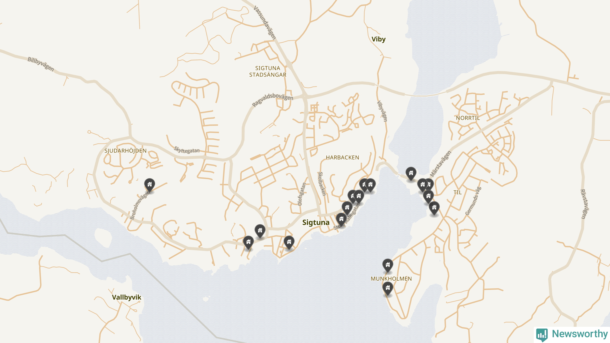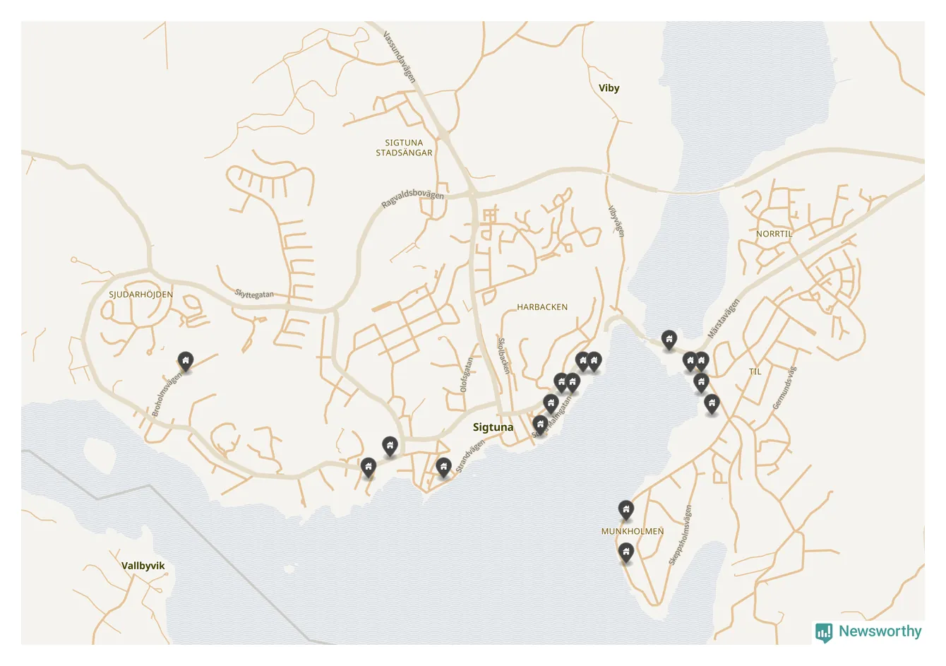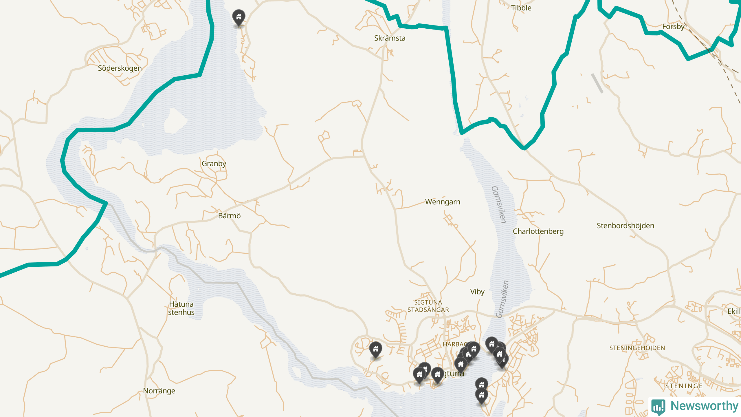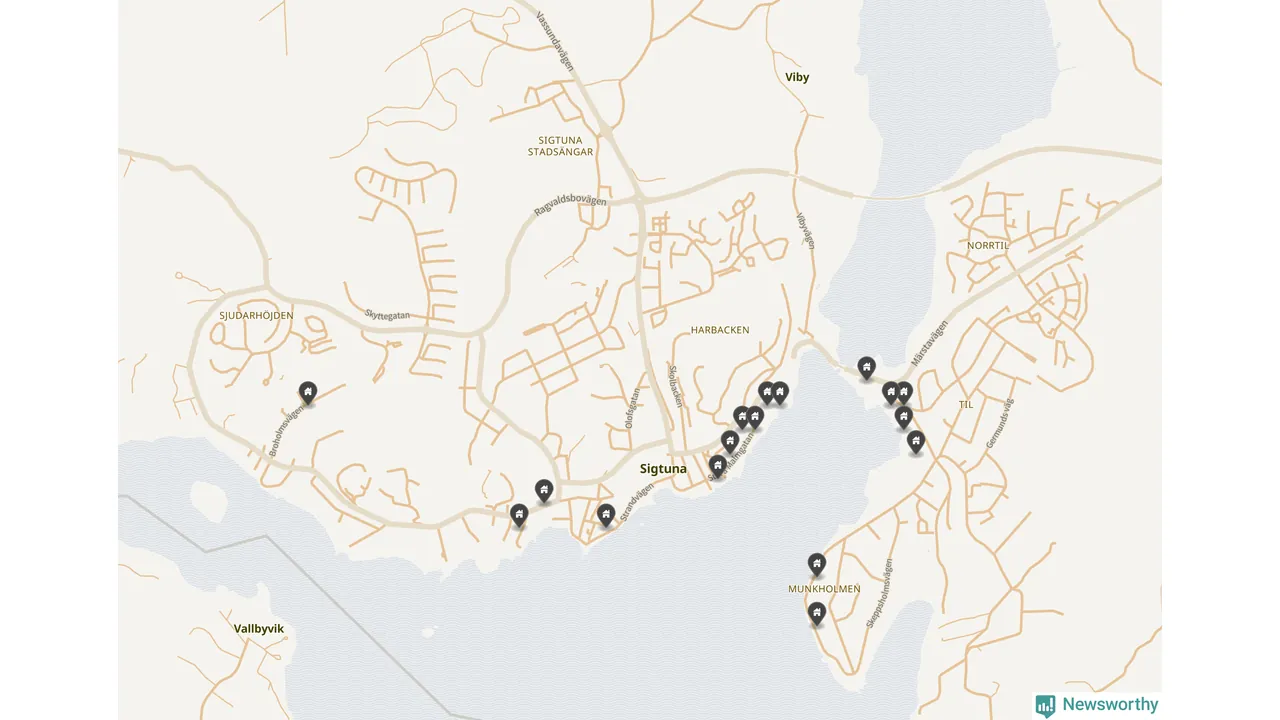 De 100 högst taxerade småhusfastigheterna i Sigtuna har ett snittvärde på 11,6 miljoner kronor, vilket är omkring sex miljoner högre än snittet för alla kommuners 100 högst taxerade småhus. Det visar Newsworthys genomgång av kommunernas högst taxerade småhusfastigheter, som sammanställts med hjälp av data från The intelligence company.
