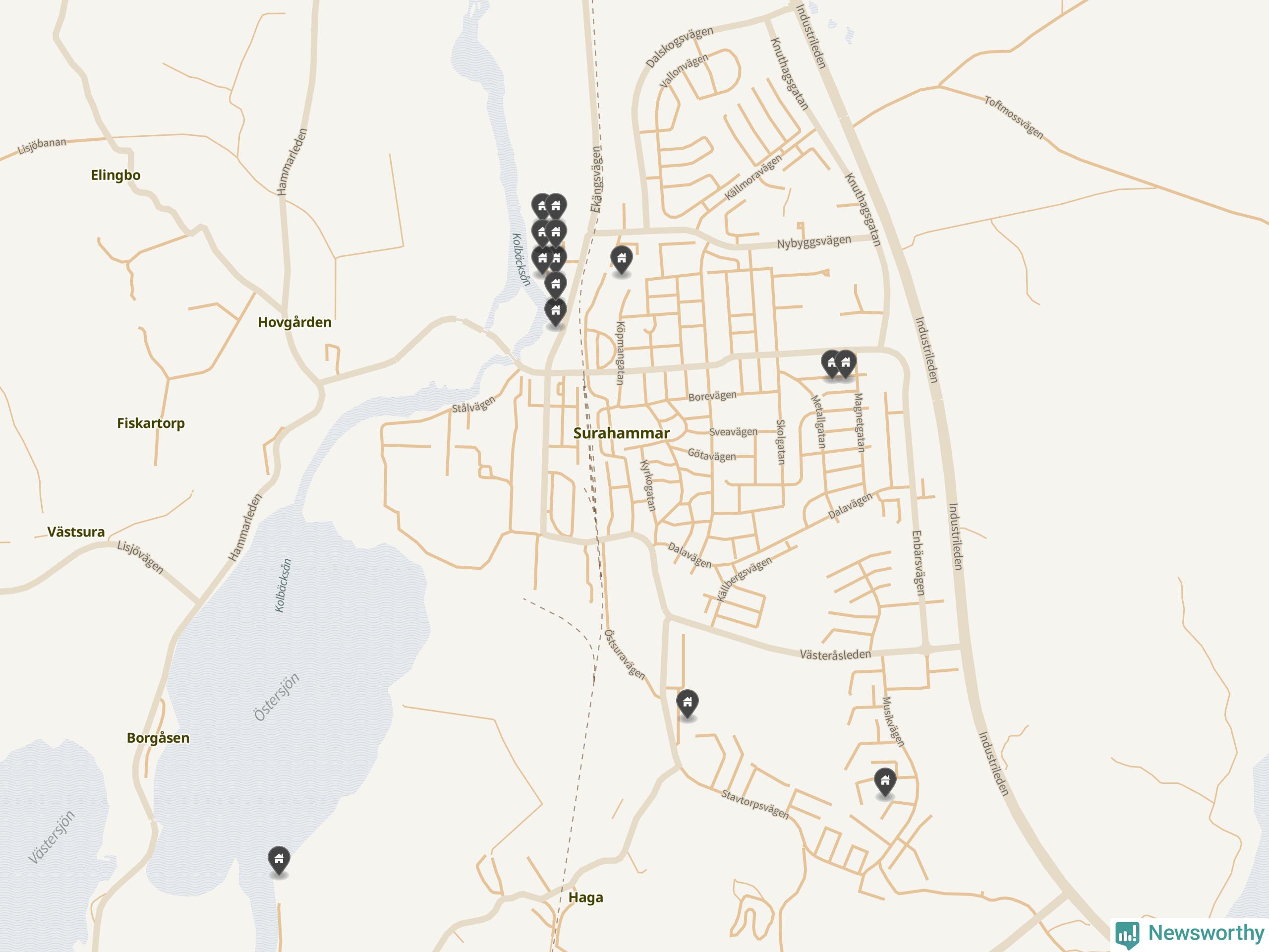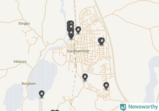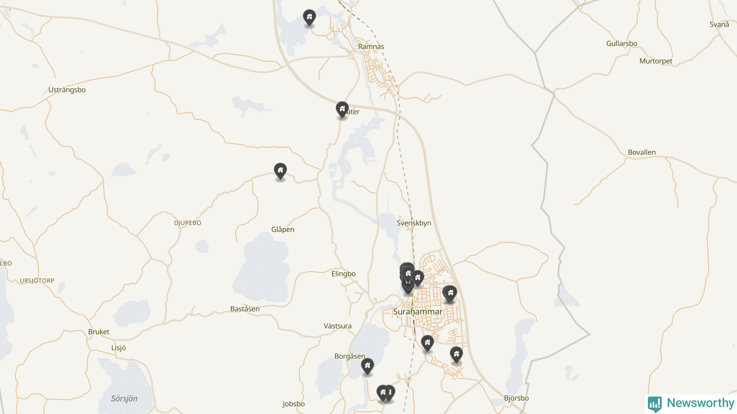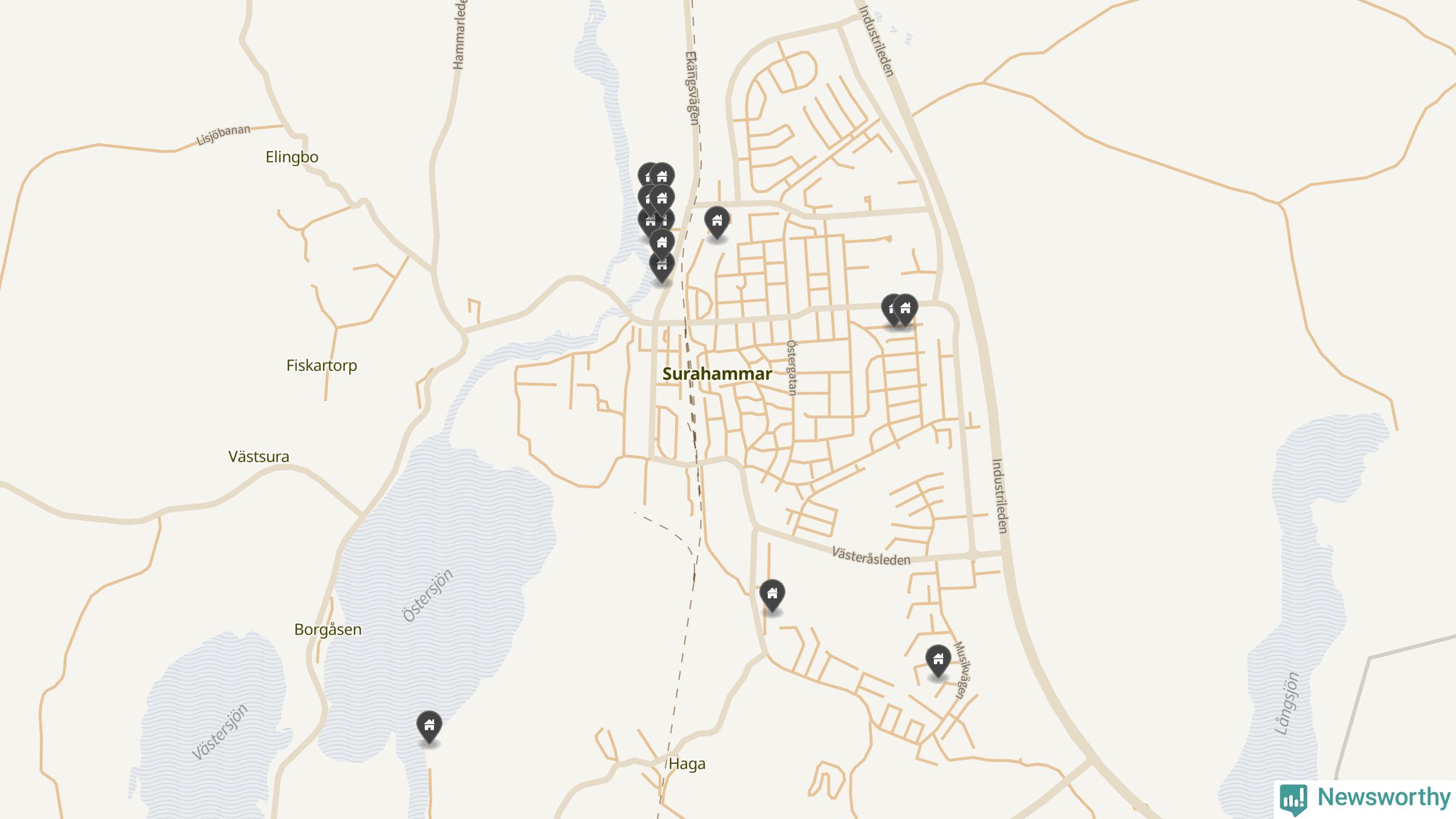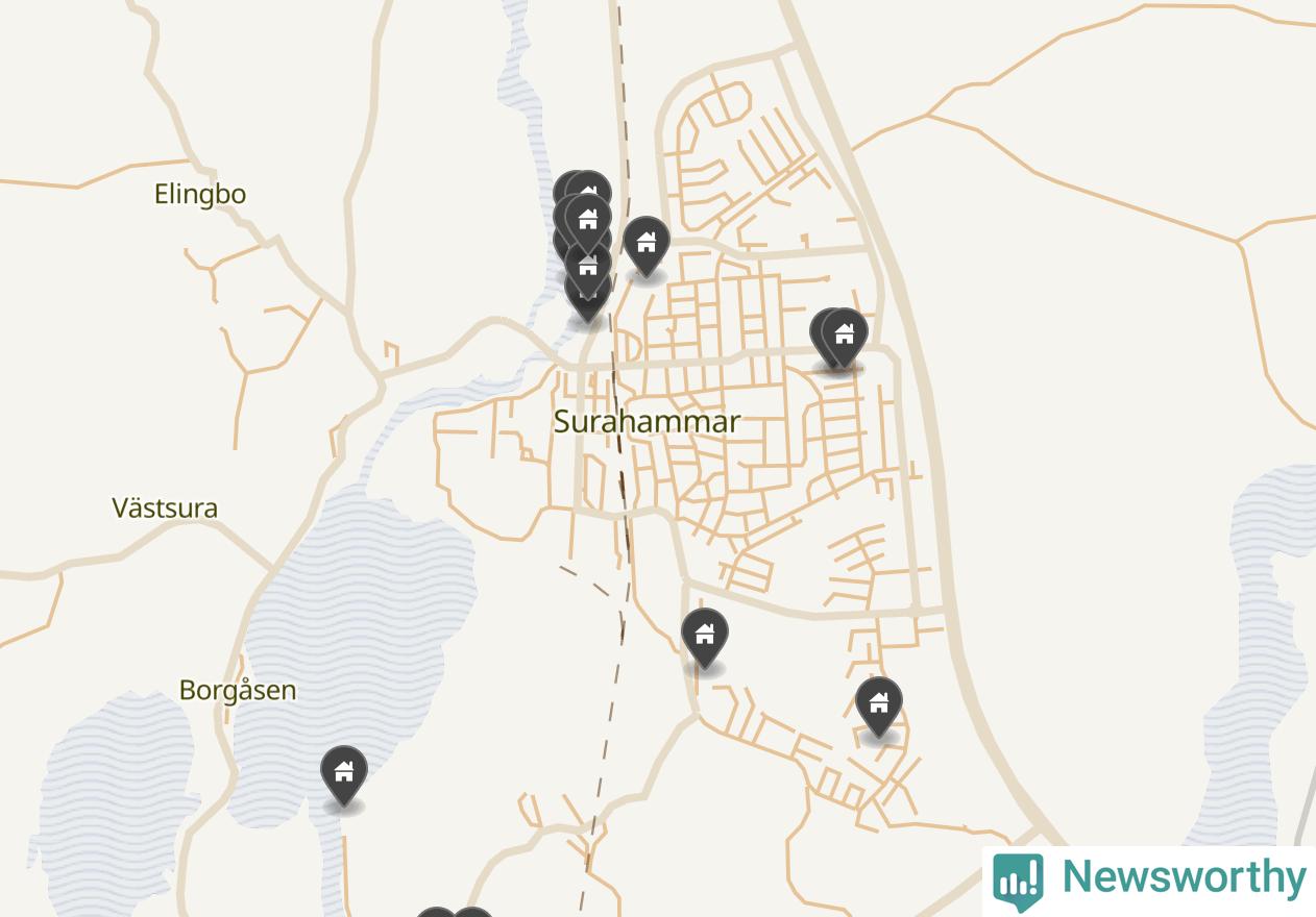 De 100 högst taxerade småhusfastigheterna i Surahammar har ett snittvärde på 2,8 miljoner kronor, vilket är omkring tre miljoner lägre än snittet för alla kommuners 100 högst taxerade småhus. Det visar Newsworthys genomgång av kommunernas högst taxerade småhusfastigheter, som sammanställts med hjälp av data från The intelligence company.