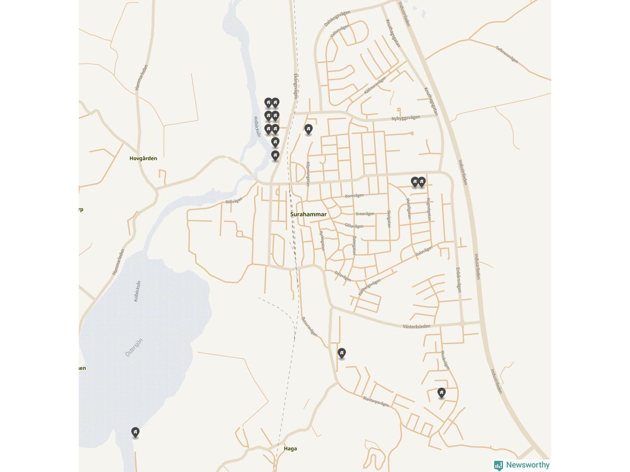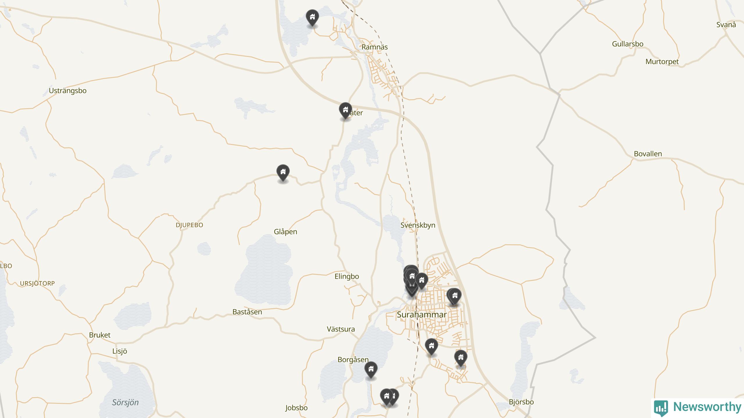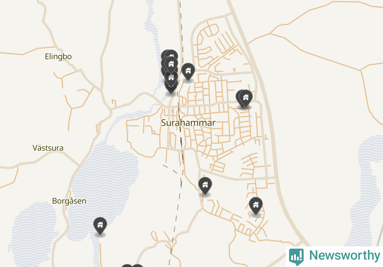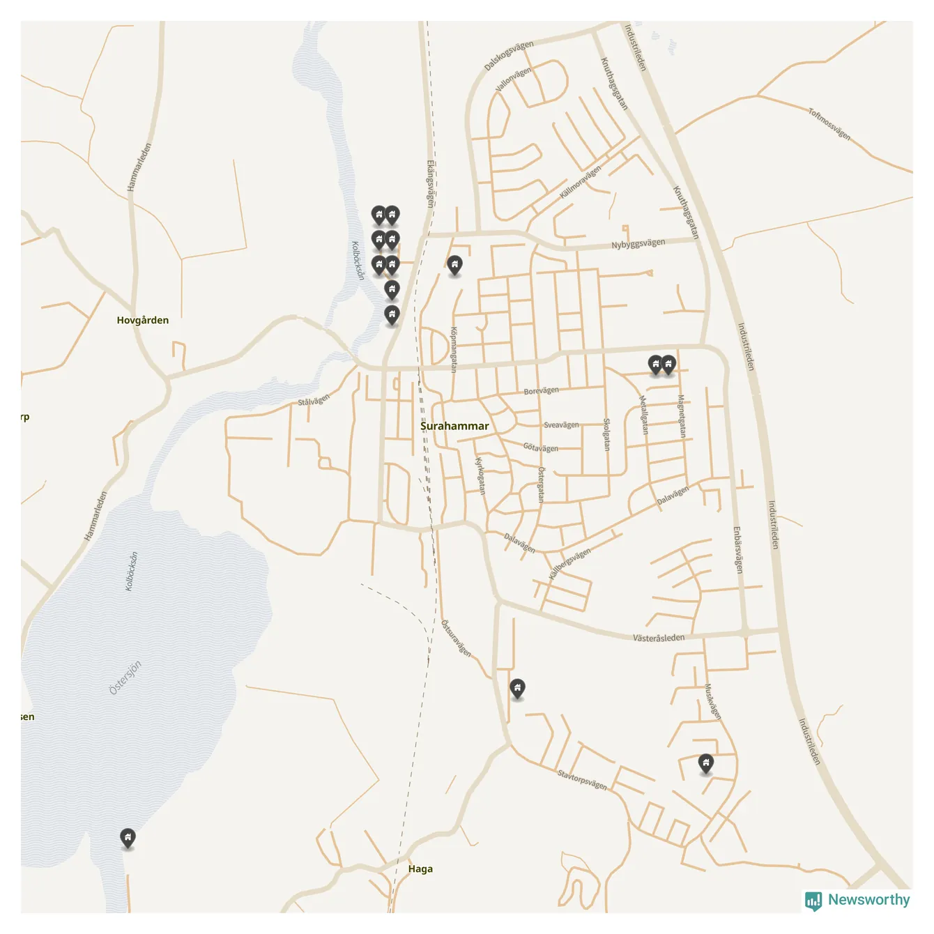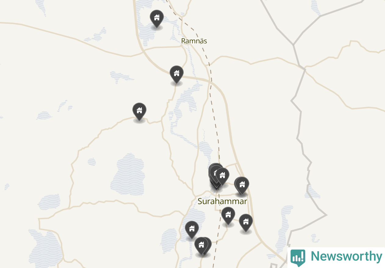 De 100 högst taxerade småhusfastigheterna i Surahammar har ett snittvärde på 2,8 miljoner kronor, vilket är omkring tre miljoner lägre än snittet för alla kommuners 100 högst taxerade småhus. Det visar Newsworthys genomgång av kommunernas högst taxerade småhusfastigheter, som sammanställts med hjälp av data från The intelligence company.