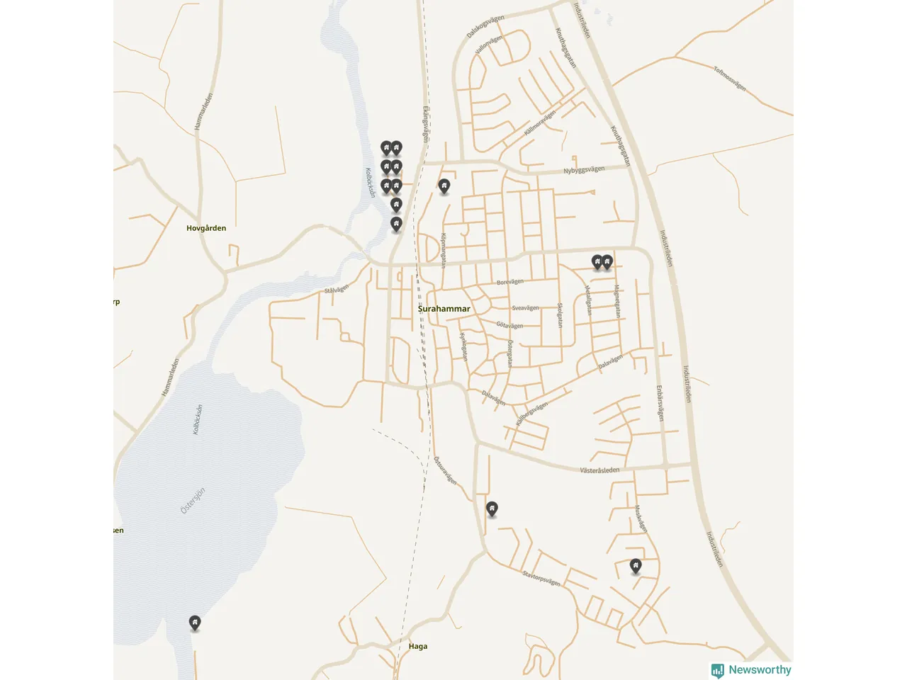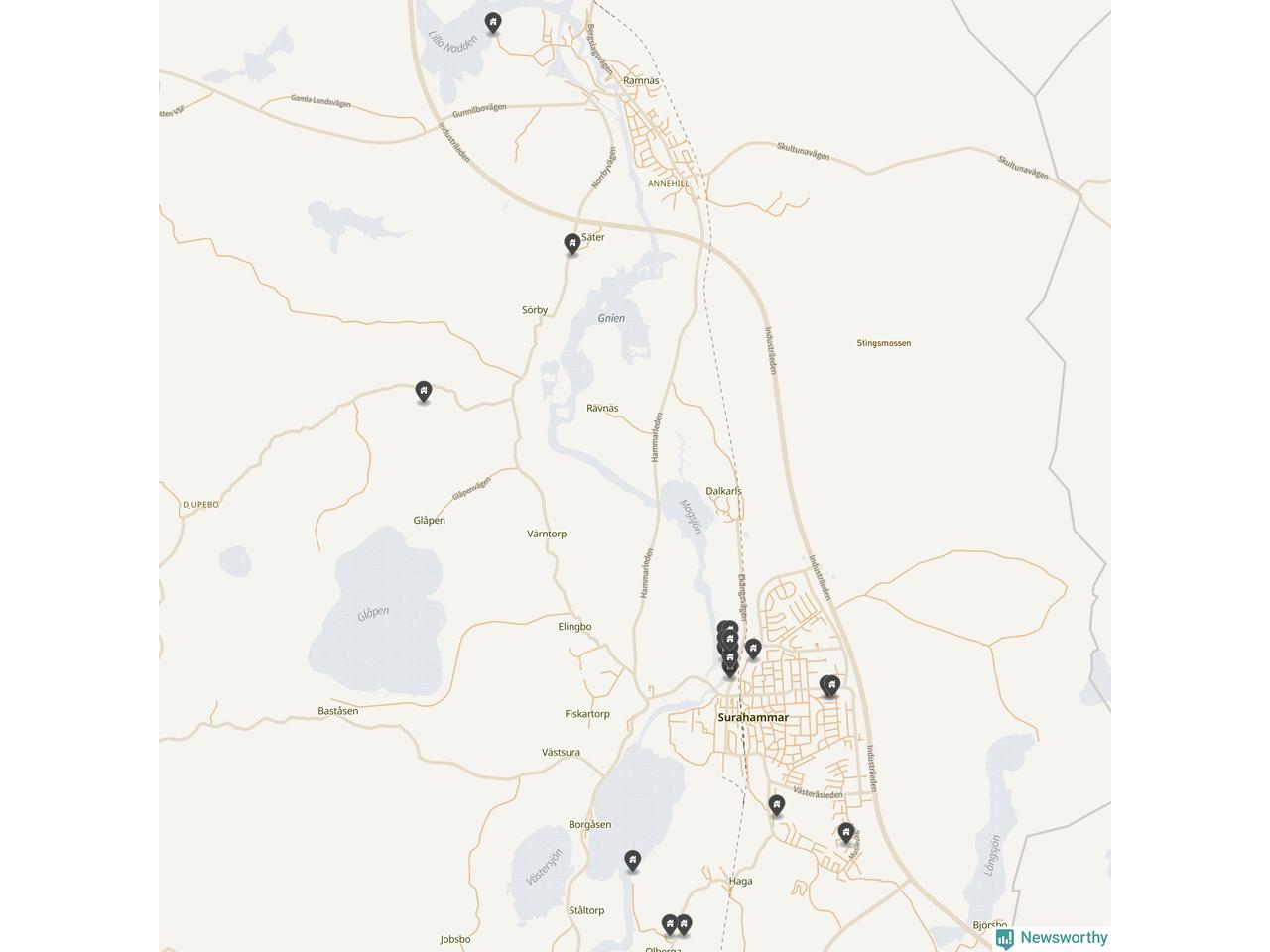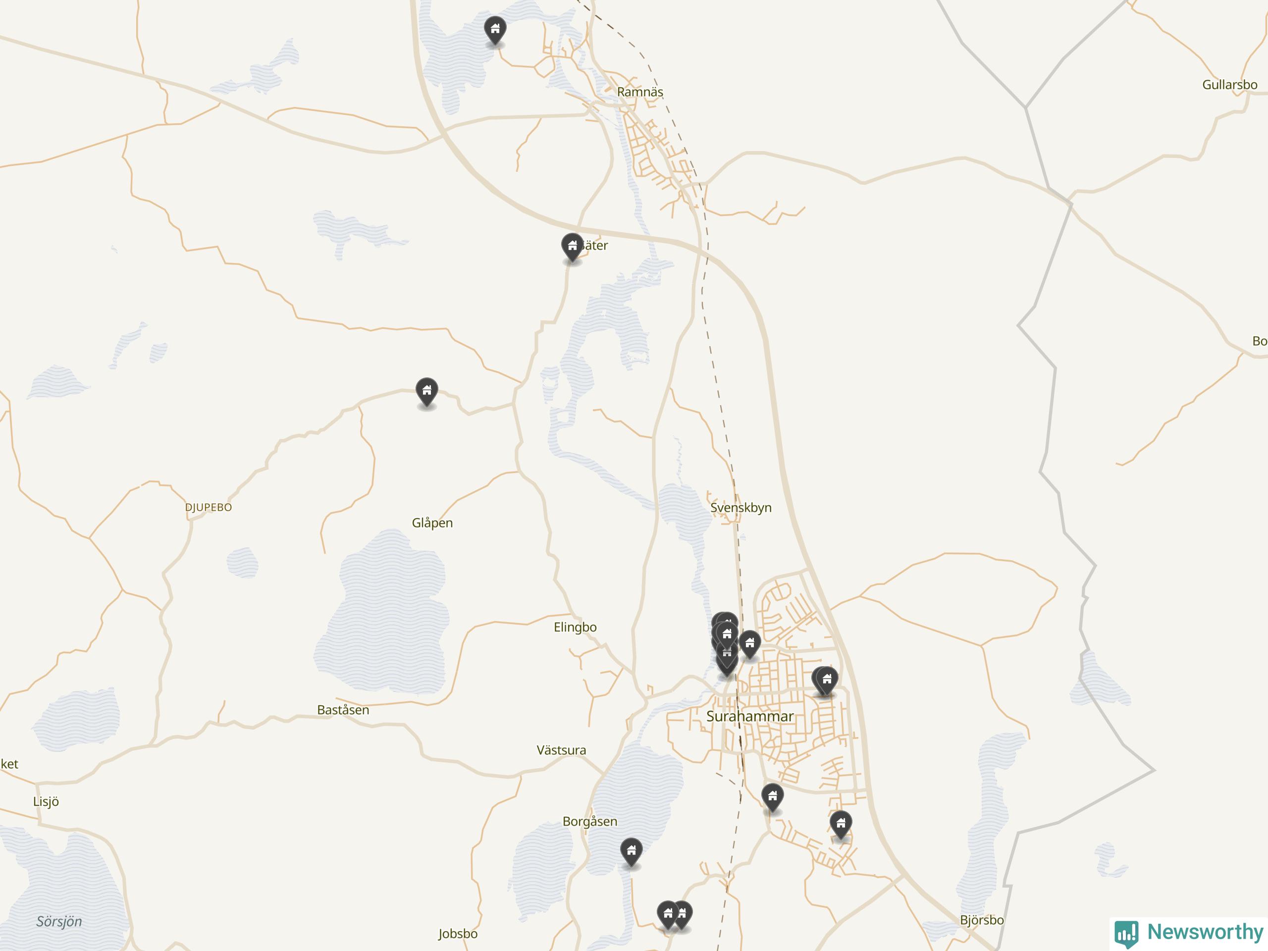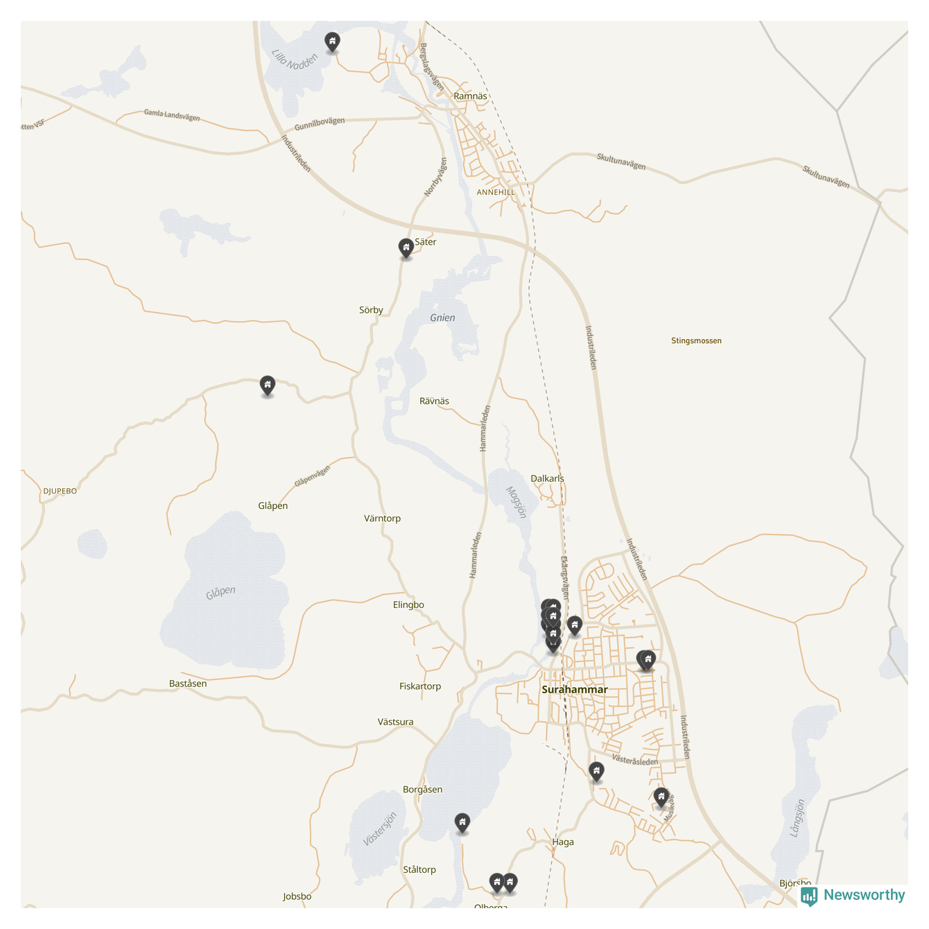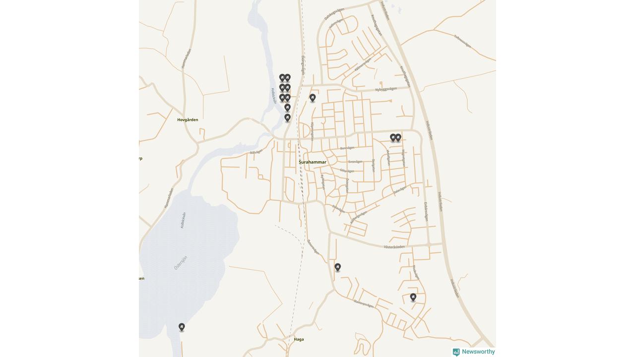 De 100 högst taxerade småhusfastigheterna i Surahammar har ett snittvärde på 2,8 miljoner kronor, vilket är omkring tre miljoner lägre än snittet för alla kommuners 100 högst taxerade småhus. Det visar Newsworthys genomgång av kommunernas högst taxerade småhusfastigheter, som sammanställts med hjälp av data från The intelligence company.