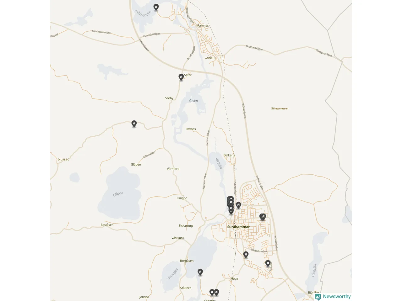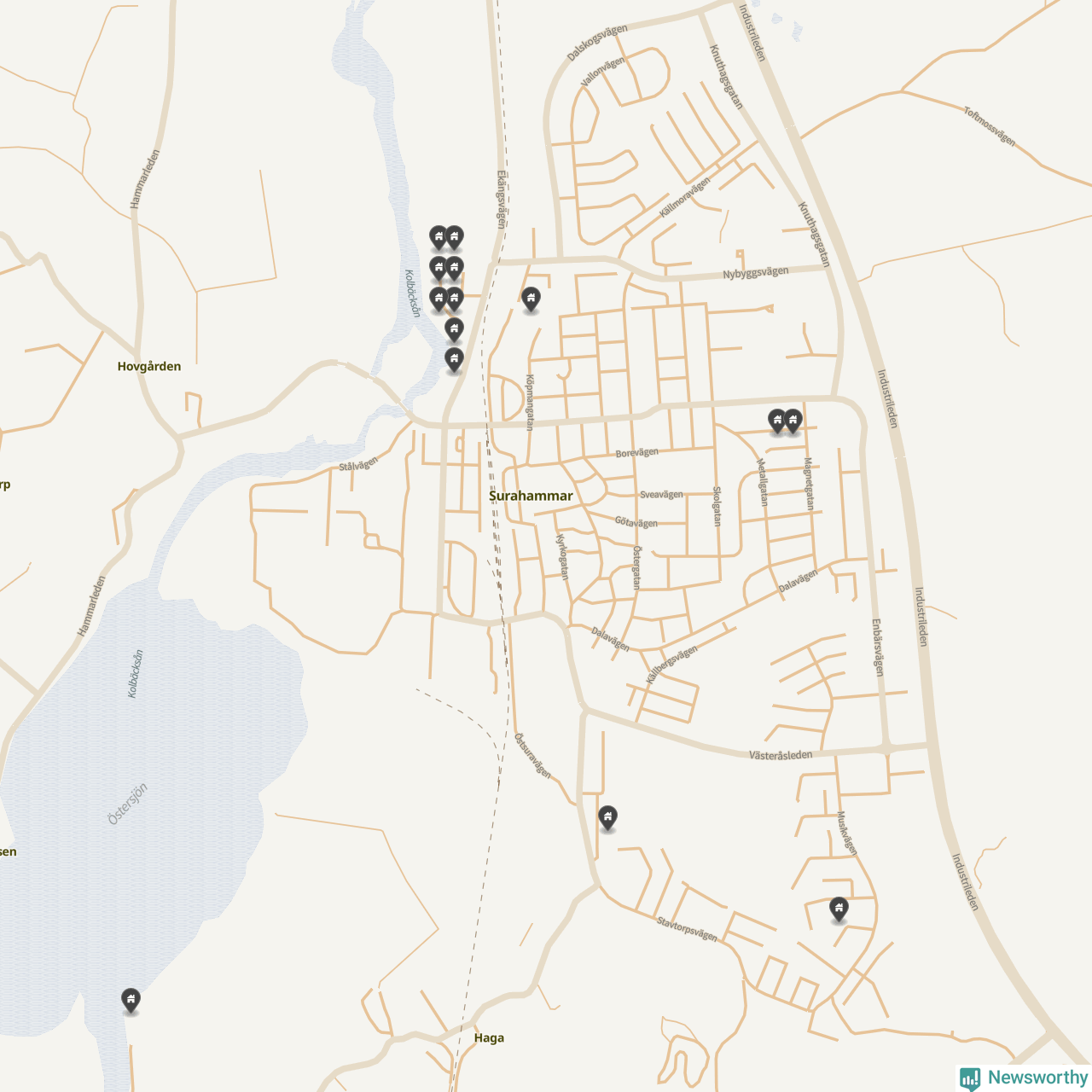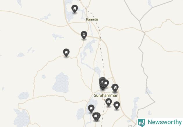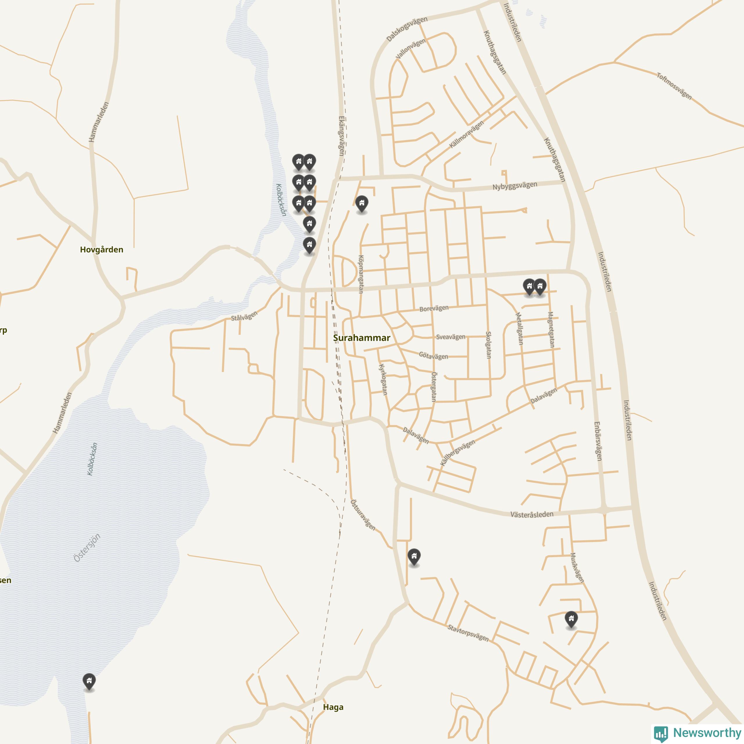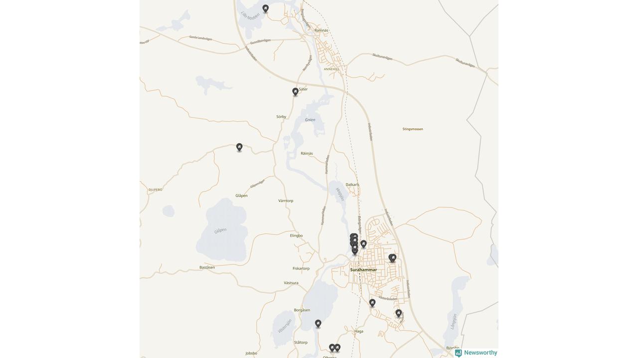 De 100 högst taxerade småhusfastigheterna i Surahammar har ett snittvärde på 2,8 miljoner kronor, vilket är omkring tre miljoner lägre än snittet för alla kommuners 100 högst taxerade småhus. Det visar Newsworthys genomgång av kommunernas högst taxerade småhusfastigheter, som sammanställts med hjälp av data från The intelligence company.