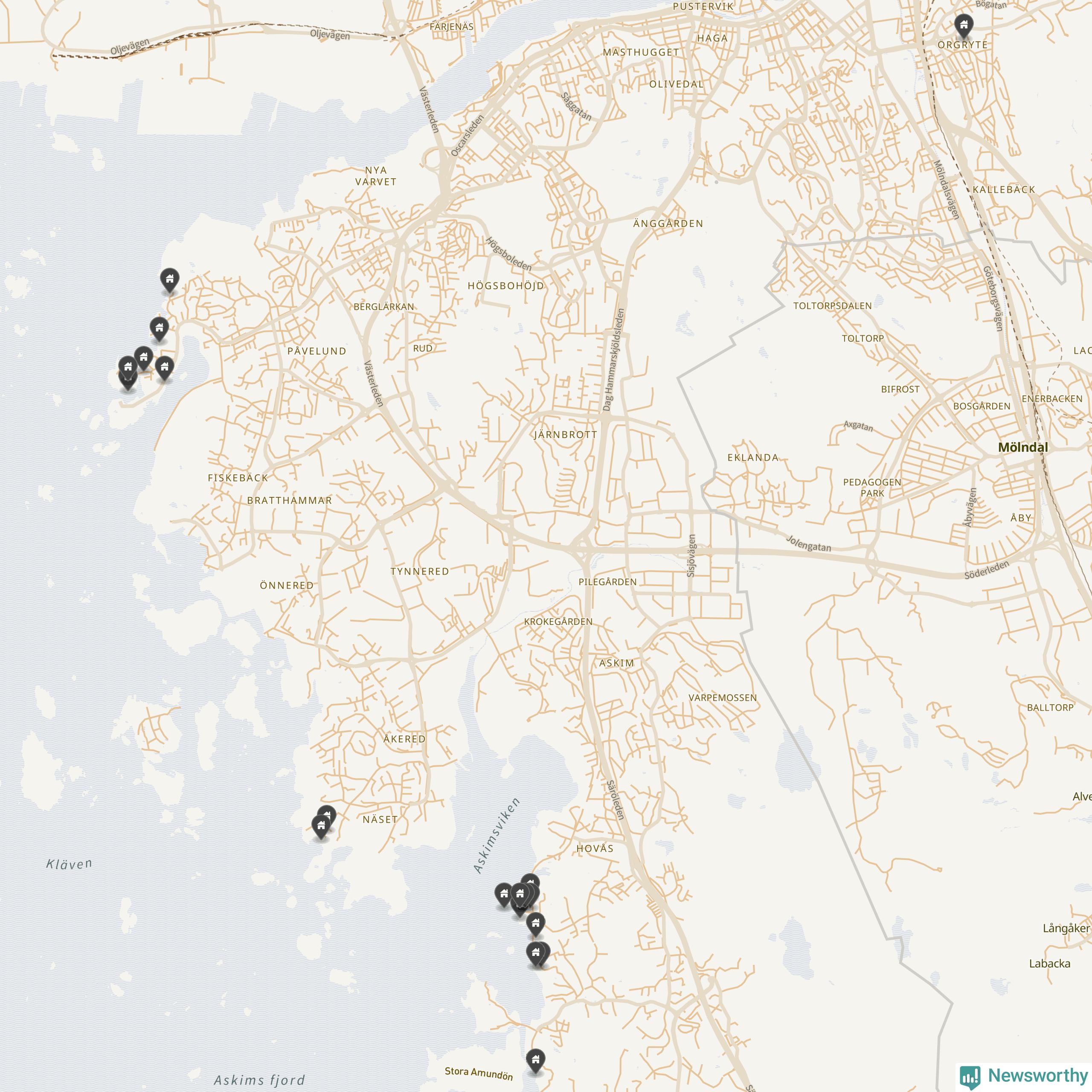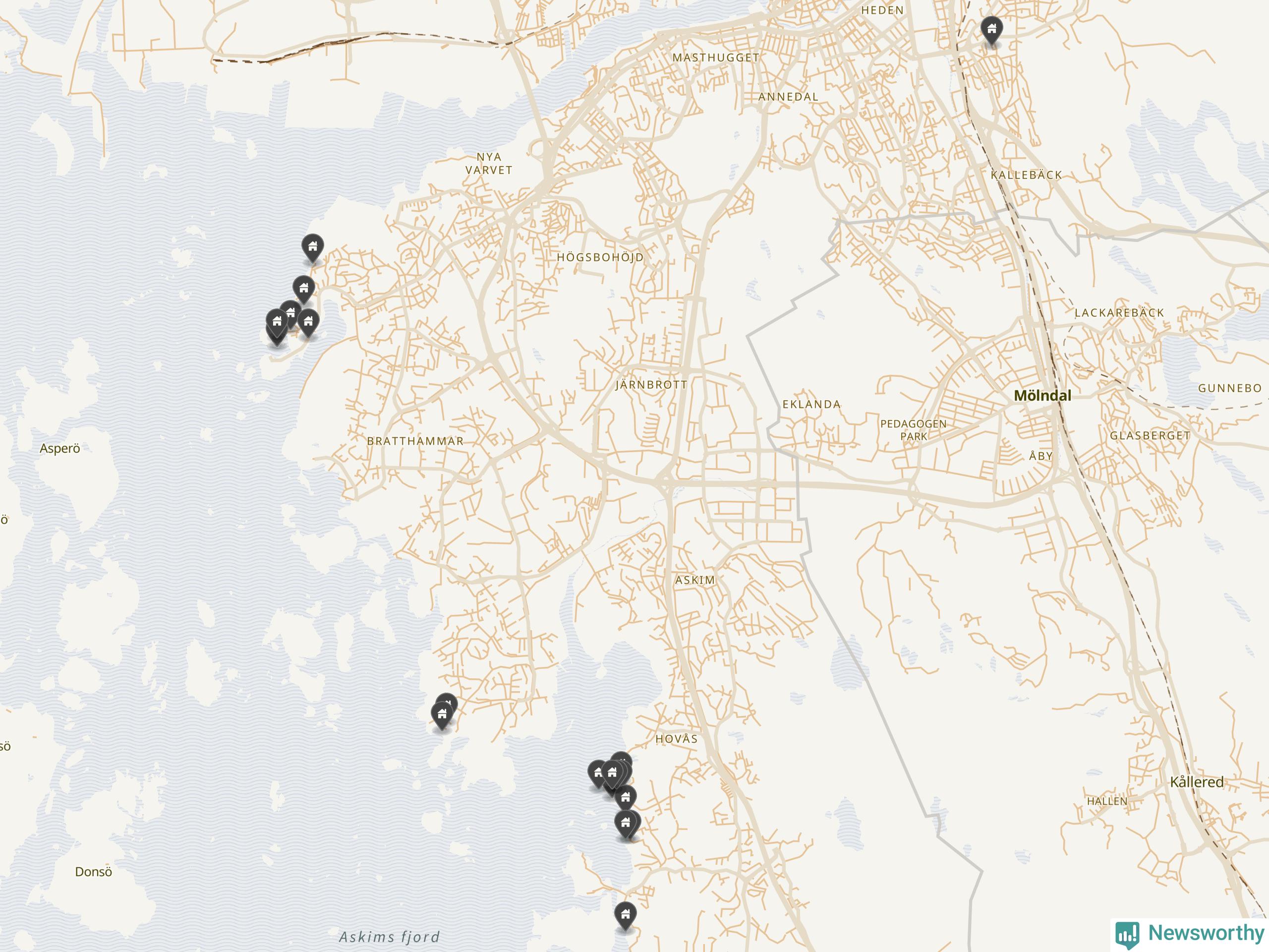 40 | Göteborg Hovås 57:192 | Fjordvägen 14 | 19,8 miljoner | 1 892 m² | Visa |