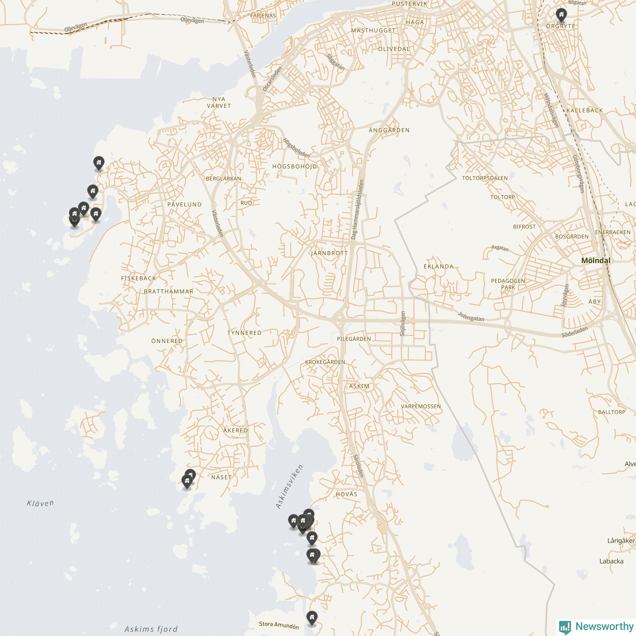 47 | Göteborg Hästevik 2:95 | Vedskärsvägen 30 | 19 miljoner | 1 572 m² | Visa |