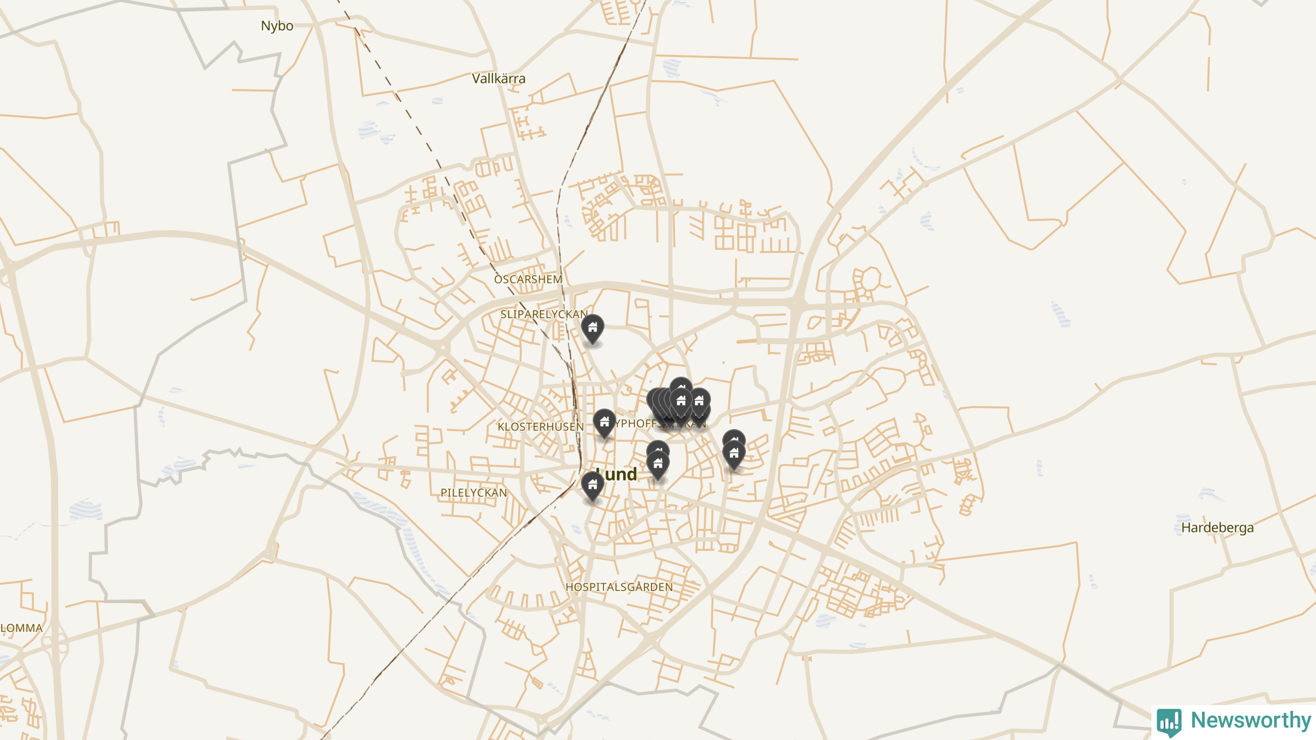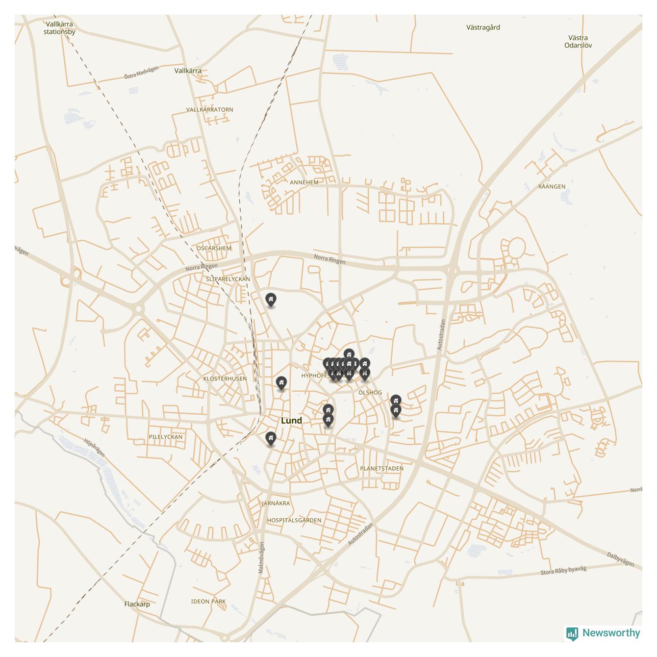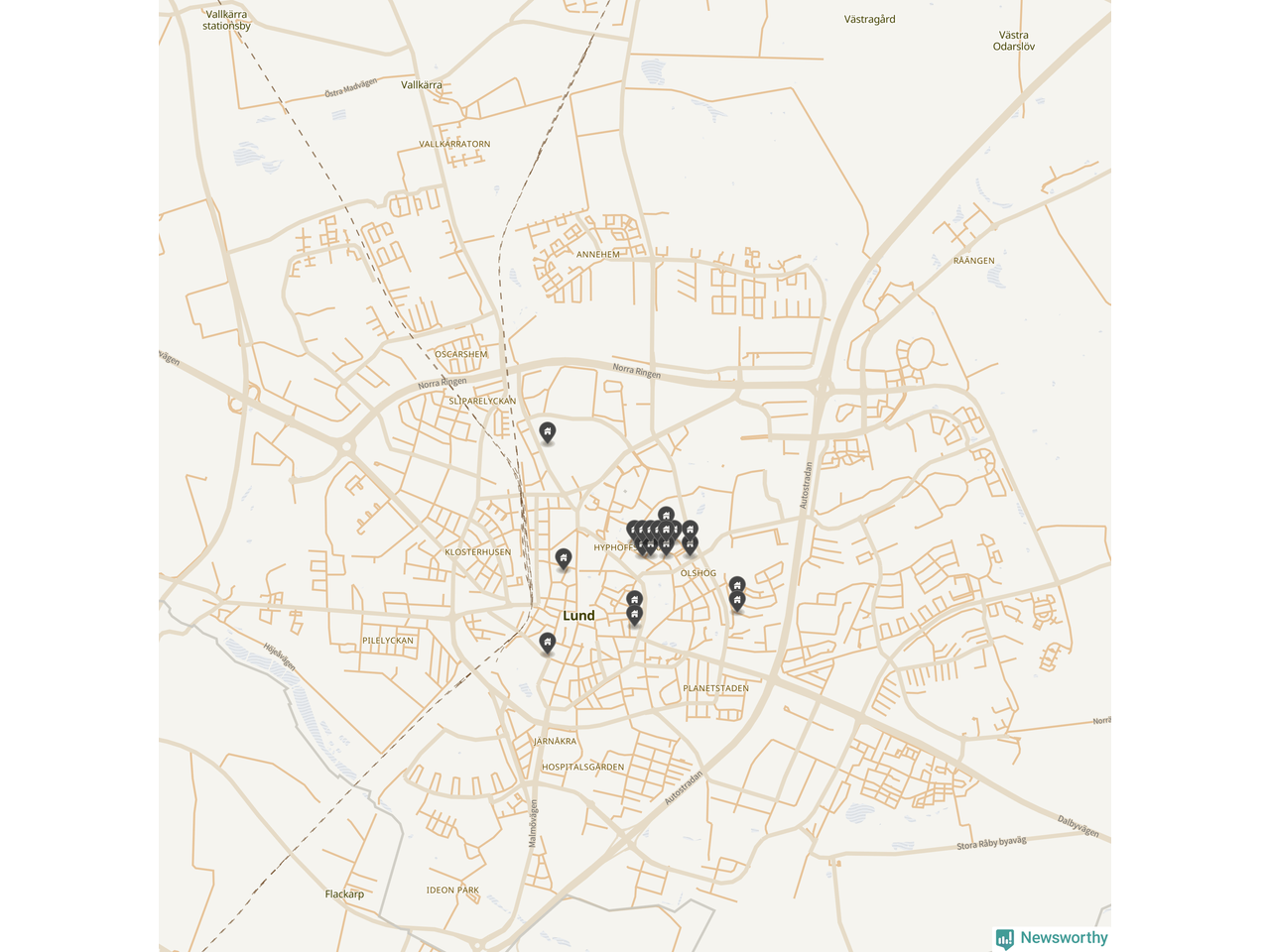 | Lund | 24,8 miljoner | 13 miljoner | >100 |