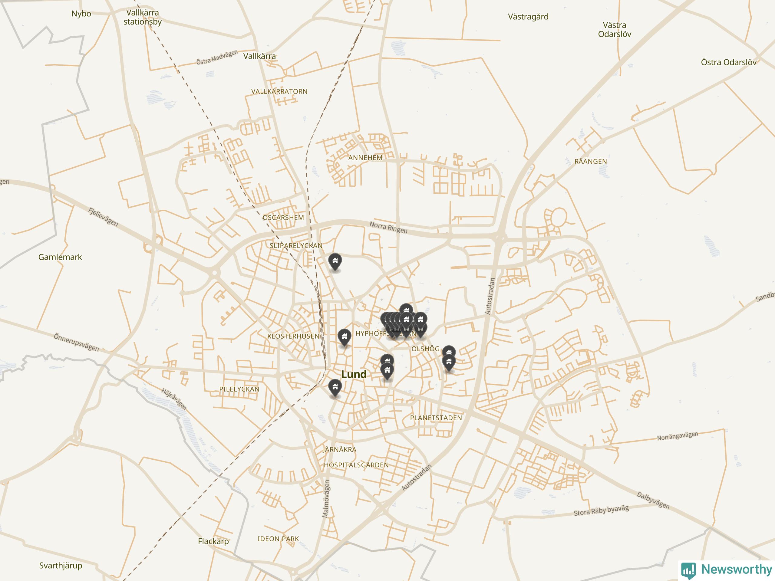| 53 | Lund Svarvaren 2 | Lilla Tvärgatan 14a m.fl. | 12,2 miljoner | 330 m² | Visa |