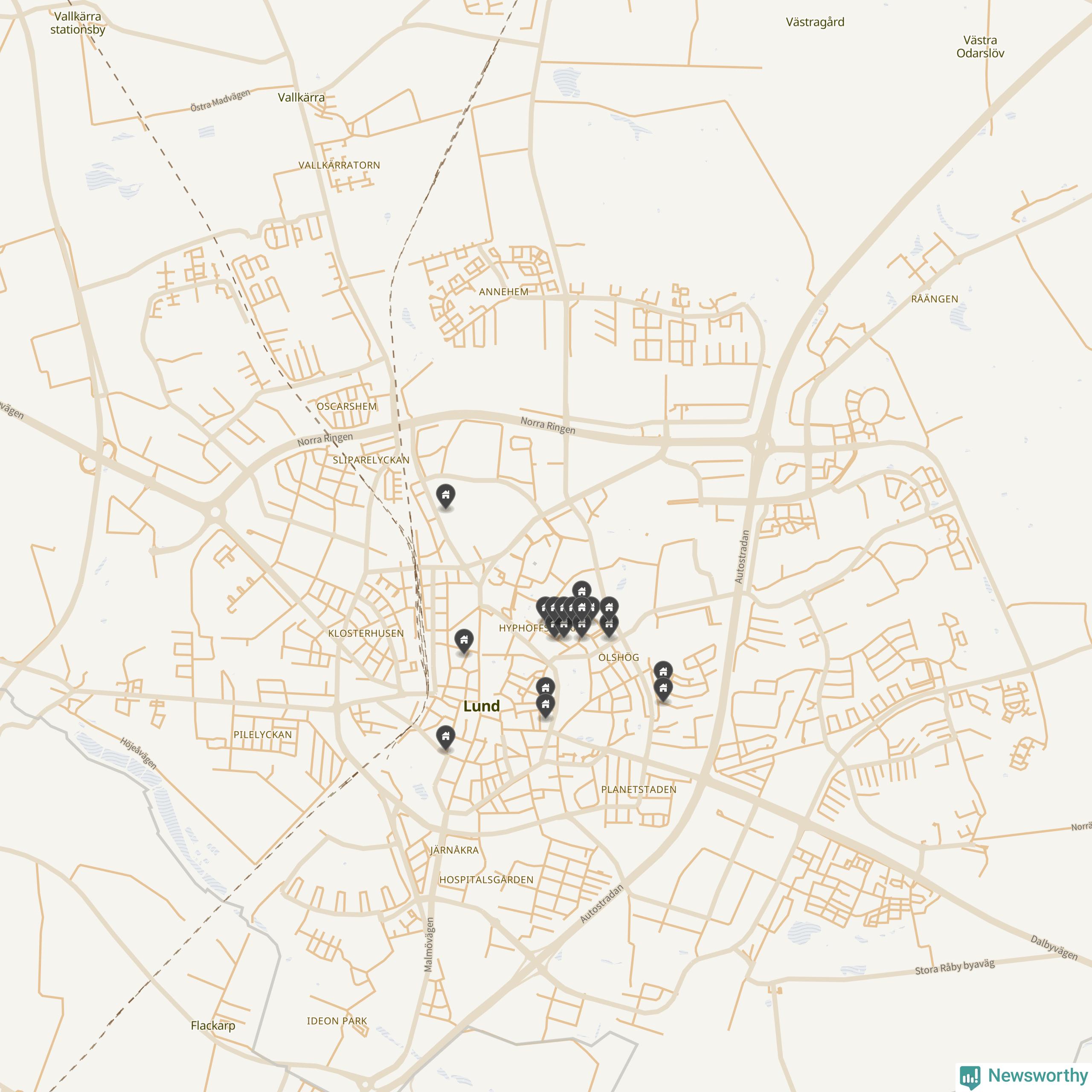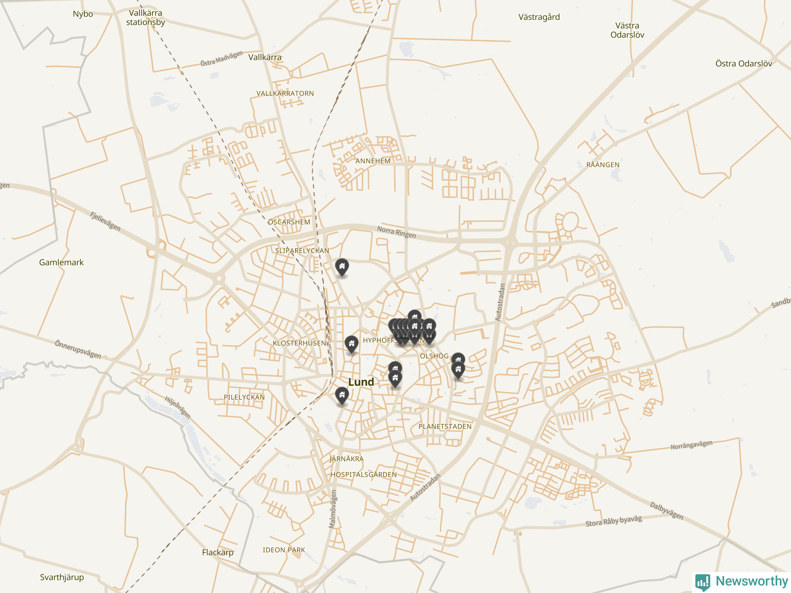 | 32 | Lund Sången 1 | Professorsgatan 20 | 13,2 miljoner | 959 m² | Visa |