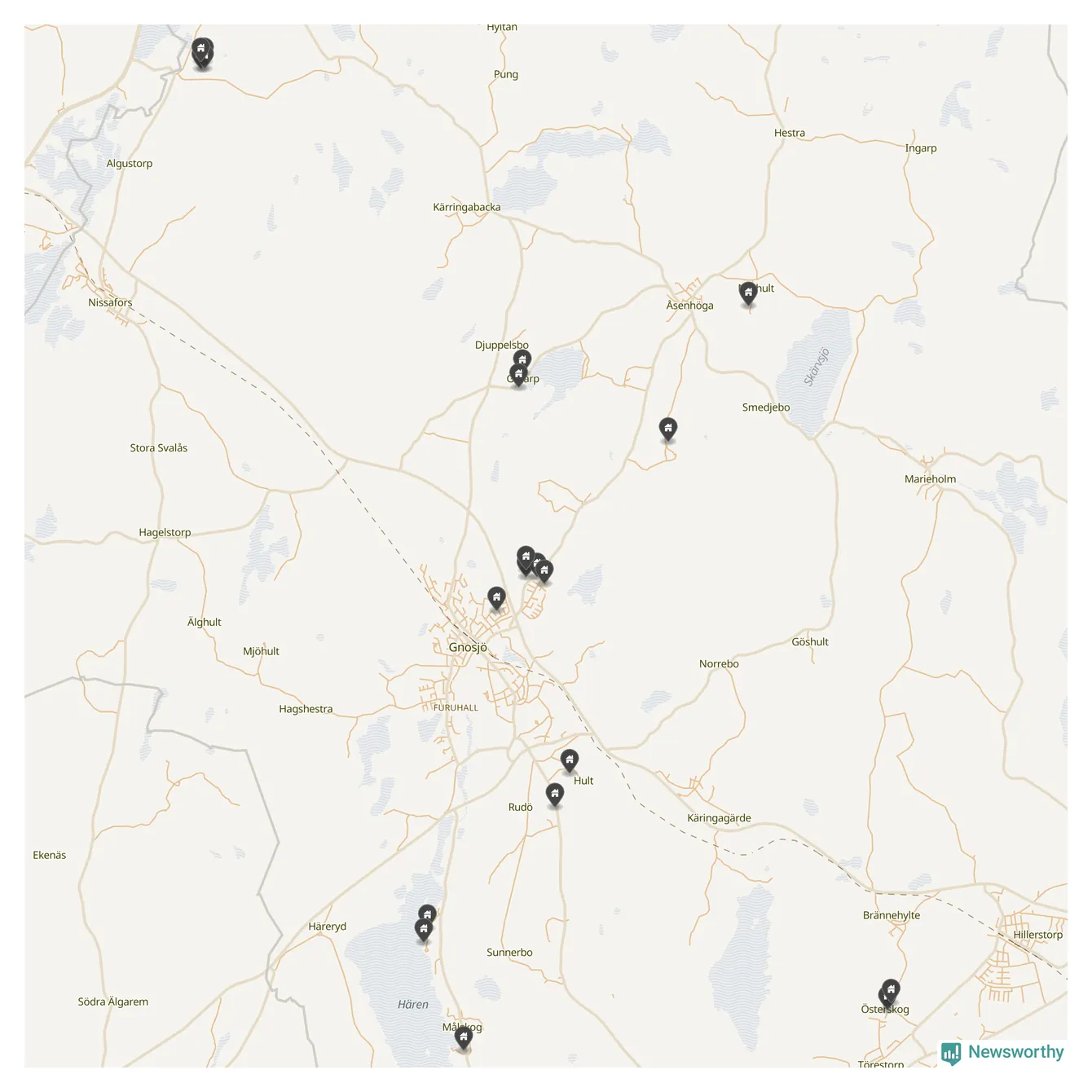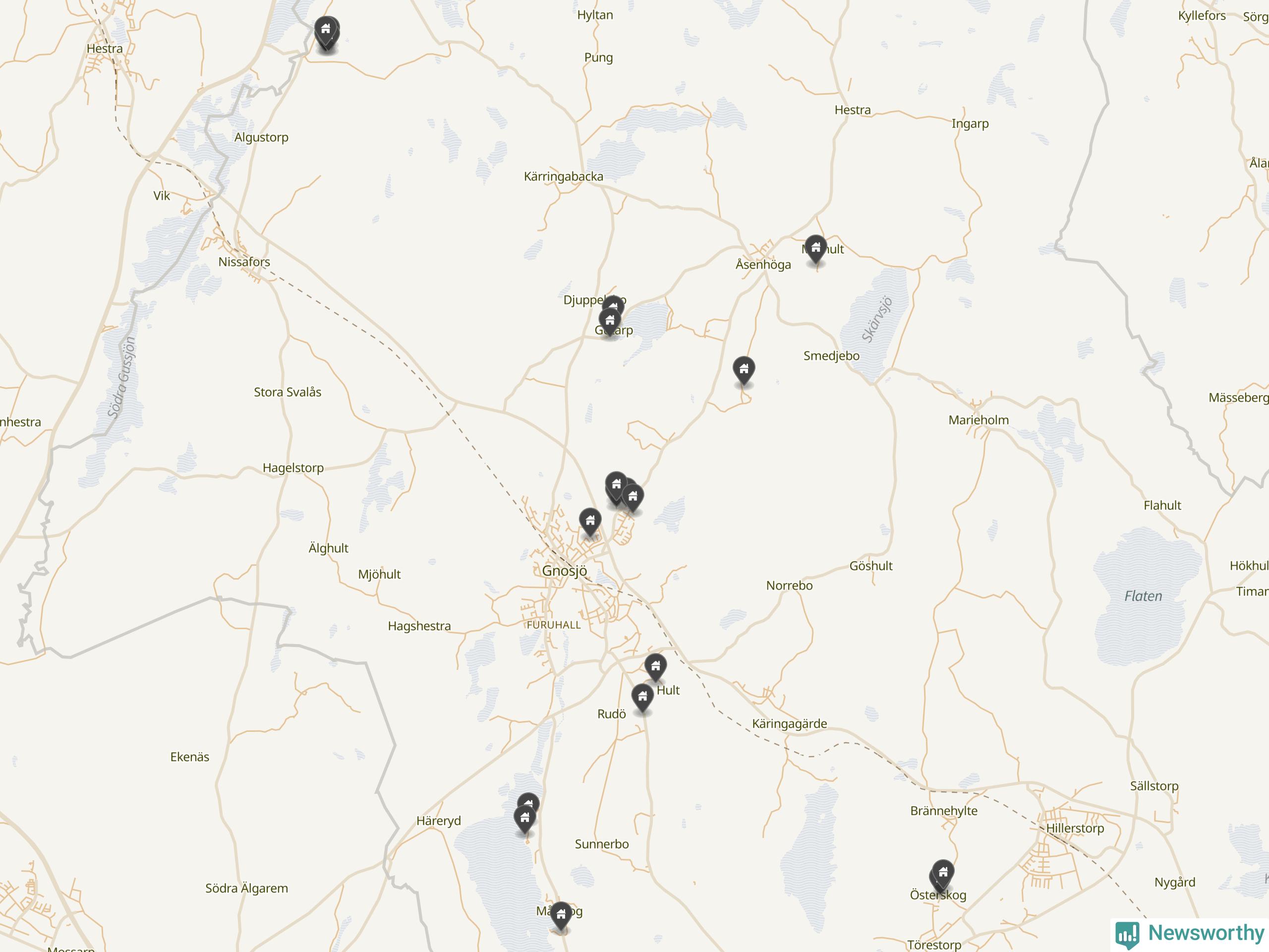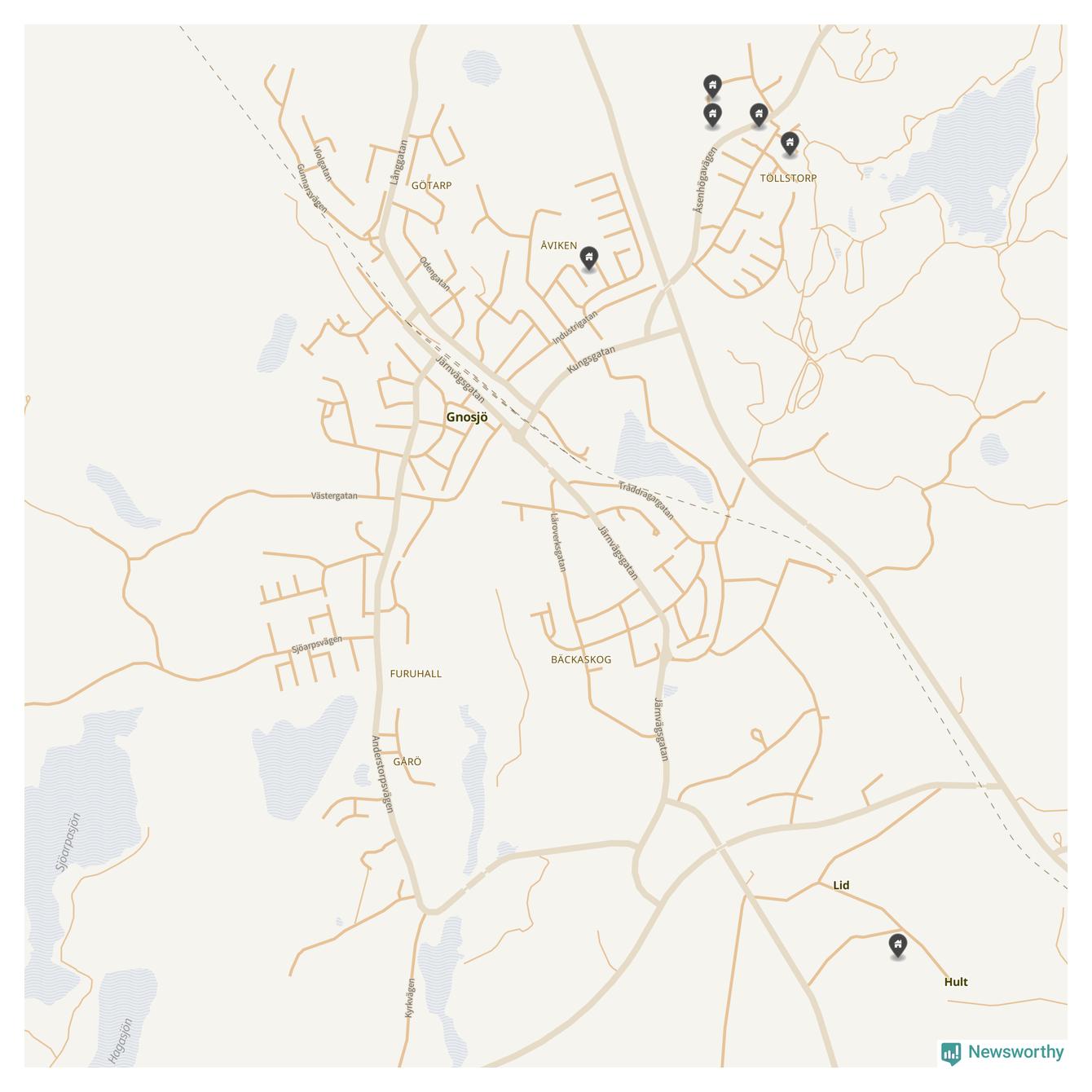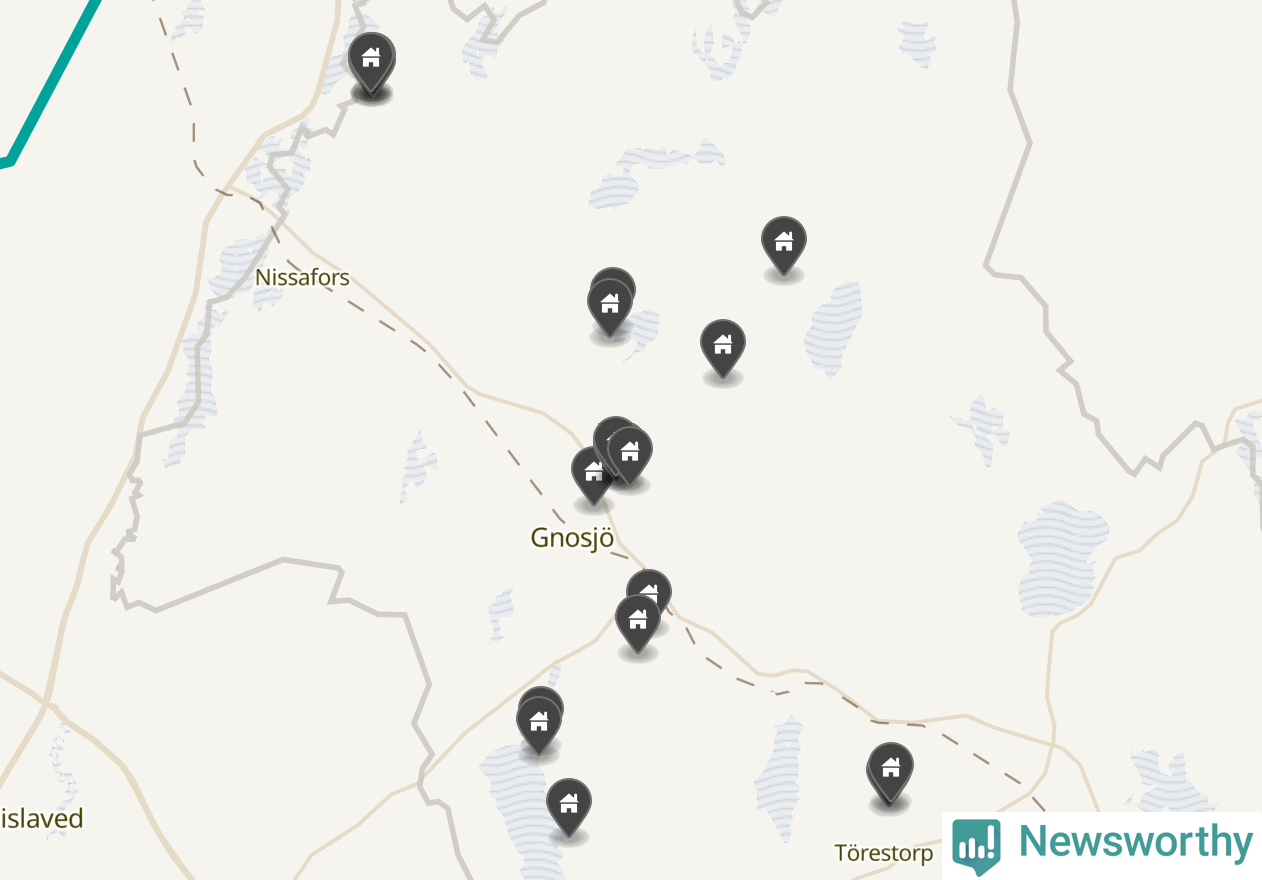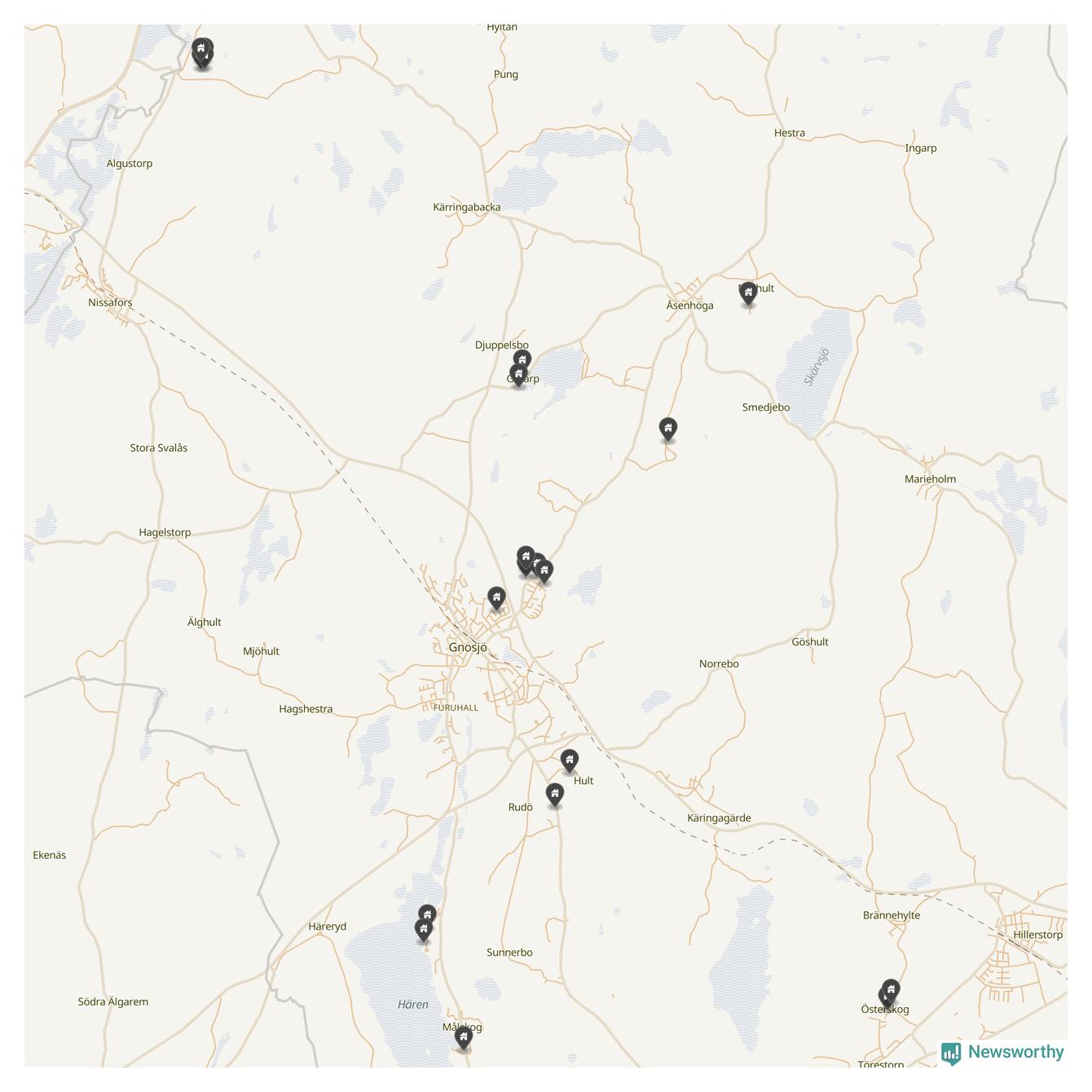 De 100 högst taxerade småhusfastigheterna i Gnosjö har ett snittvärde på 2,7 miljoner kronor, vilket är omkring tre miljoner lägre än snittet för alla kommuners 100 högst taxerade småhus. Det visar Newsworthys genomgång av kommunernas högst taxerade småhusfastigheter, som sammanställts med hjälp av data från The intelligence company.