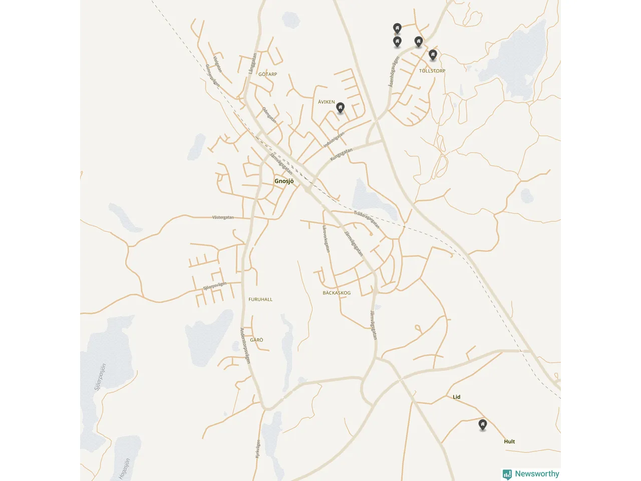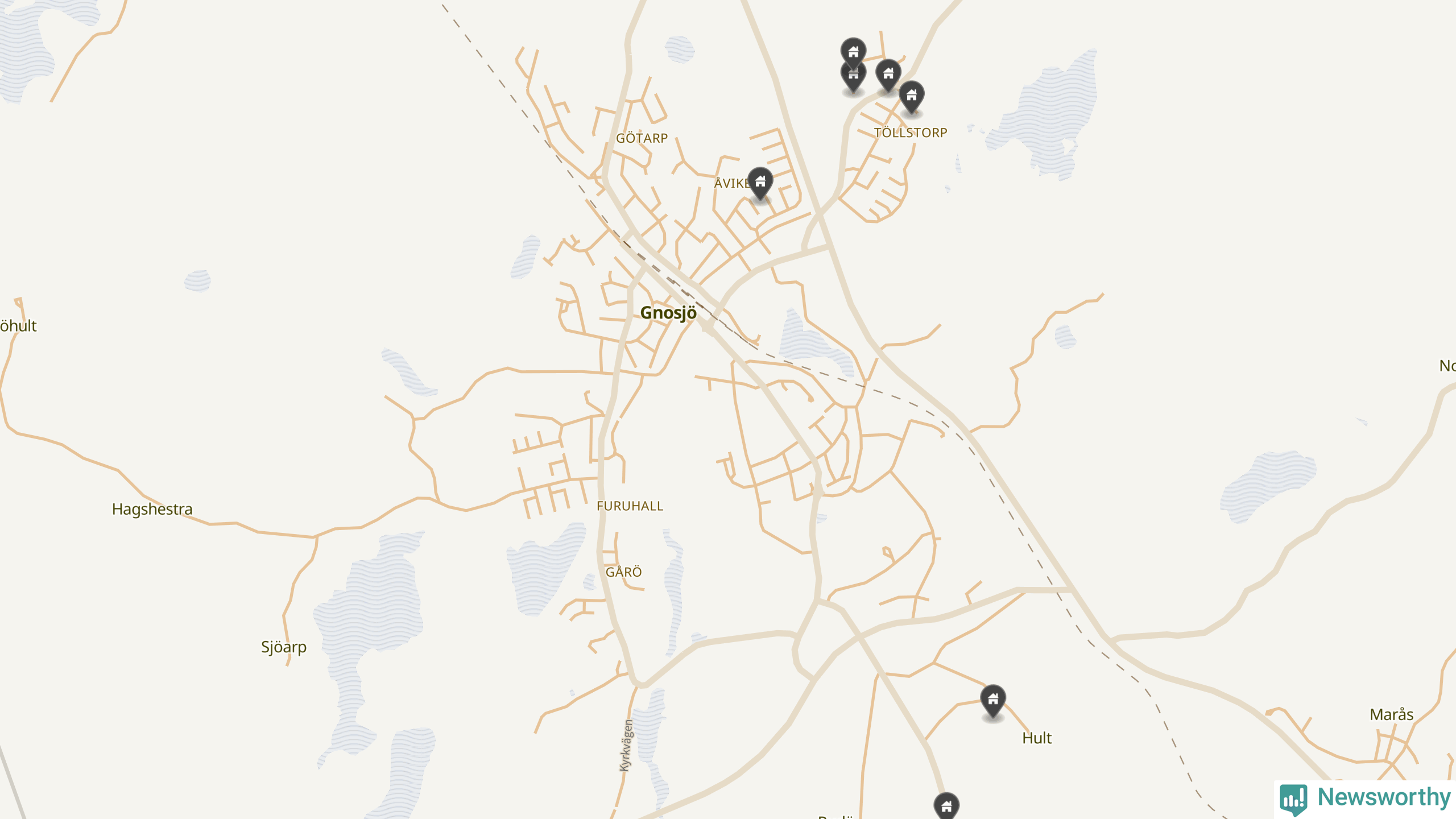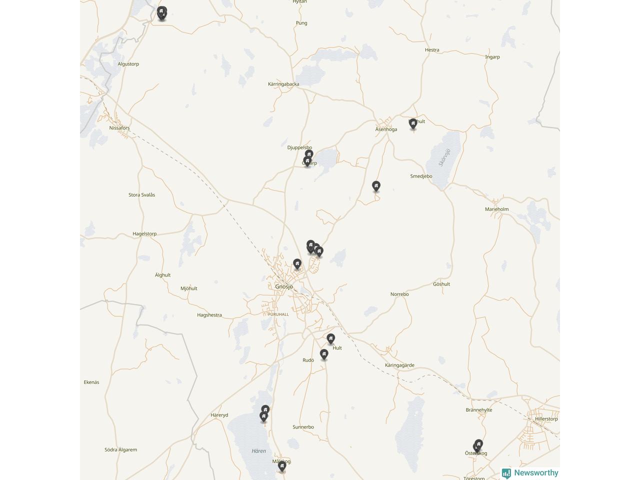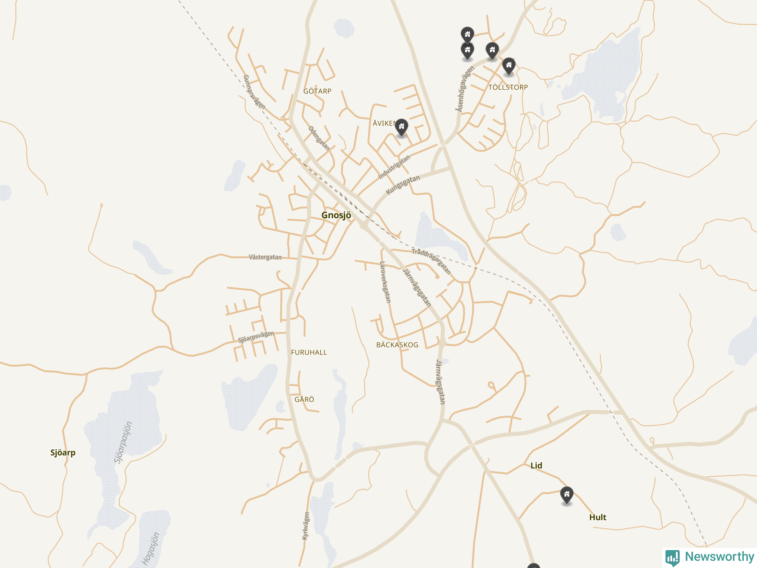 De 100 högst taxerade småhusfastigheterna i Gnosjö har ett snittvärde på 2,7 miljoner kronor, vilket är omkring tre miljoner lägre än snittet för alla kommuners 100 högst taxerade småhus. Det visar Newsworthys genomgång av kommunernas högst taxerade småhusfastigheter, som sammanställts med hjälp av data från The intelligence company.