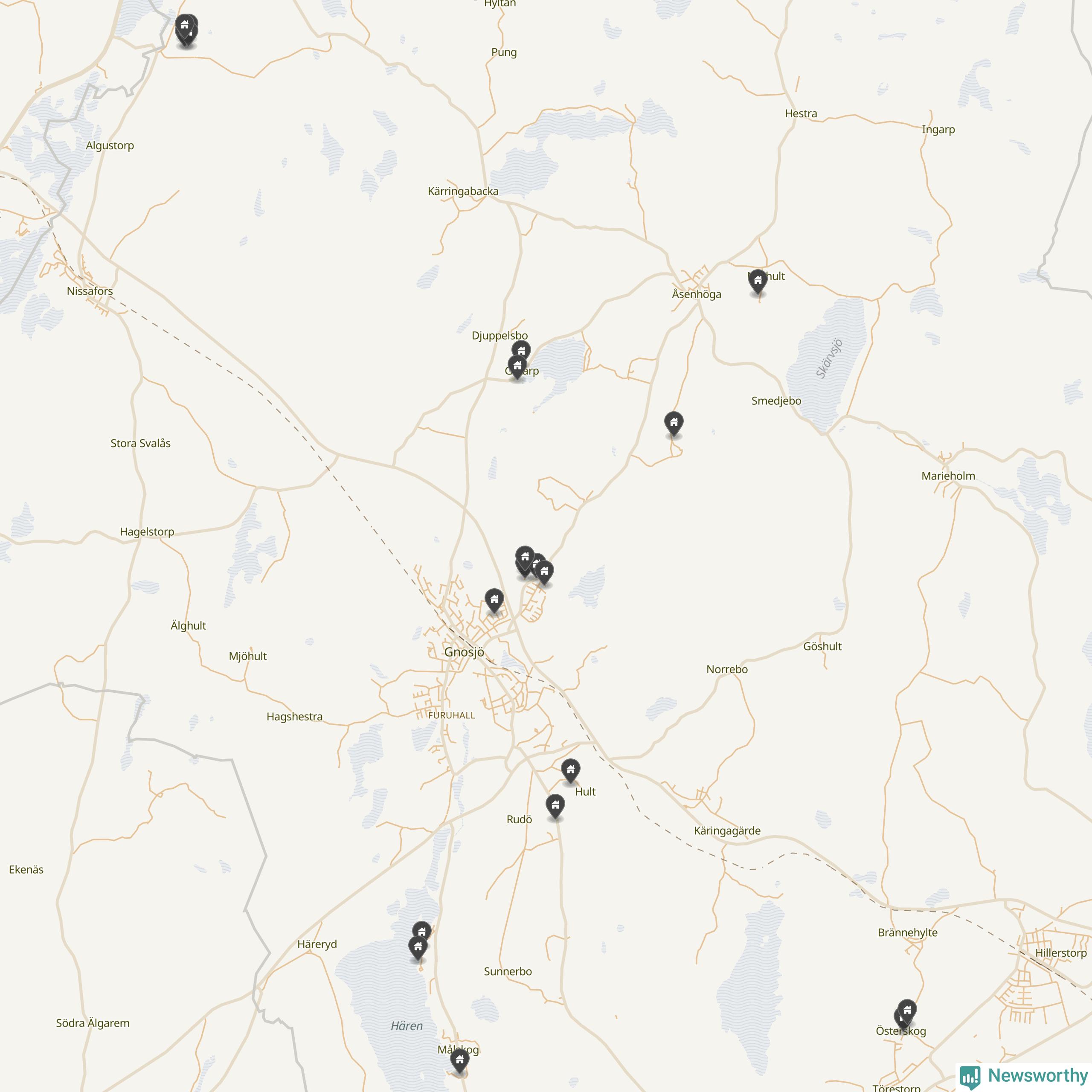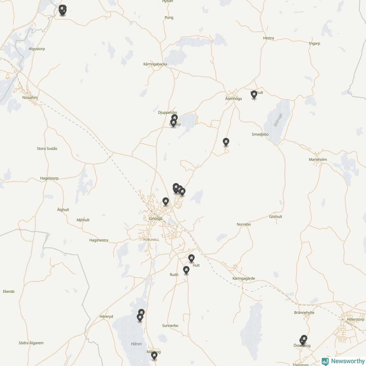 53 | Gnosjö Gårö 1:196 | Hagagatan 7a m.fl. | 2,5 miljoner | 1 288 m² | Visa |