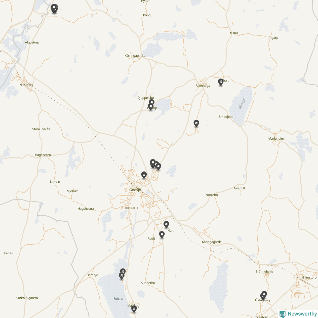 1 | Gnosjö Gnosjö-Hult 1:14 | Västergärdet | 3,9 miljoner | 8 936 m² | Visa |