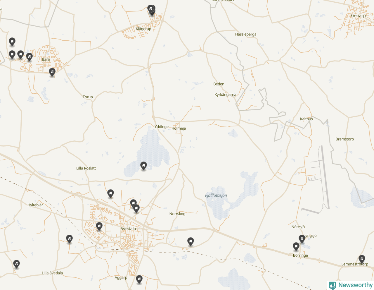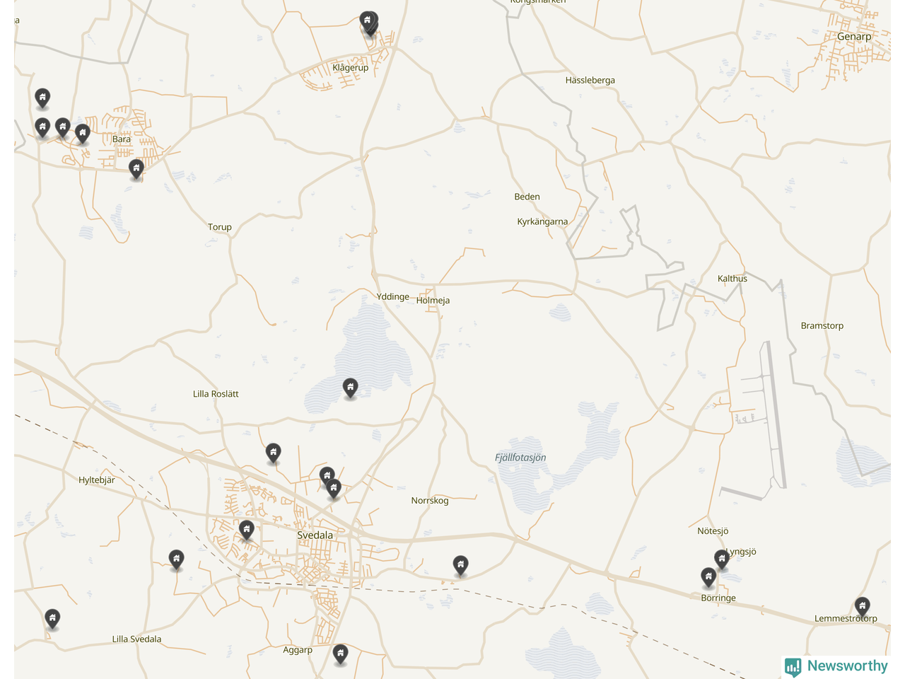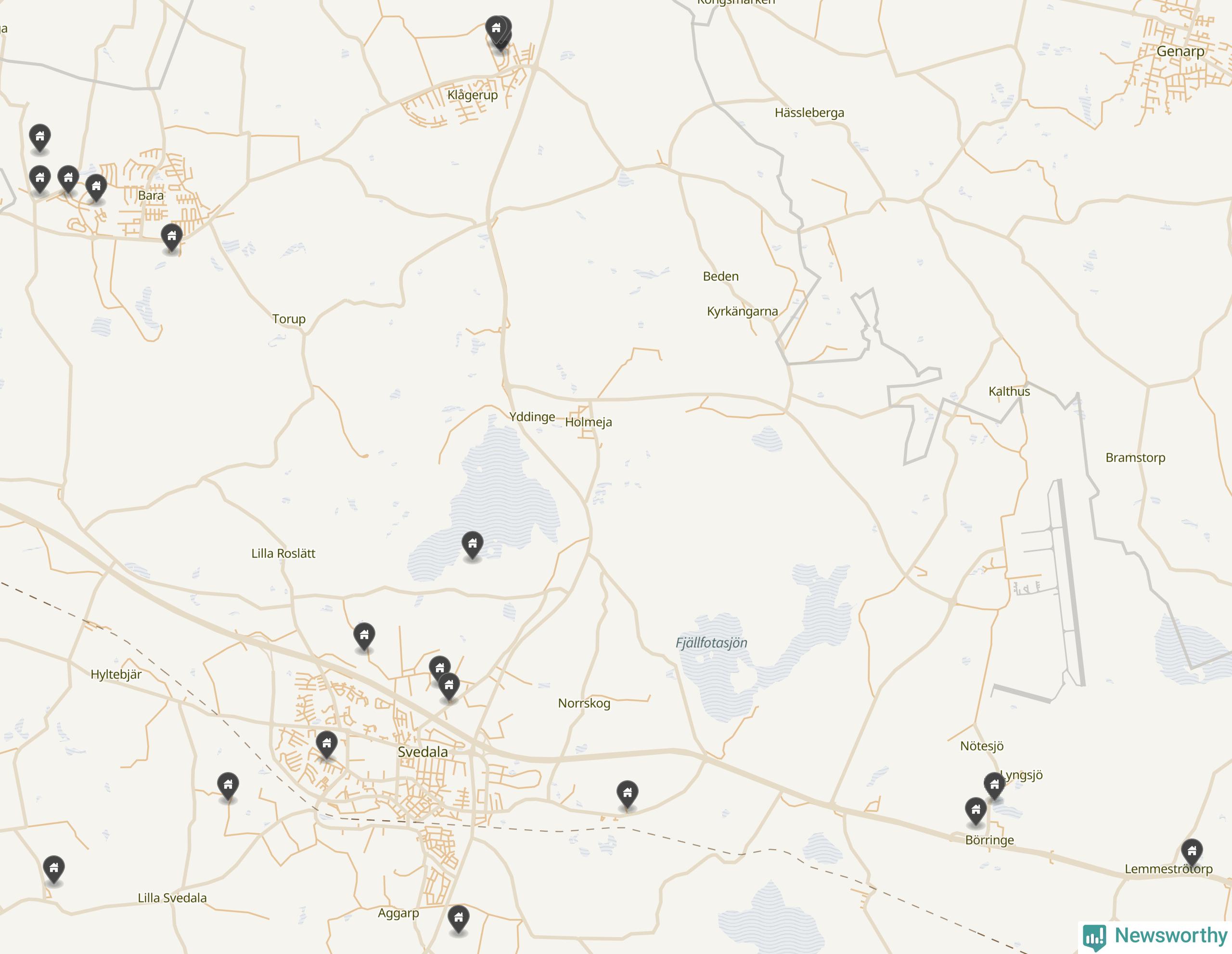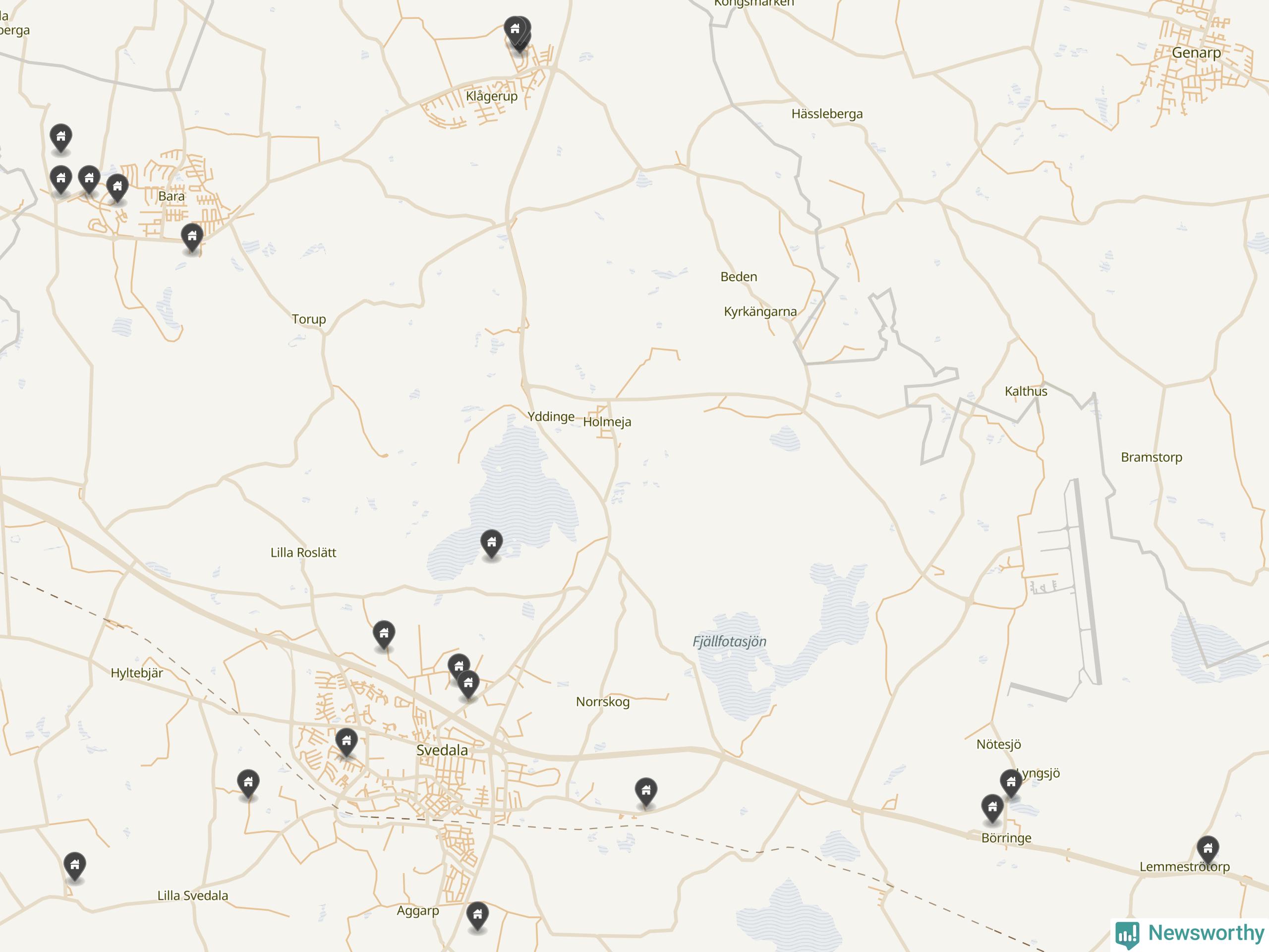 | 7 | Svedala Nötesjö 1:131 | Nötesjövägen 50-2 m.fl. | 8,7 miljoner | 2 877 m² | Visa |