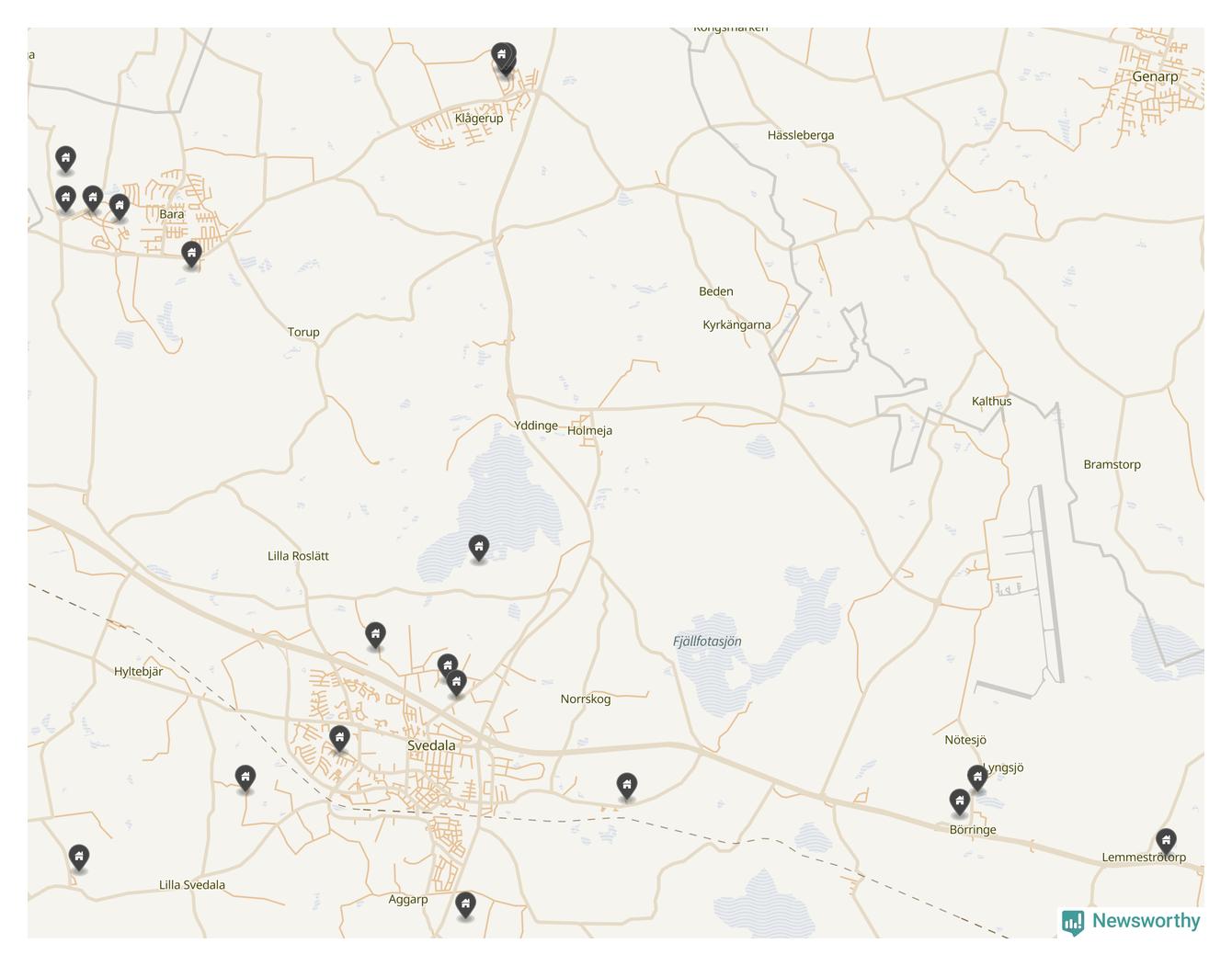 | 16 | Svedala Tejarp 6:127 | Anders Pålssons Väg 25 | 7,3 miljoner | 729 m² | Visa |