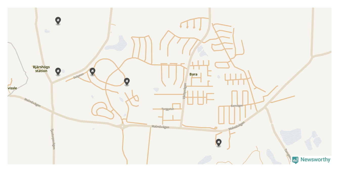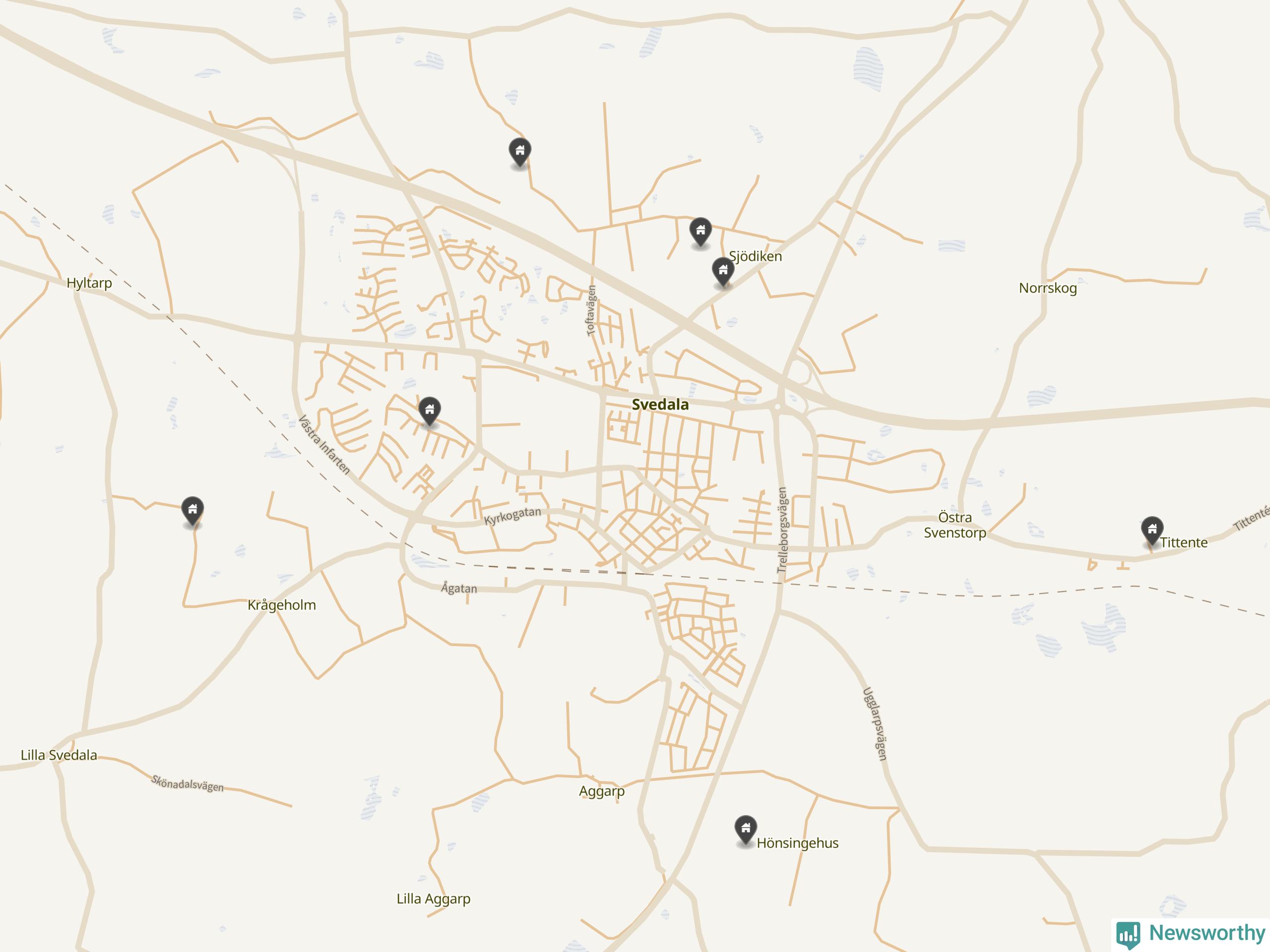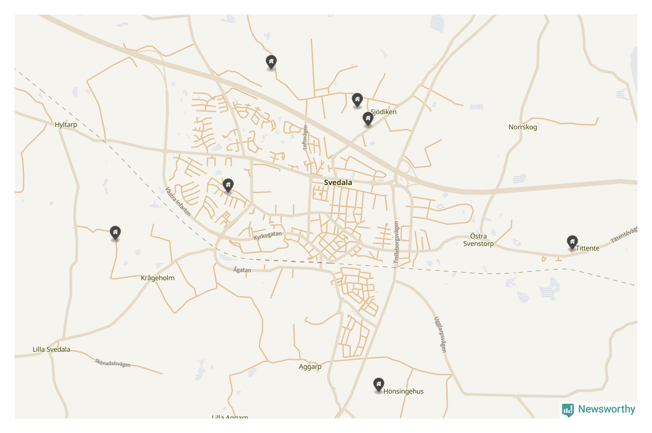 | 70 | Svedala Tejarp 6:128 | Anders Pålssons Väg 23b m.fl. | 6 miljoner | 781 m² | Visa |