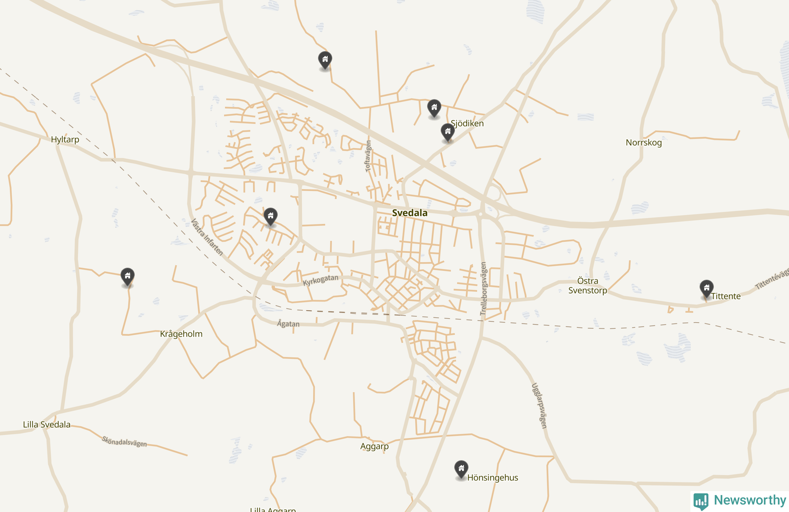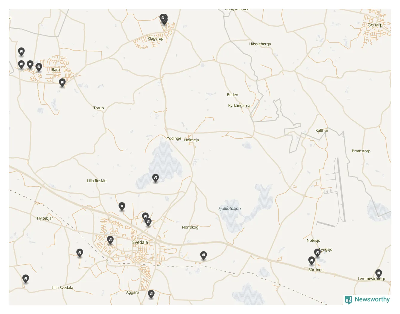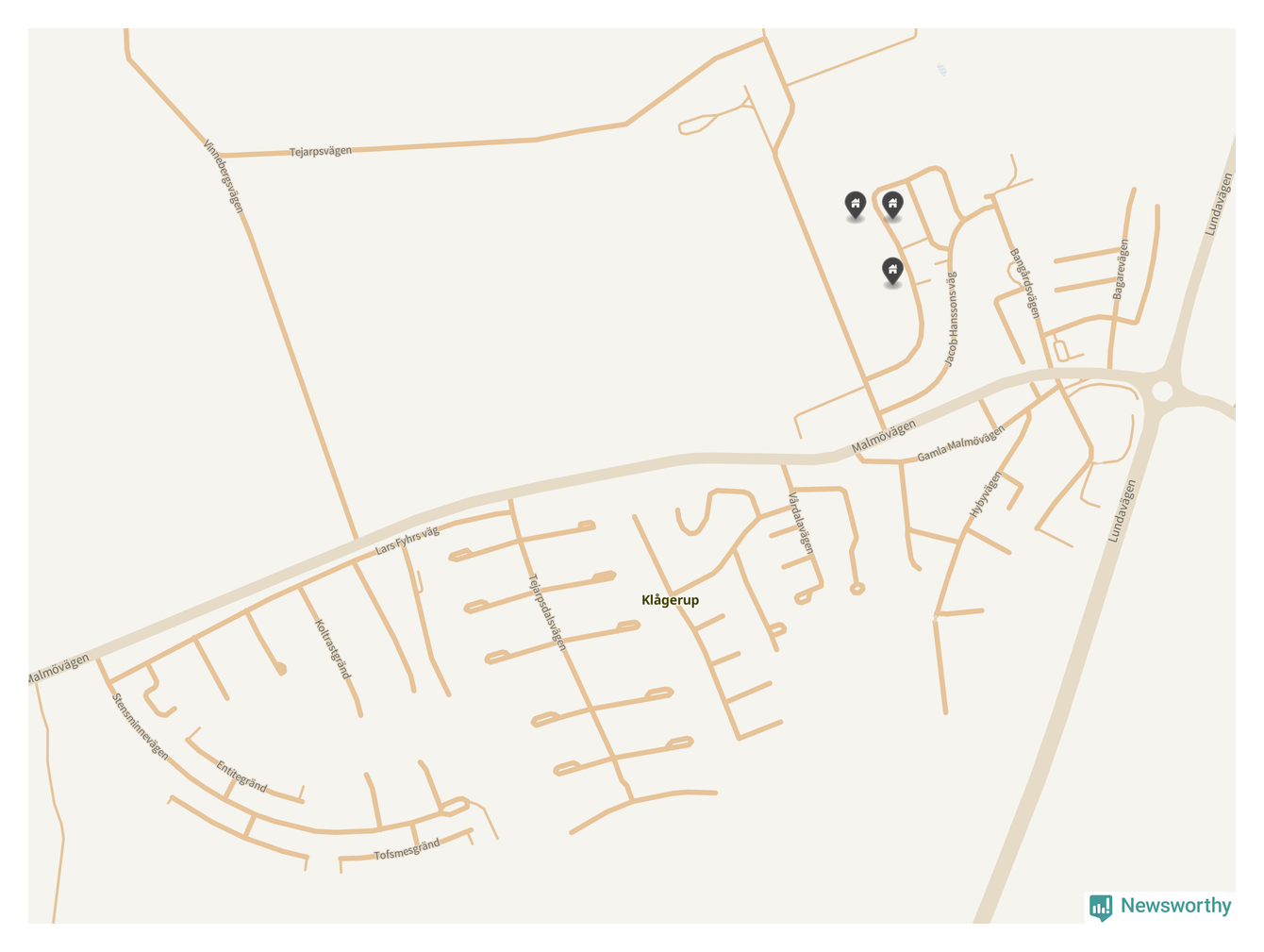 | 70 | Svedala Tejarp 6:128 | Anders Pålssons Väg 23b m.fl. | 6 miljoner | 781 m² | Visa |