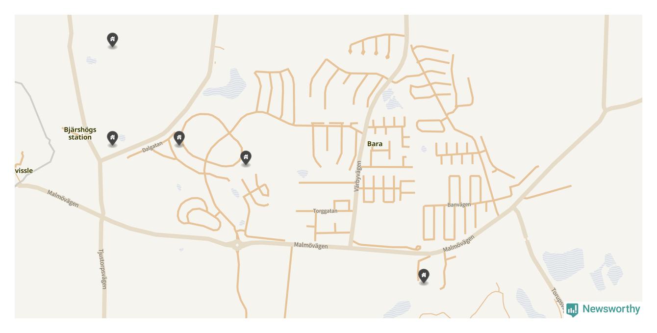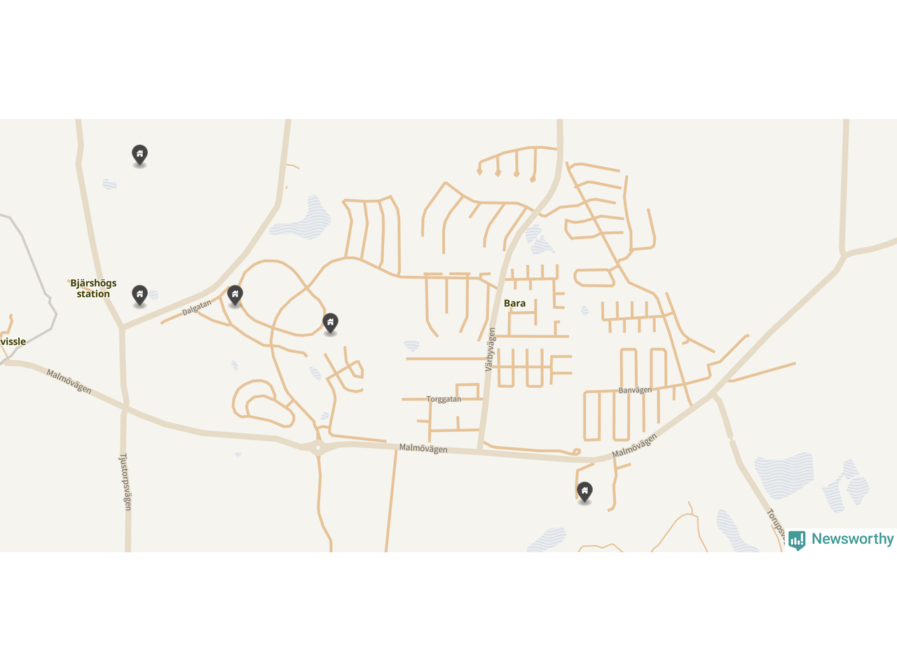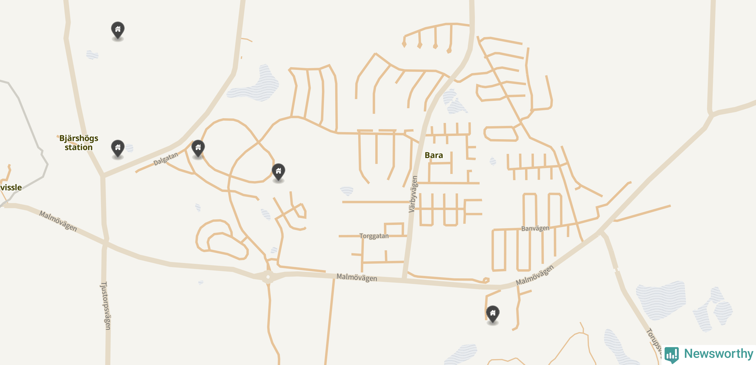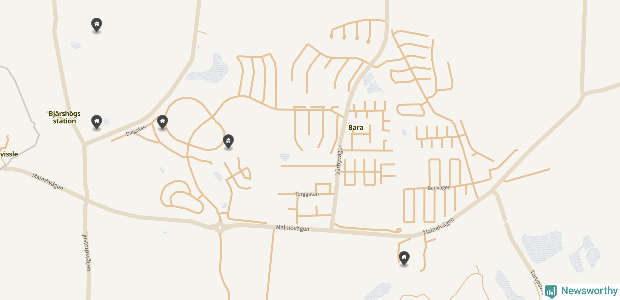 | 27 | Svedala Bjärshög 8:10 | Bjärshögs Stationsväg 3-0 | 6,7 miljoner | 2 218 m² | Visa |