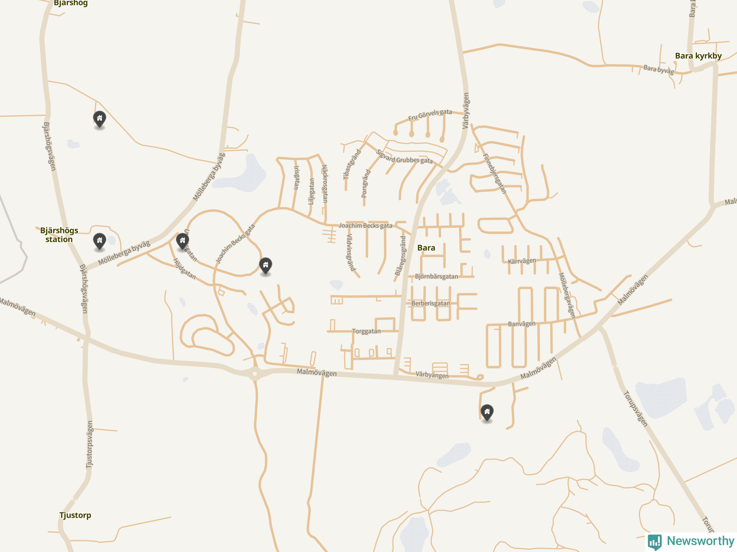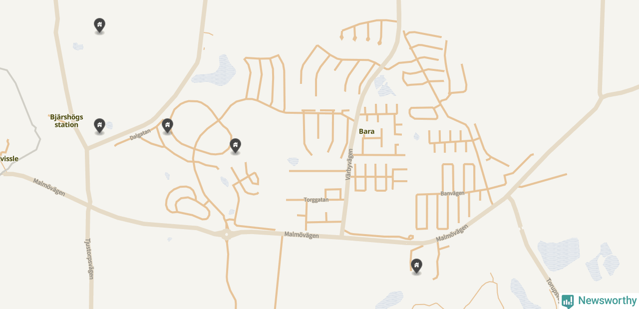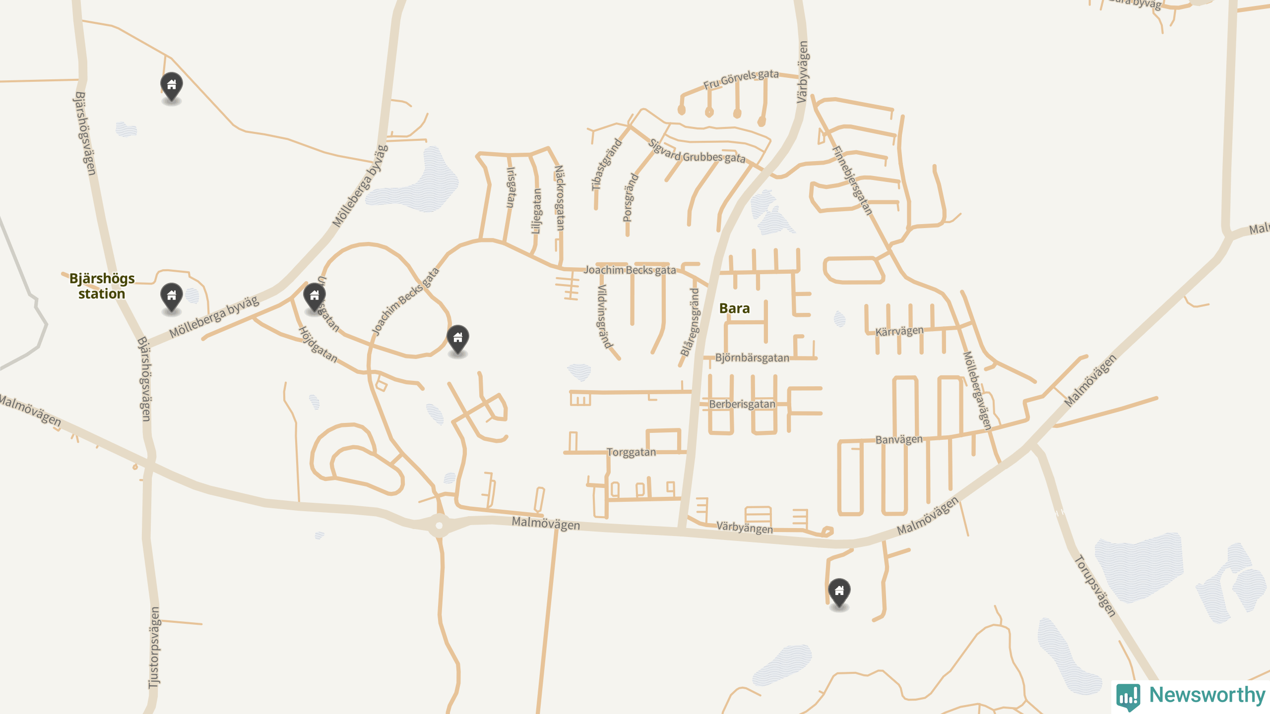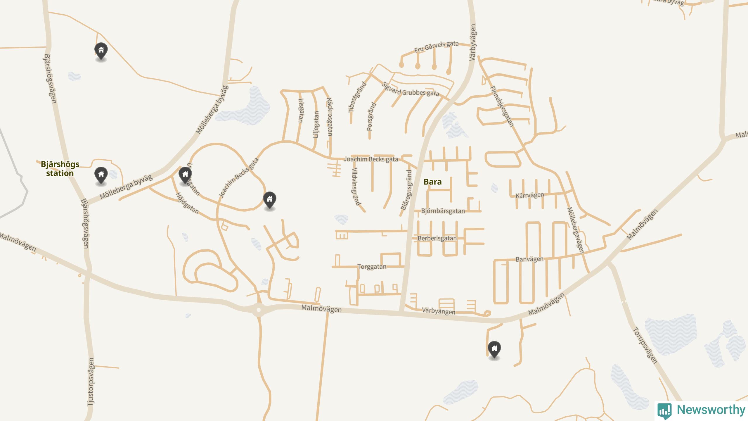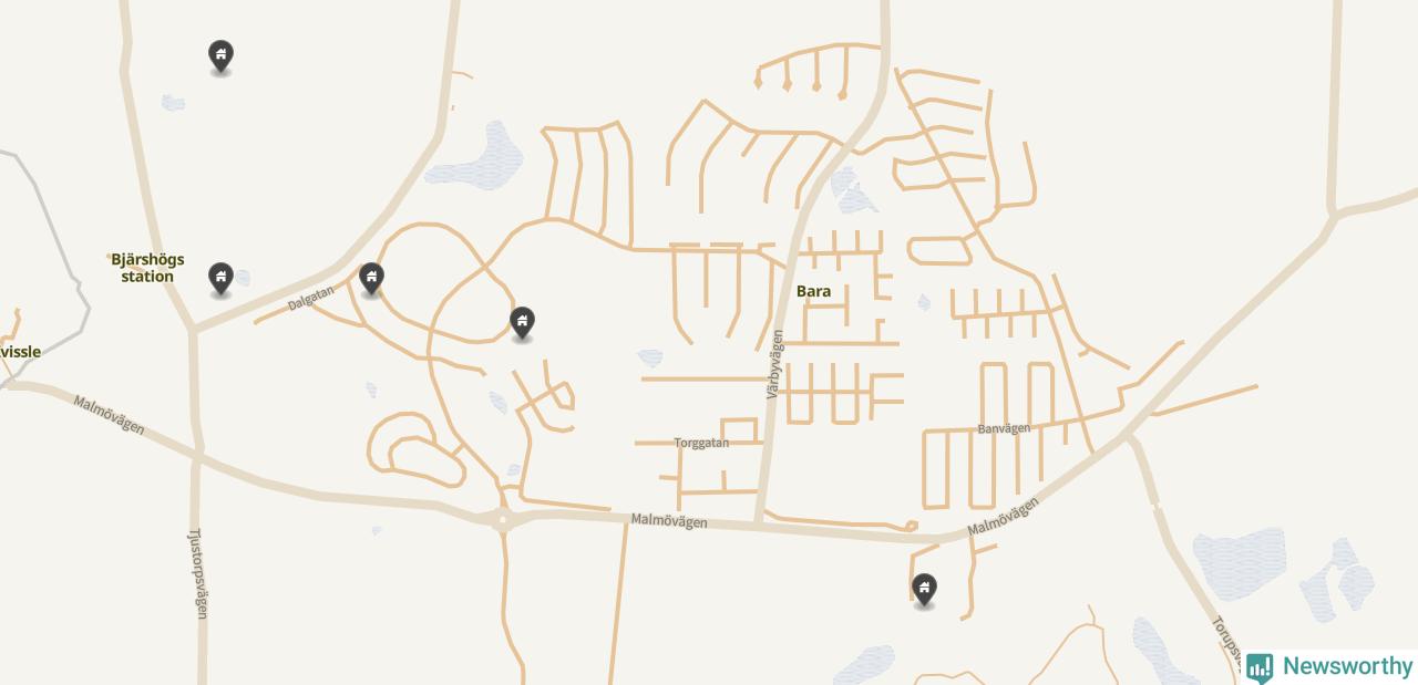 | 27 | Svedala Bjärshög 8:10 | Bjärshögs Stationsväg 3-0 | 6,7 miljoner | 2 218 m² | Visa |