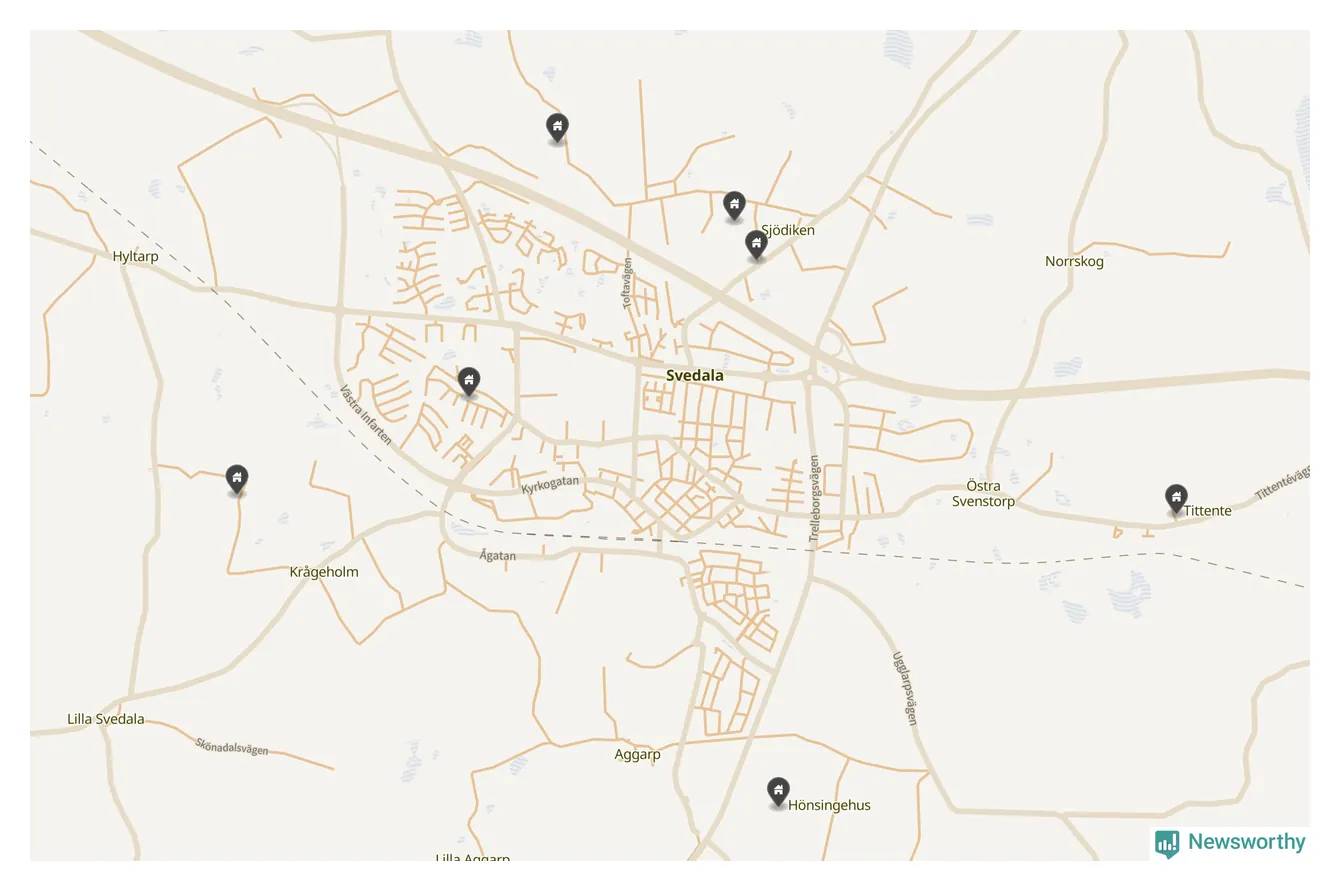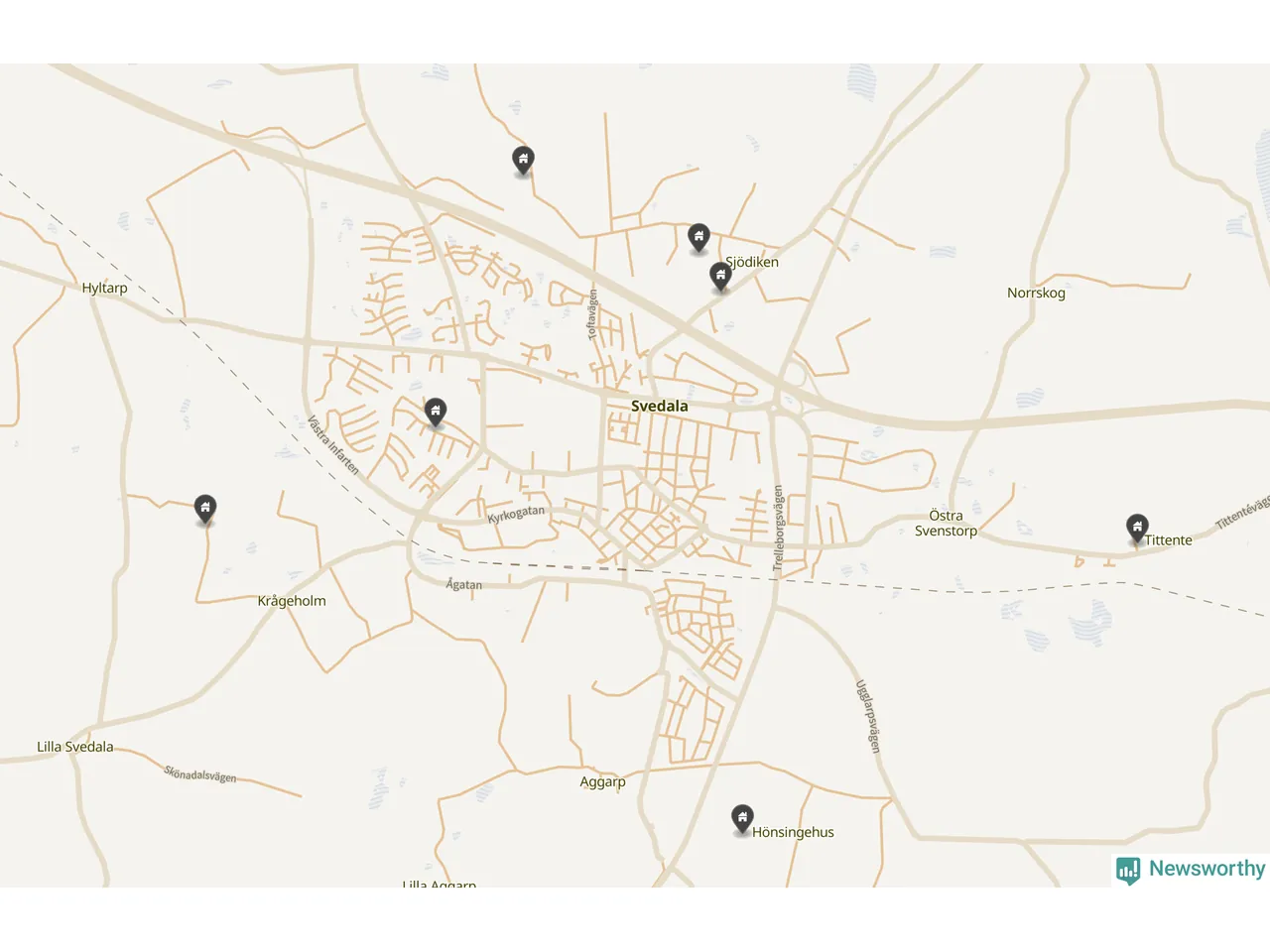 De 100 högst taxerade småhusfastigheterna i Svedala har ett snittvärde på 6,6 miljoner kronor, vilket är något högre än snittet för alla kommuners 100 högst taxerade småhus. Det visar Newsworthys genomgång av kommunernas högst taxerade småhusfastigheter, som sammanställts med hjälp av data från The intelligence company.