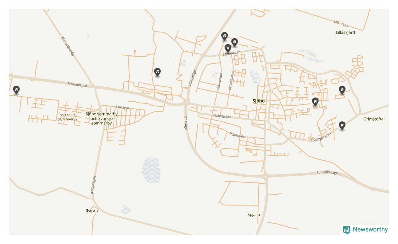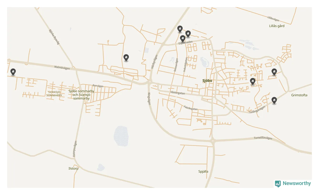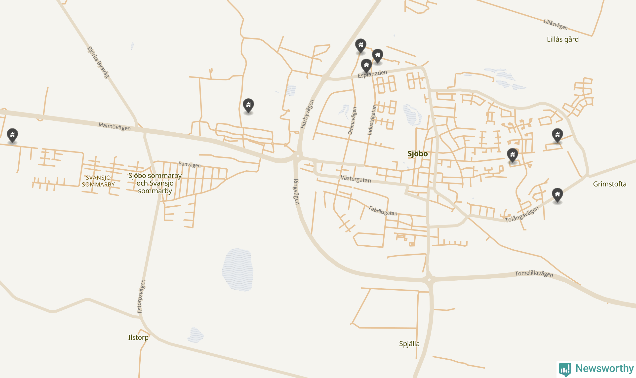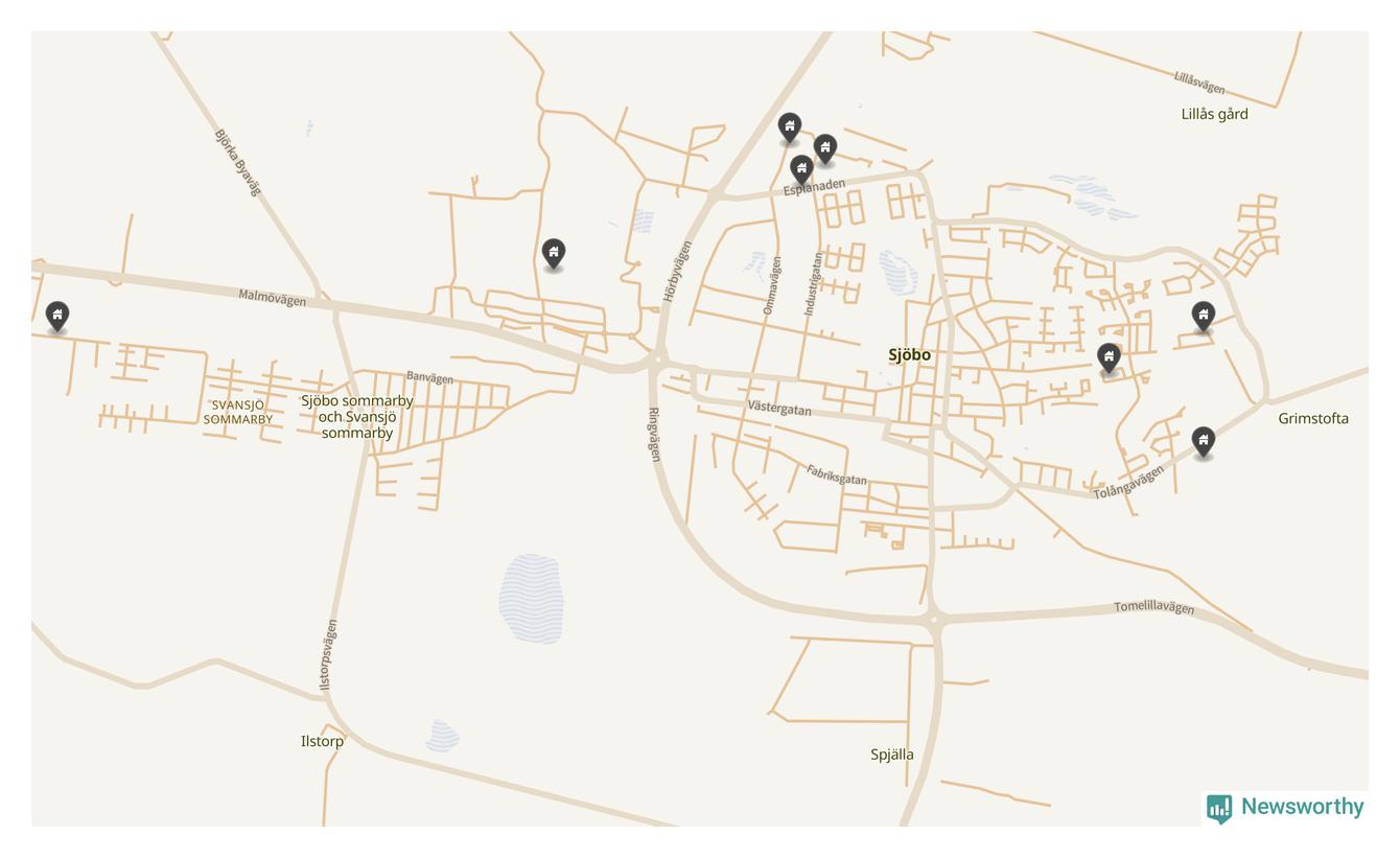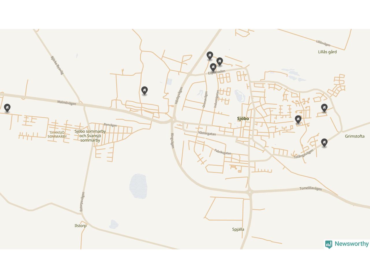 | 10 | Sjöbo Sövde 34:72 | Sövdeborgsvägen 30 | 4,7 miljoner | 1 788 m² | Visa |