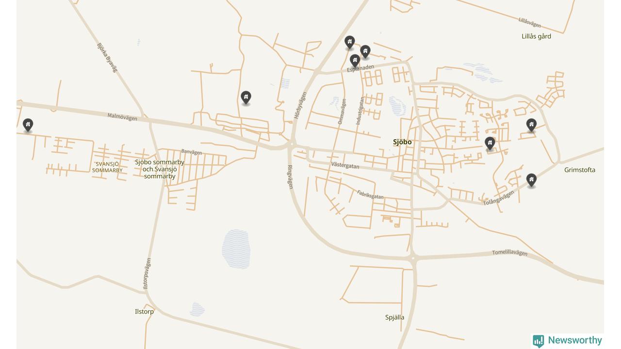 De 100 högst taxerade småhusfastigheterna i Sjöbo har ett snittvärde på fyra miljoner kronor, vilket är omkring två miljoner lägre än snittet för alla kommuners 100 högst taxerade småhus. Det visar Newsworthys genomgång av kommunernas högst taxerade småhusfastigheter, som sammanställts med hjälp av data från The intelligence company.