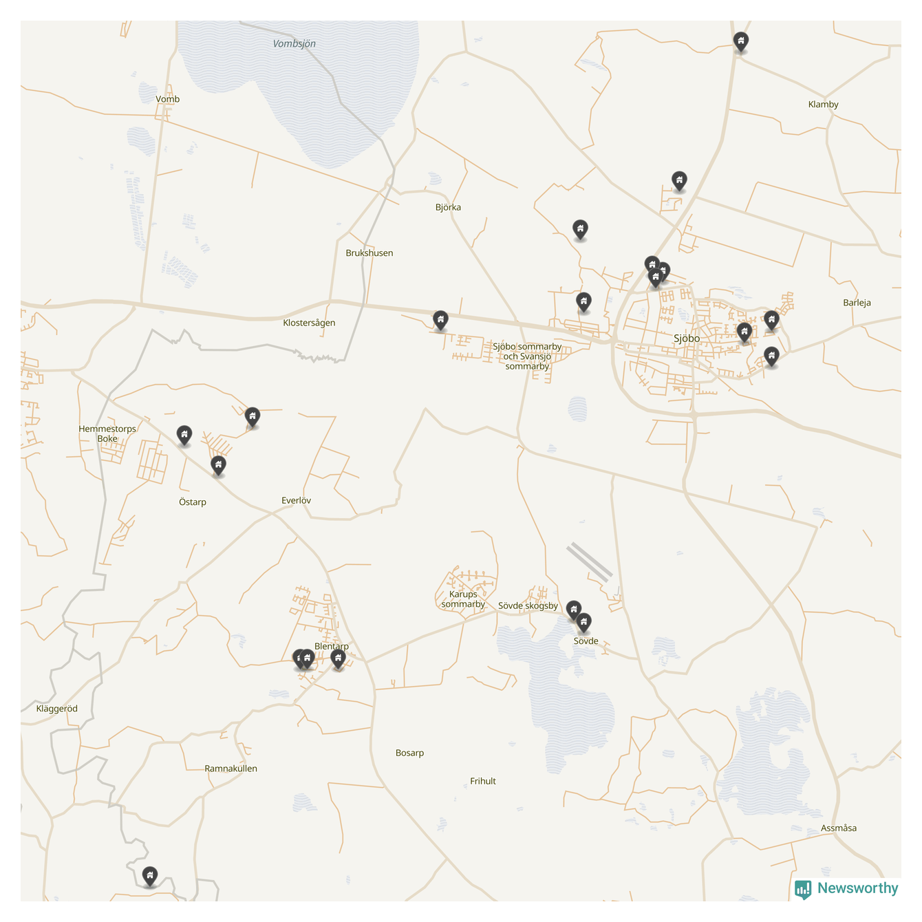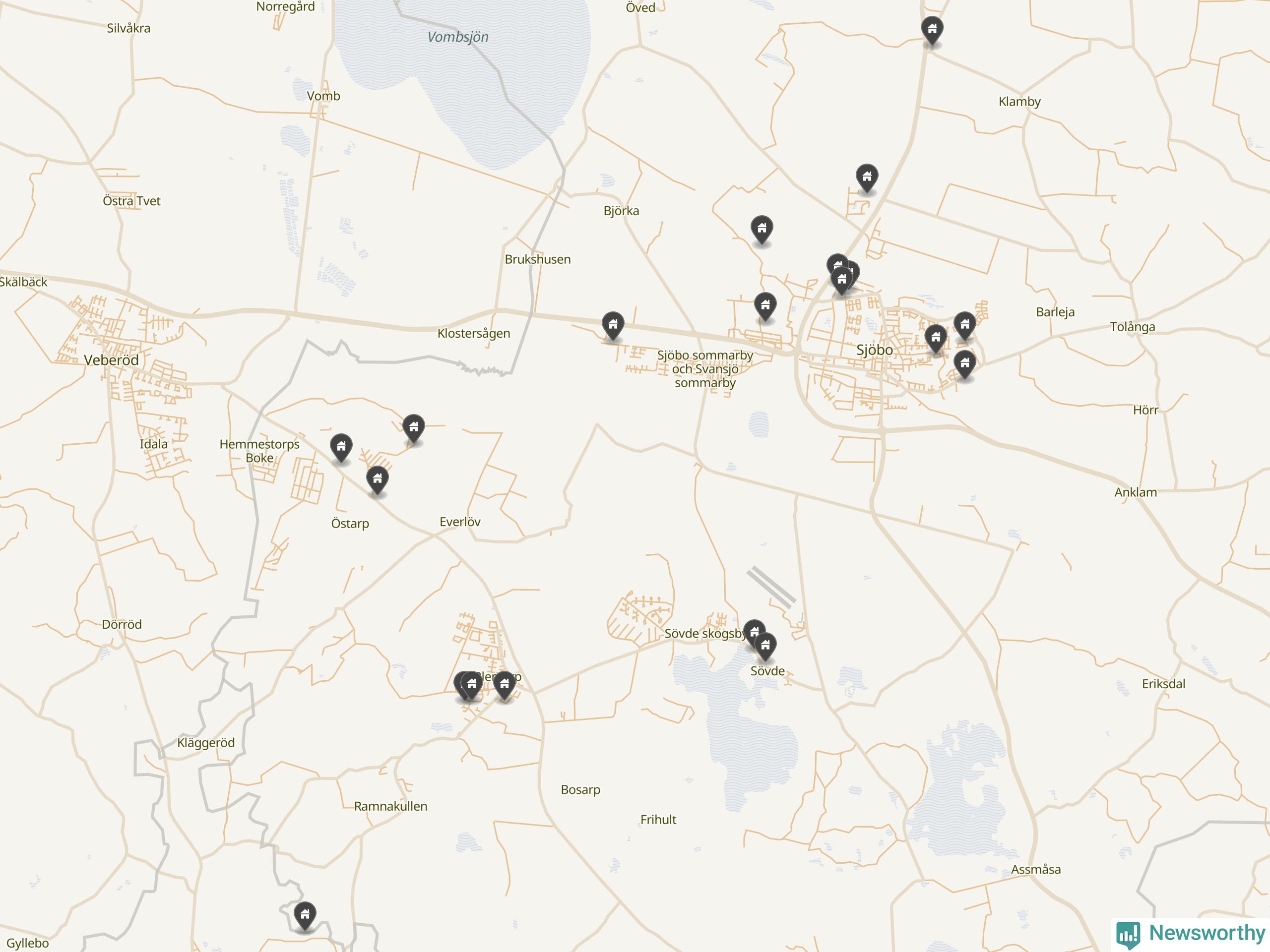 | 54 | Sjöbo Sövde 1:2 | Sövdeborgsvägen 5 | 3,8 miljoner | 2 340 m² | Visa |